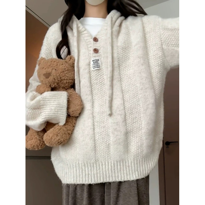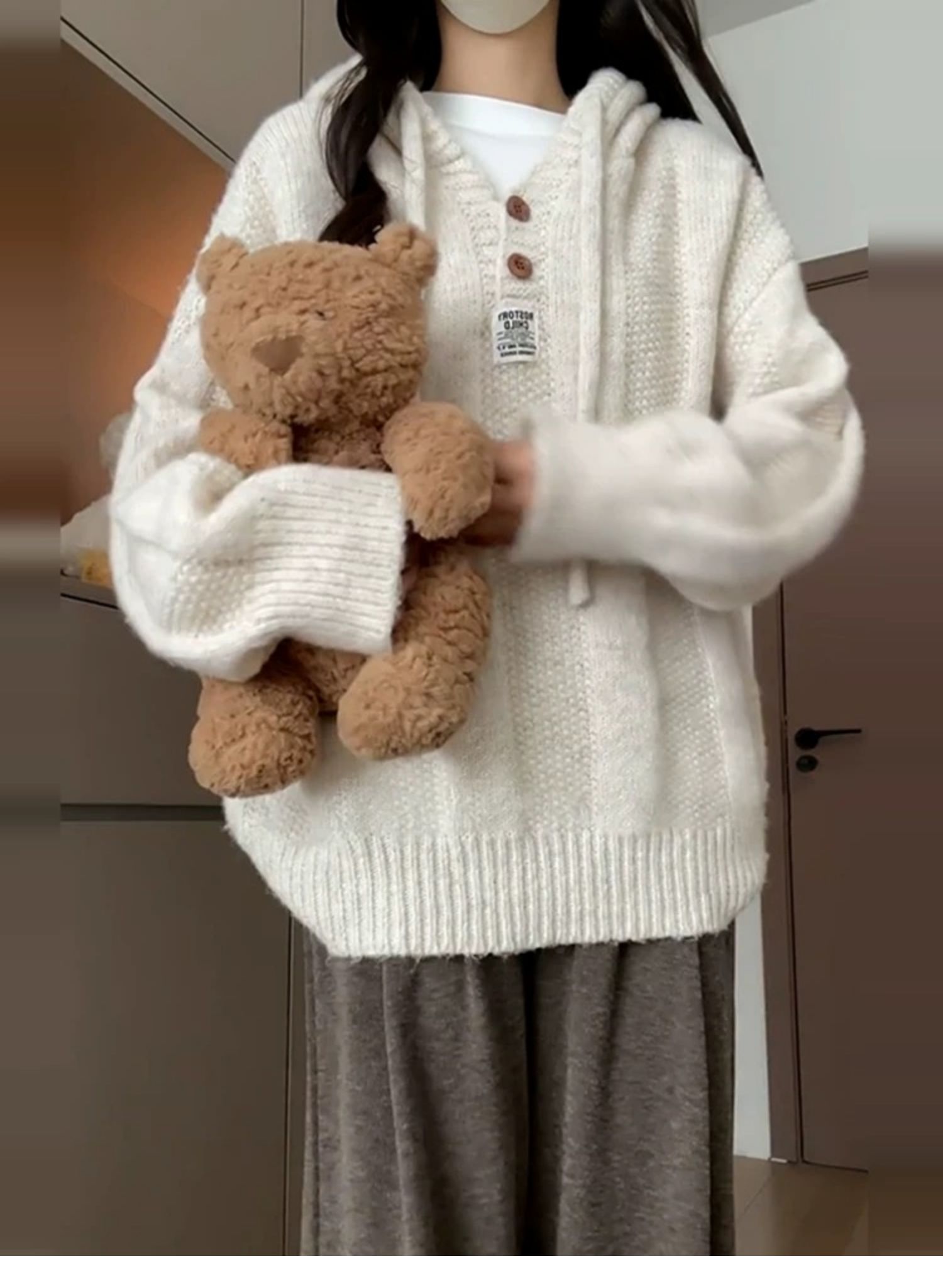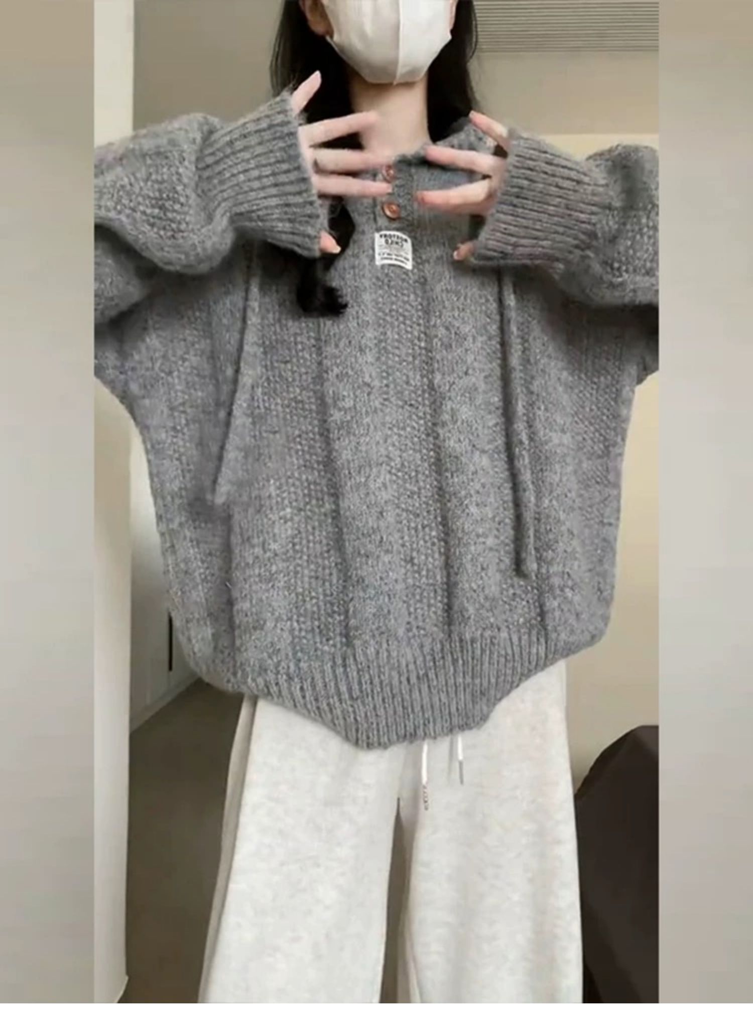 軟糯連帽套頭針織毛衣女秋冬春秋季外穿寬松慵懶加厚上衣衛衣外套