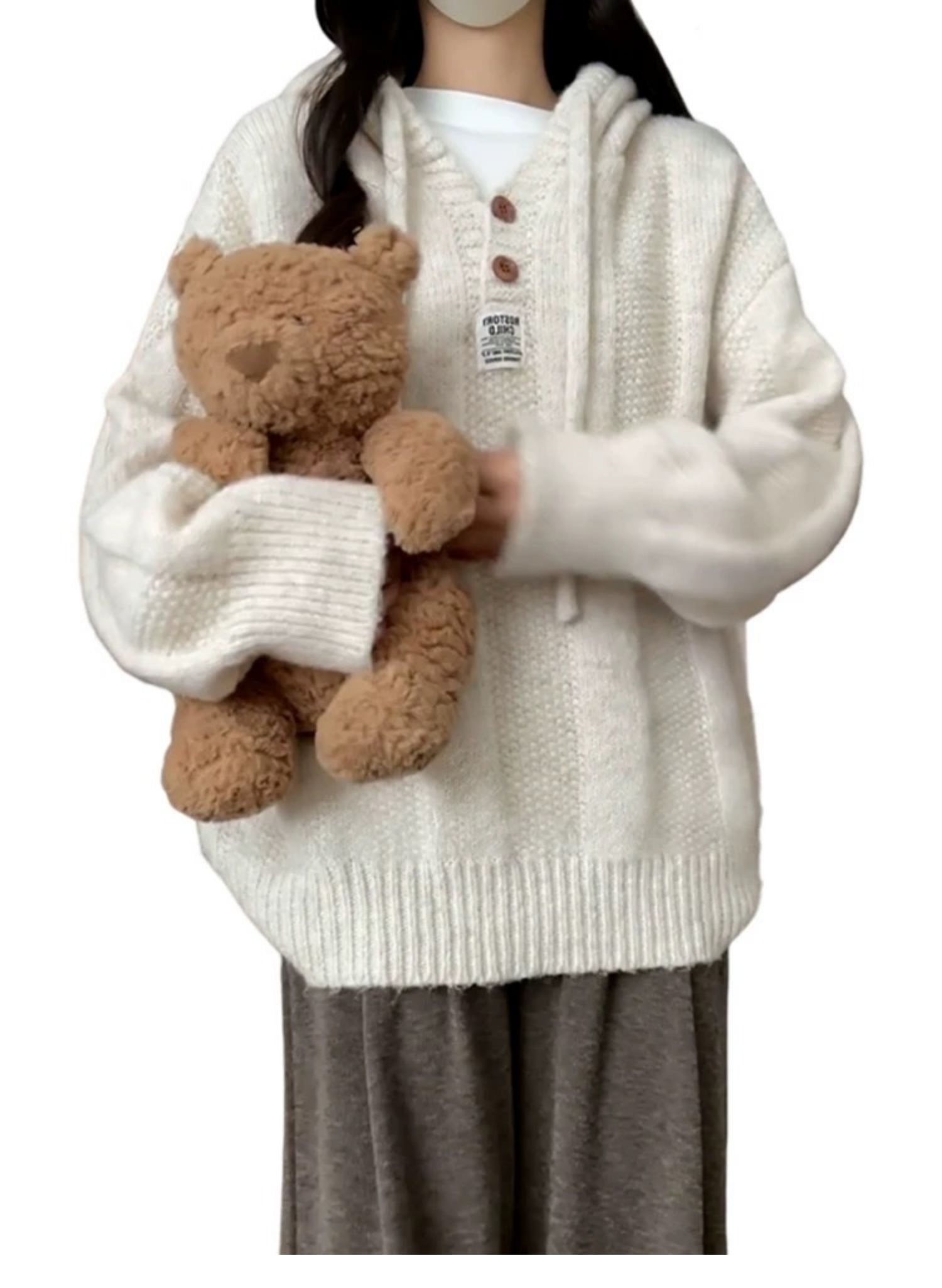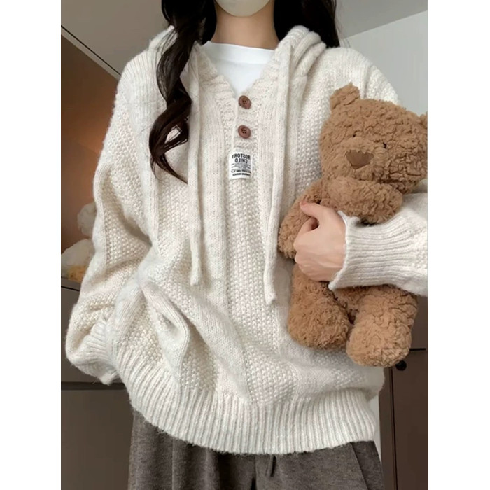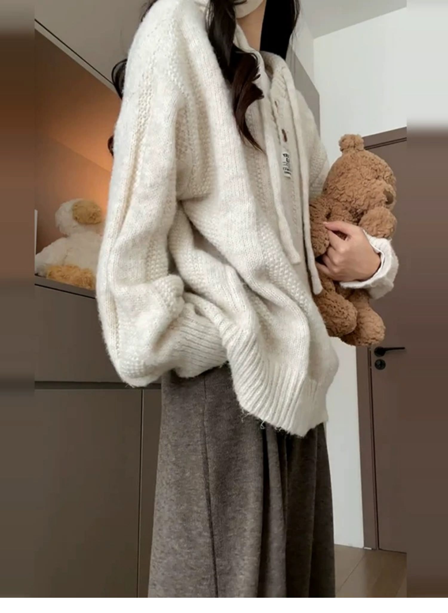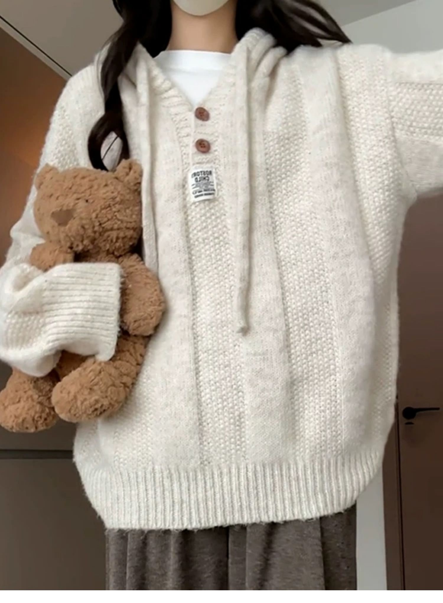 軟糯連帽套頭針織毛衣女秋冬春秋季外穿寬松慵懶加厚上衣衛衣外套