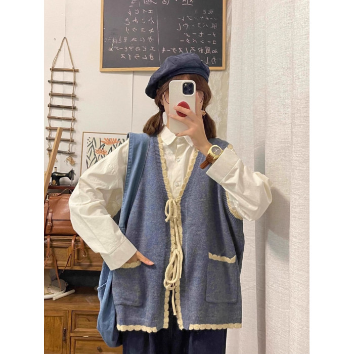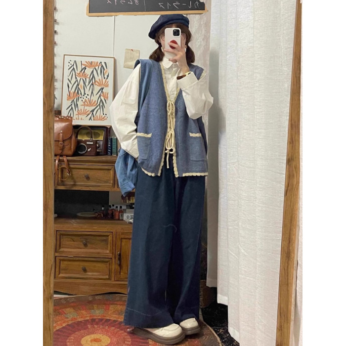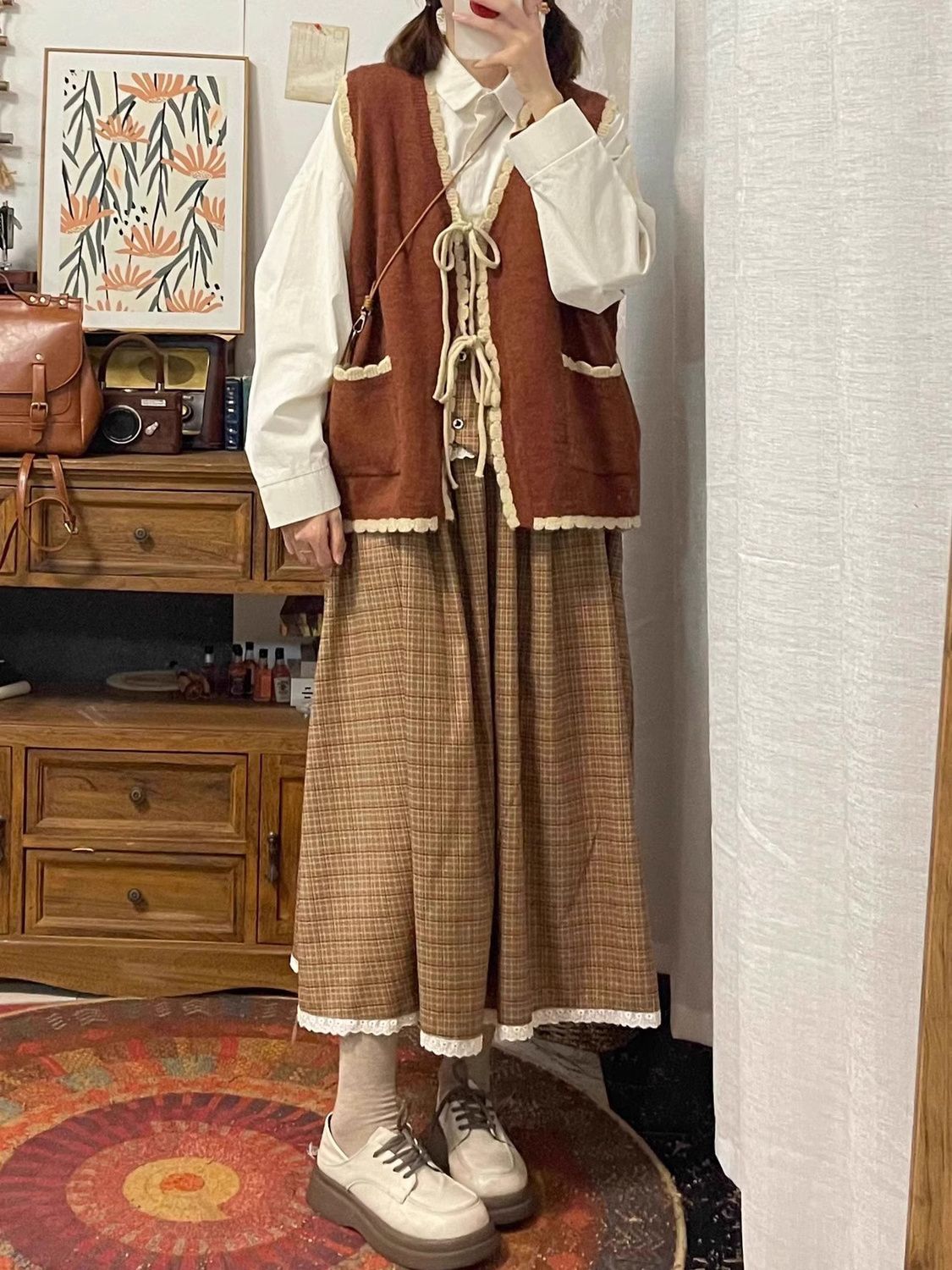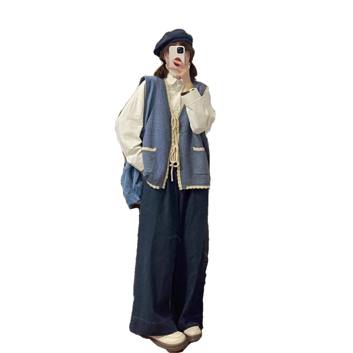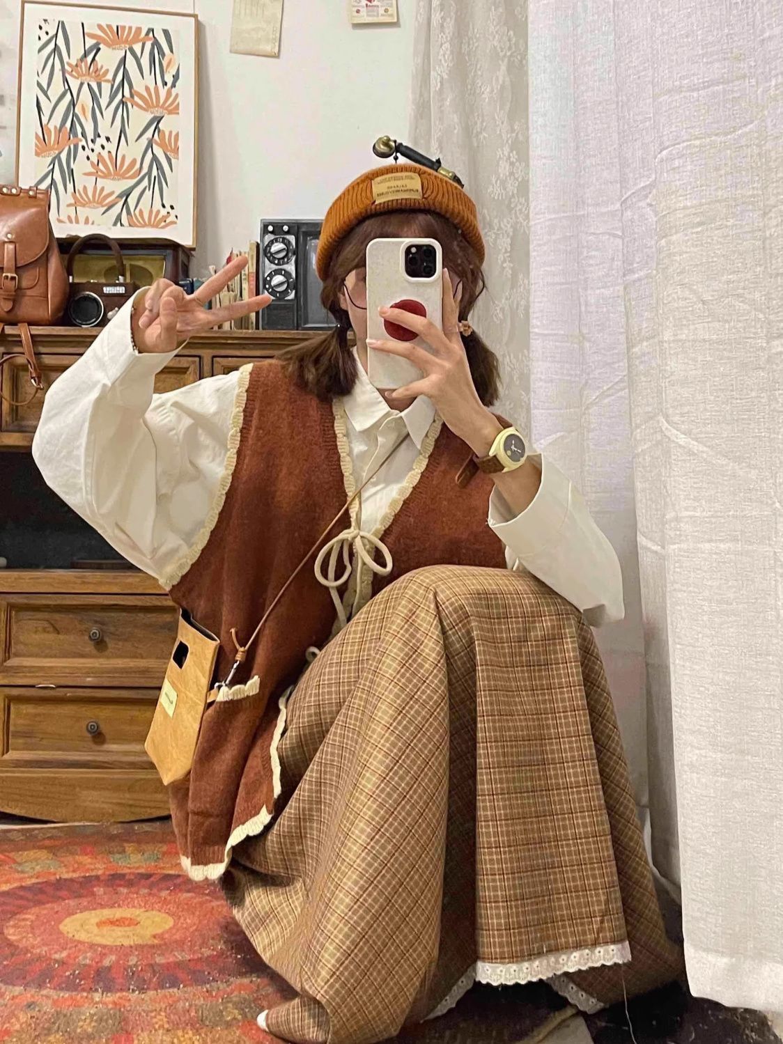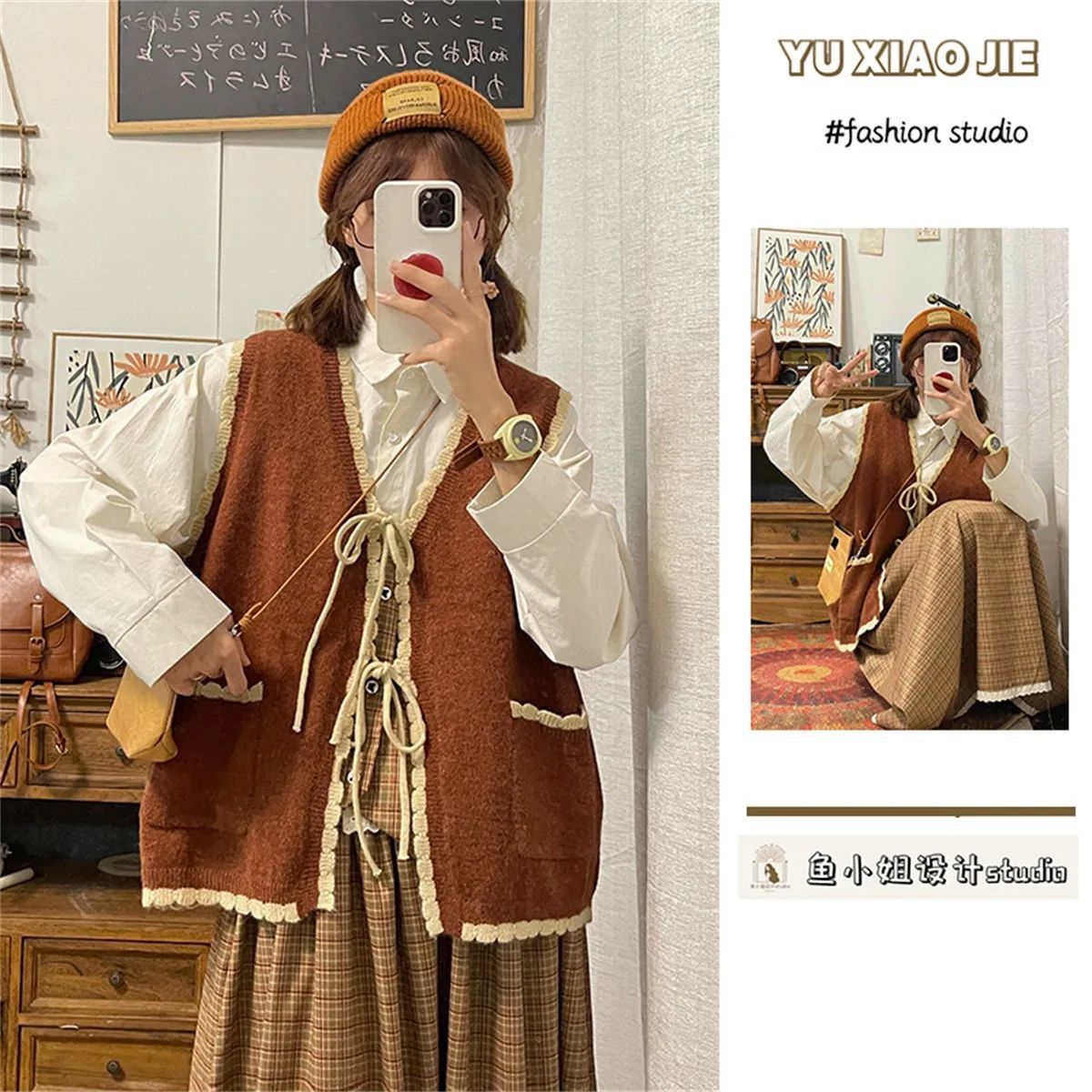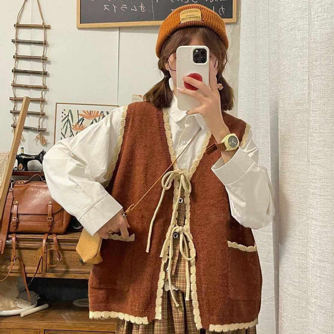 胖MM200斤特大碼女學院風針織毛衣開衫馬甲背心長袖襯衫兩件套秋