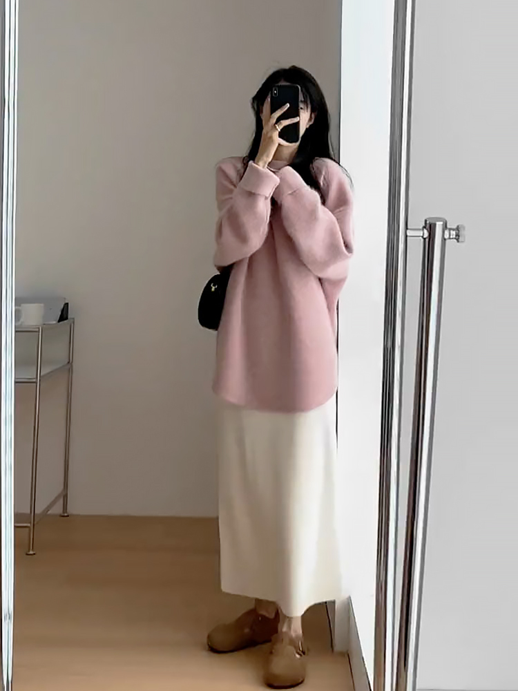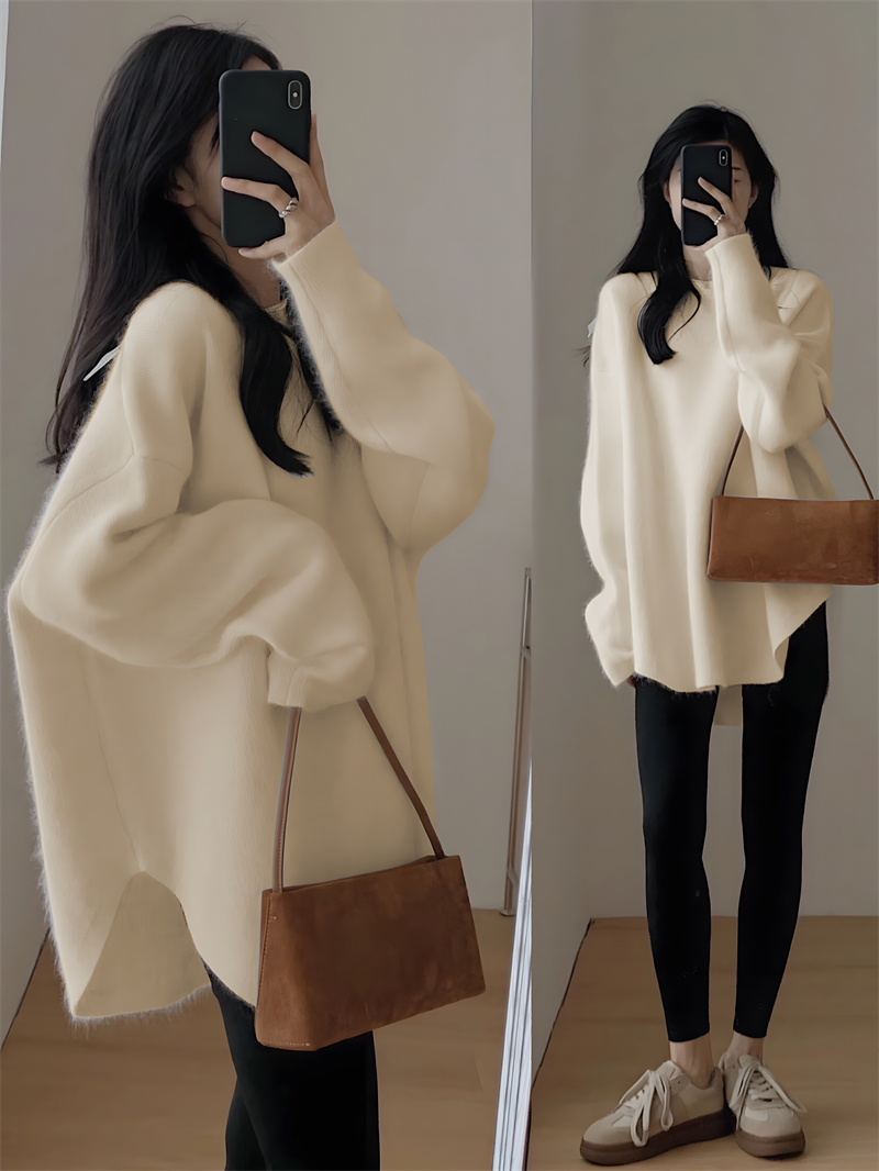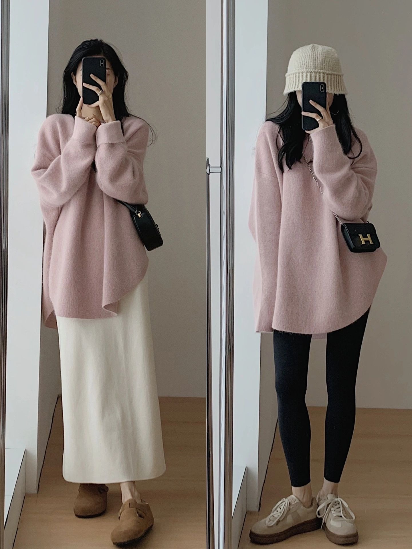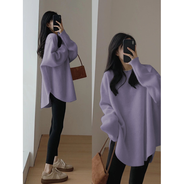 紫色中長款寬松針織衫茶裡茶氣別致上衣外套多巴胺軟糯毛衣女秋季