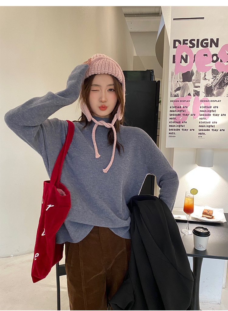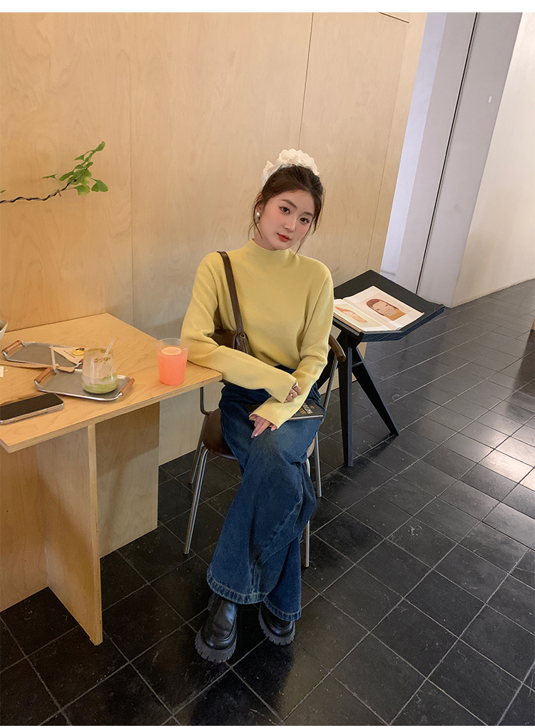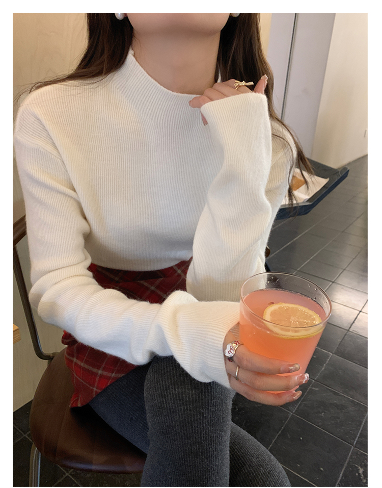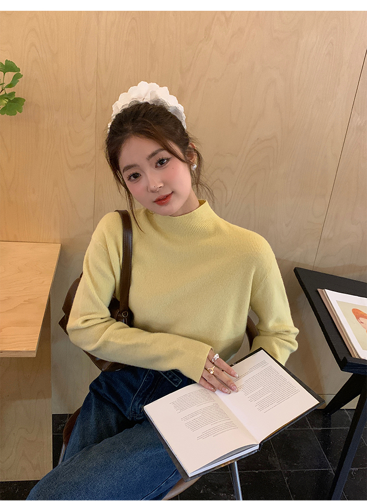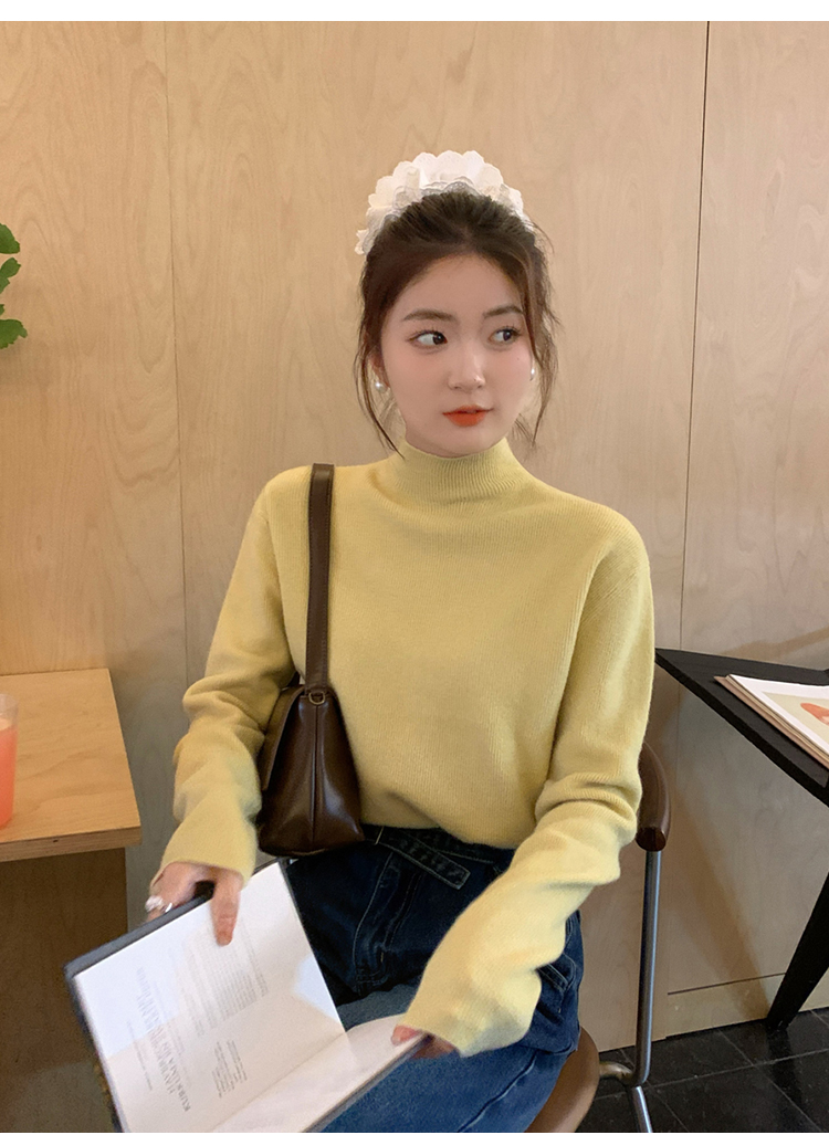 薄荷綠色半高領針織打底衫女裝內搭2025秋冬新款軟糯毛衣修身上衣