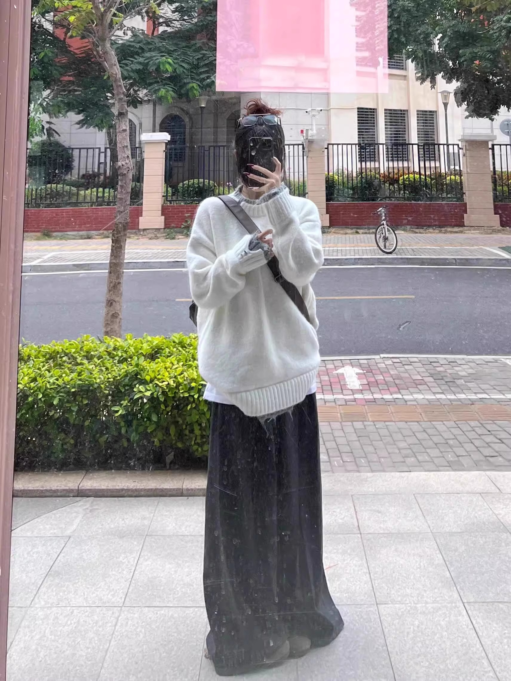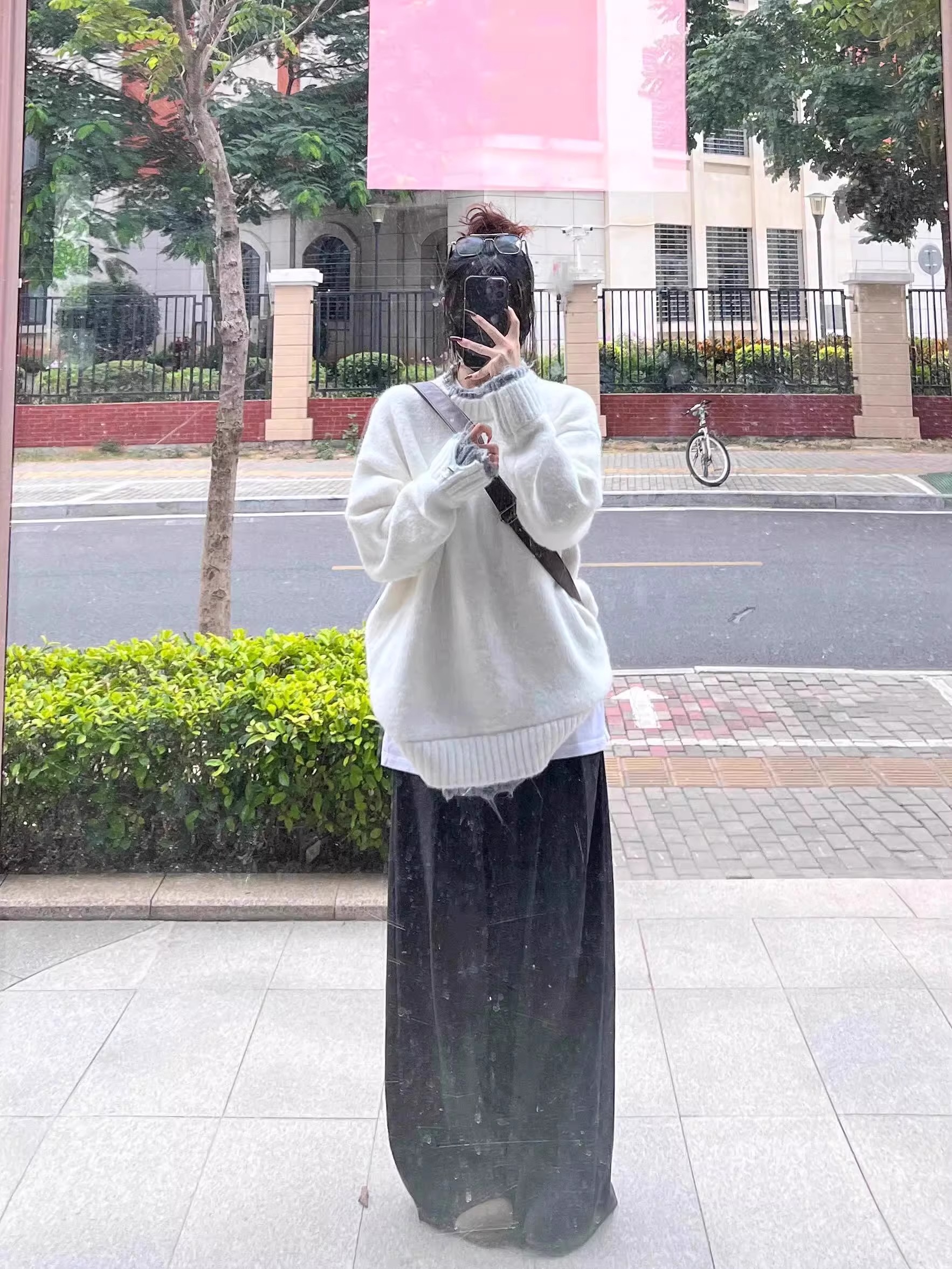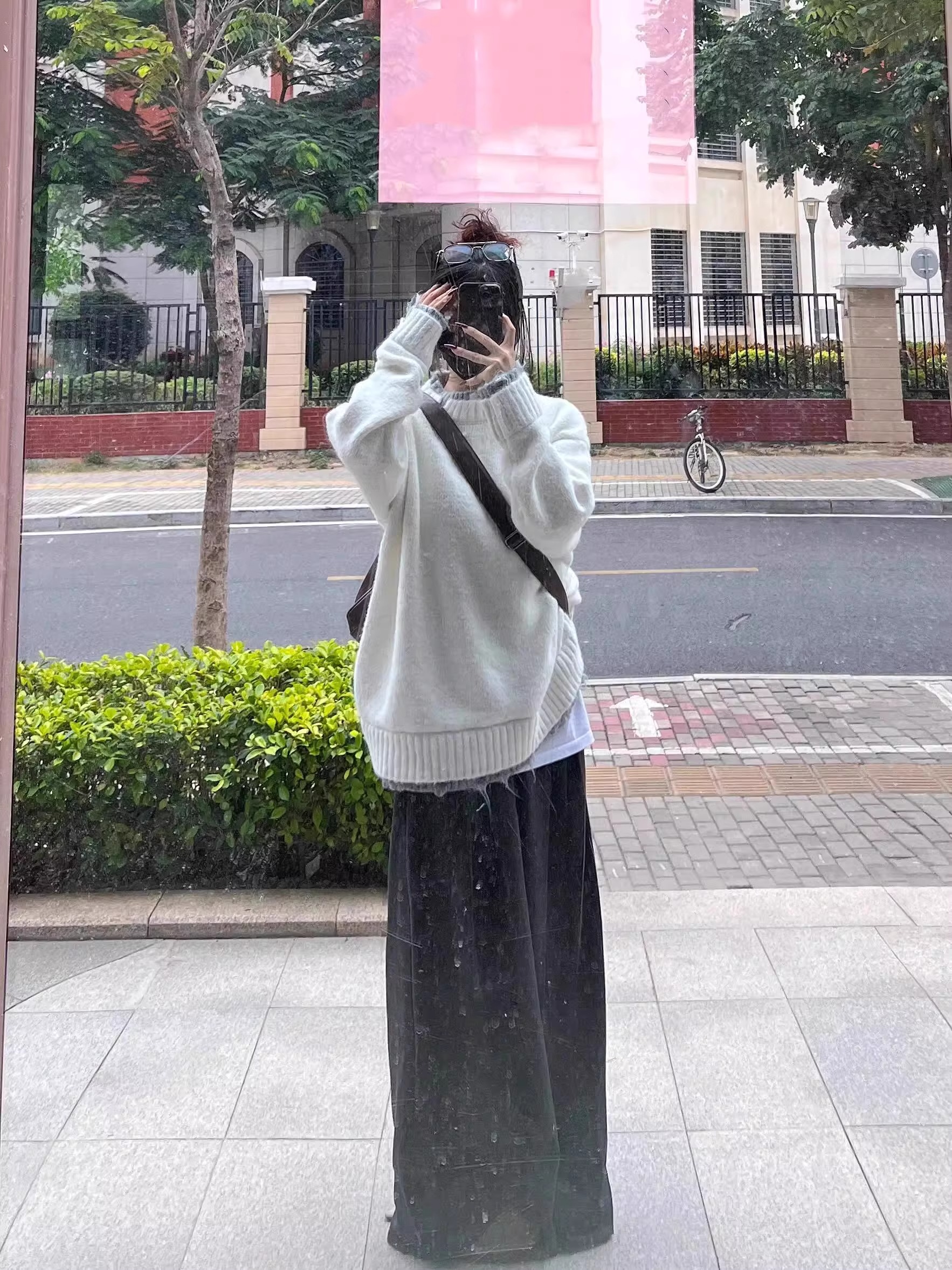 慵懶風白色針織毛衣女2025早秋新款寬松軟糯高級感假兩件秋冬上衣