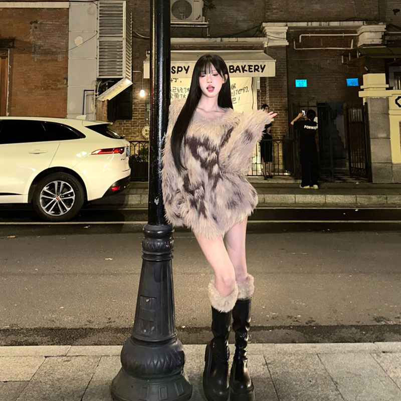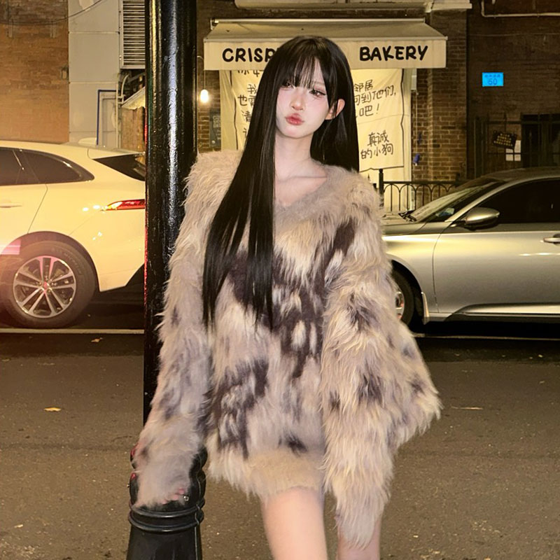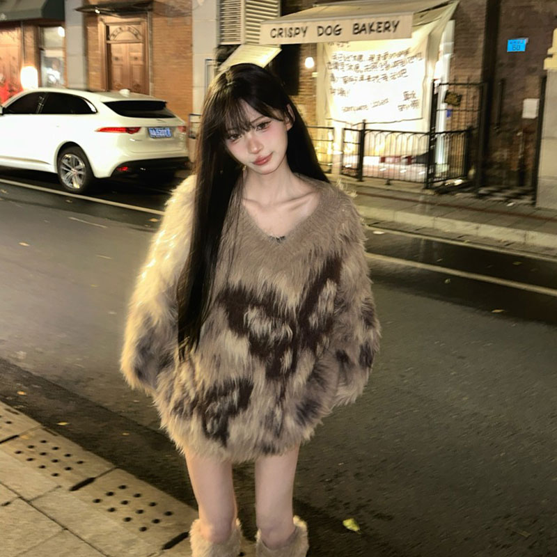 深秋初冬穿搭套頭水貂絨毛衣女秋冬季加厚慵懶風中長款針織衫上衣
