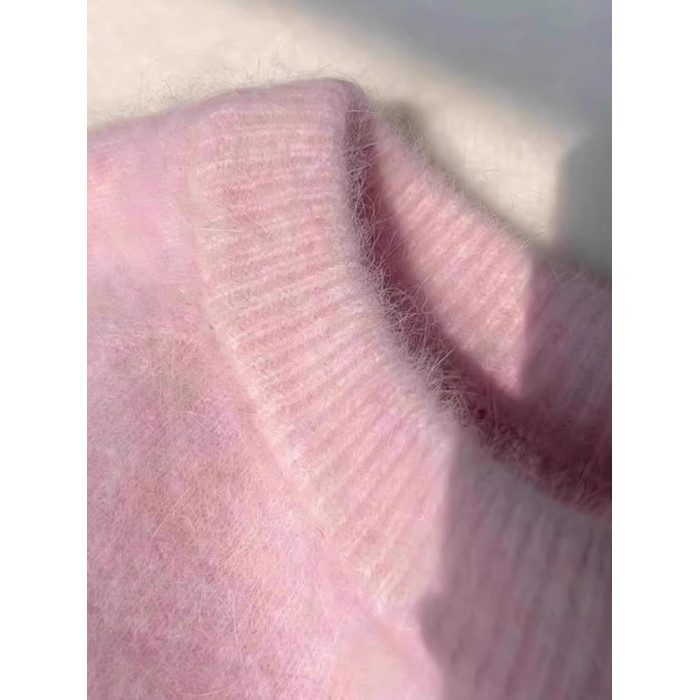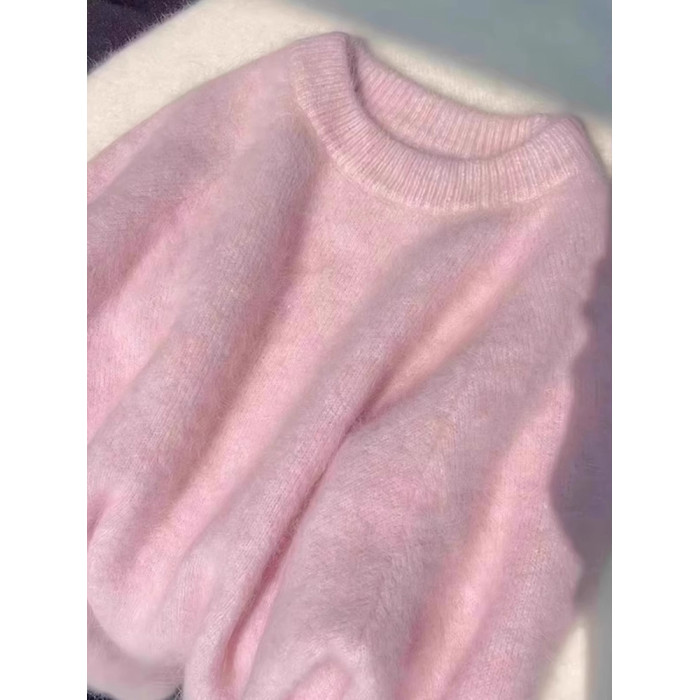 粉色奶fufu毛衣女秋冬季2025新款慵懶風高級感加厚內搭針織衫上衣