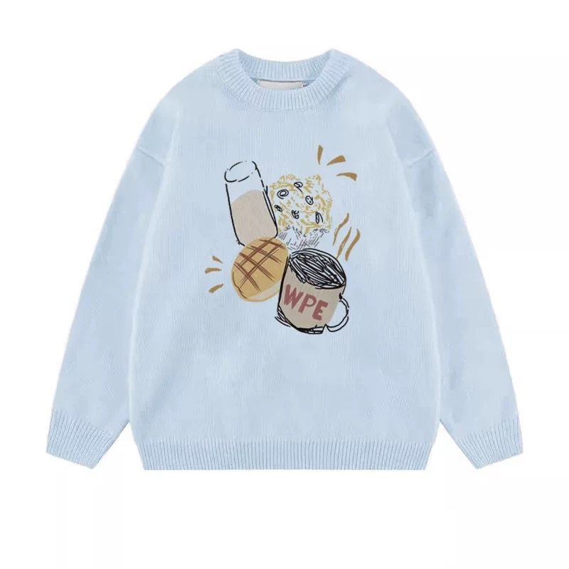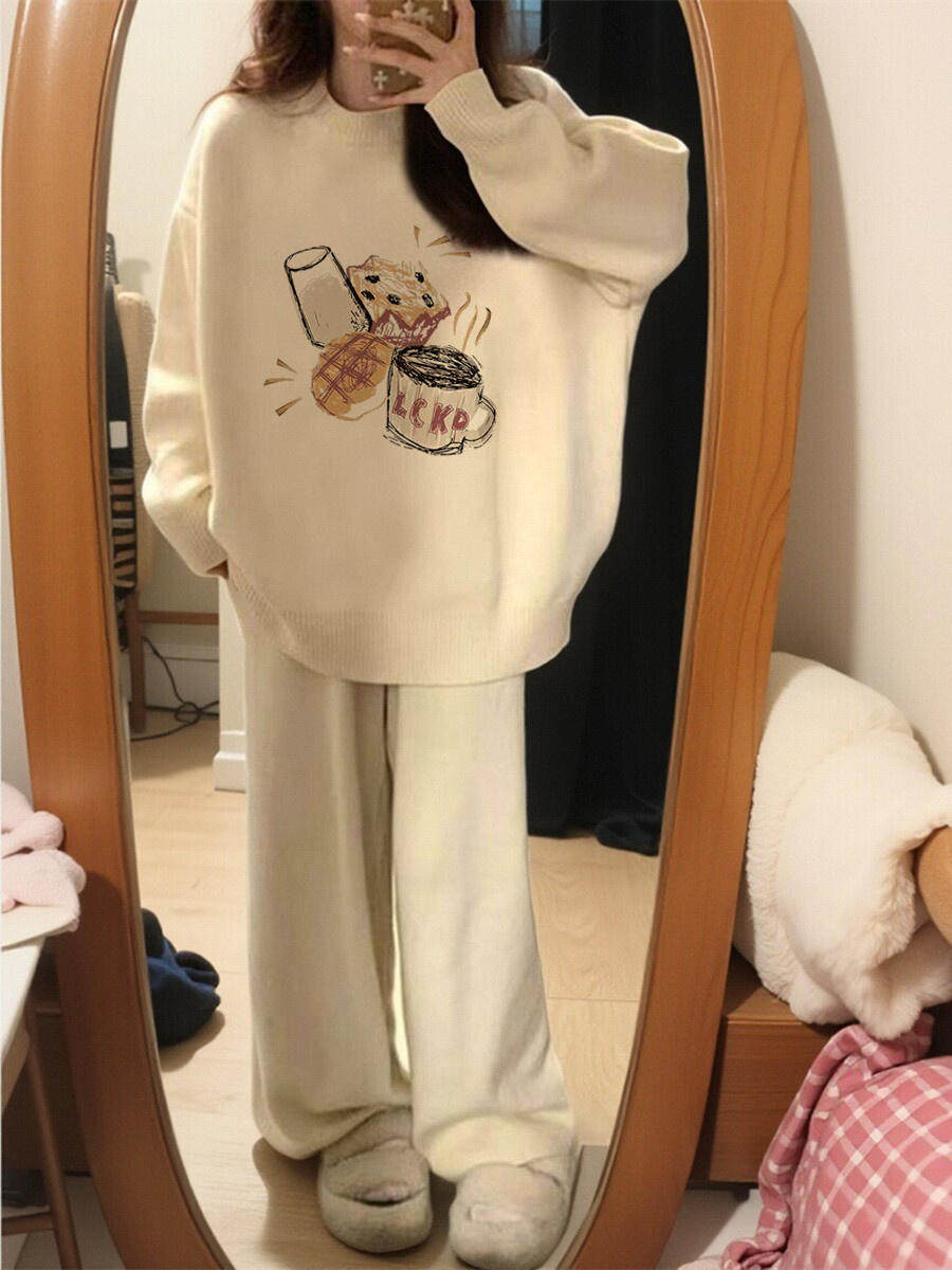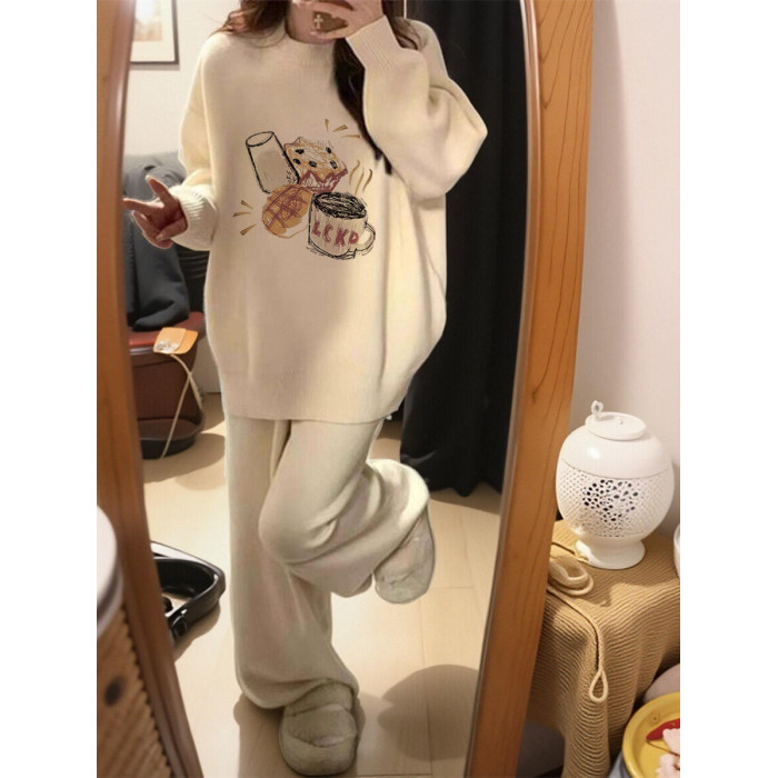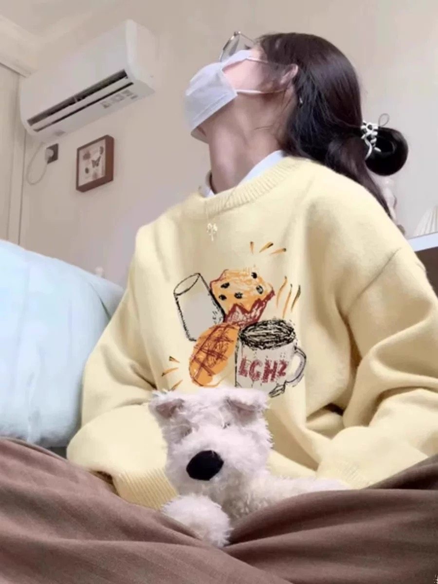白色印花奶fufu秋冬毛衣女小個子慵懶風高級感上衣冬季加厚針織衫