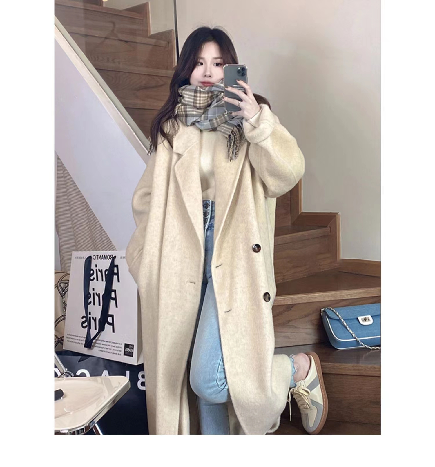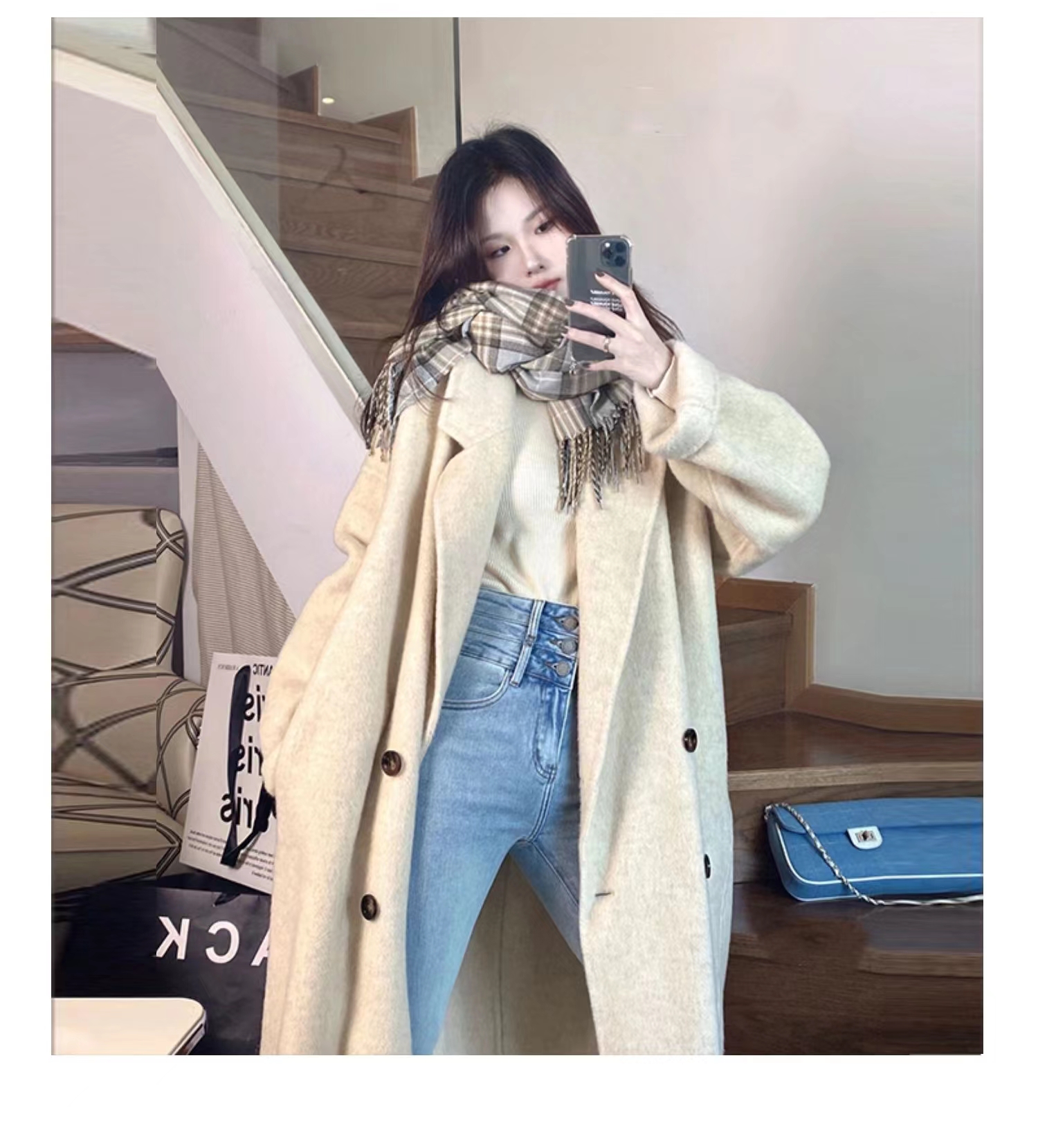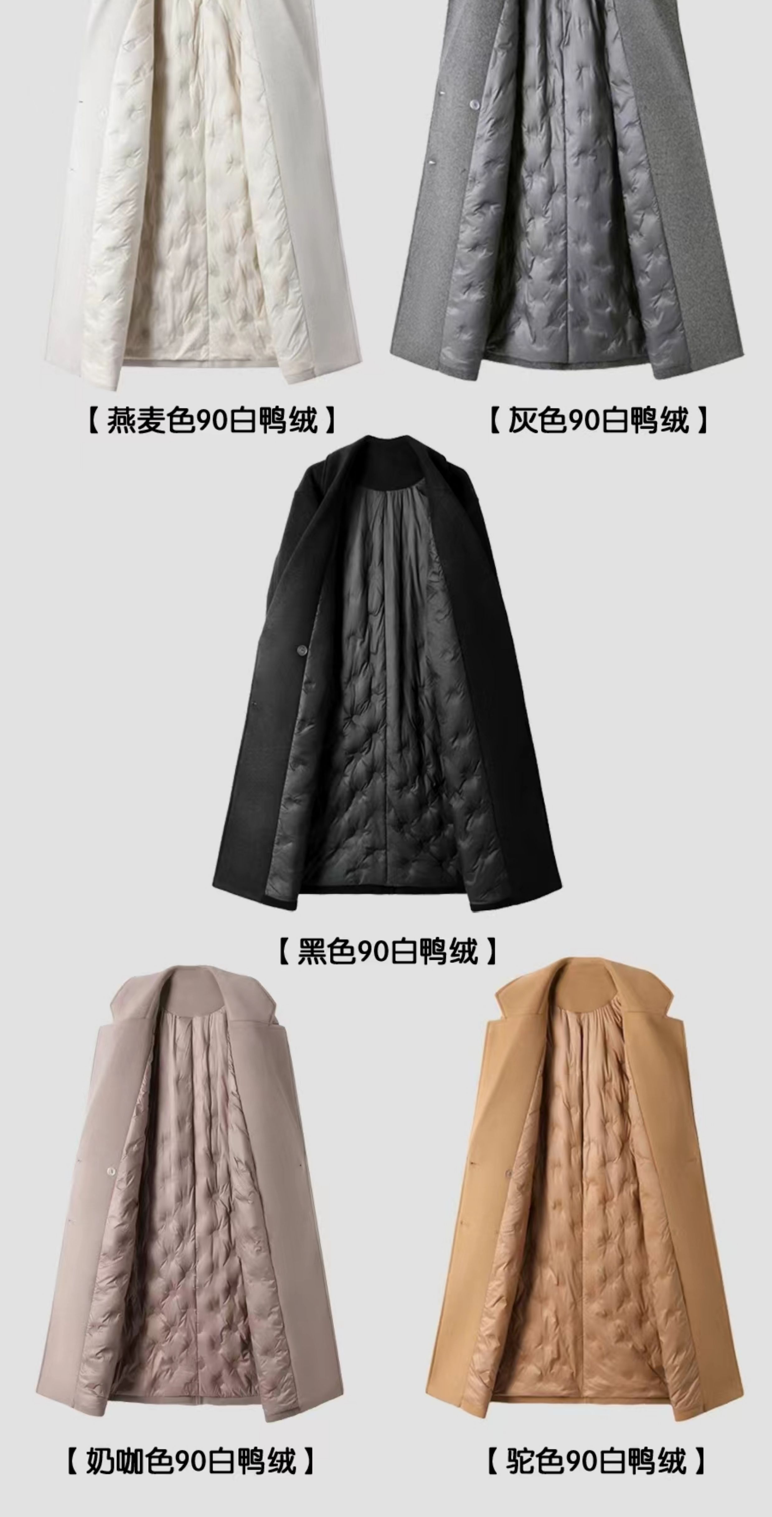 雙面羊絨大衣女中長款2025秋冬新款高級感小個子羽絨內膽毛呢外套