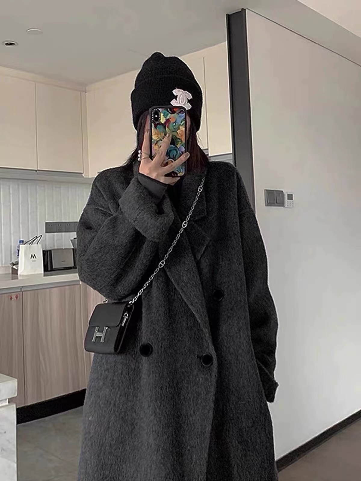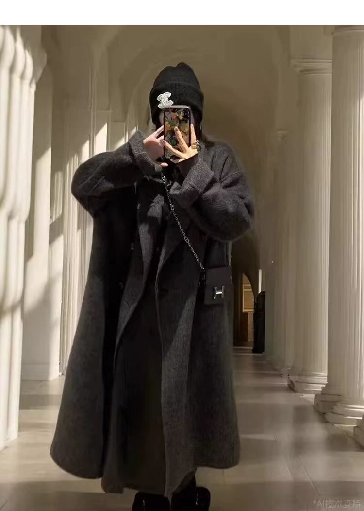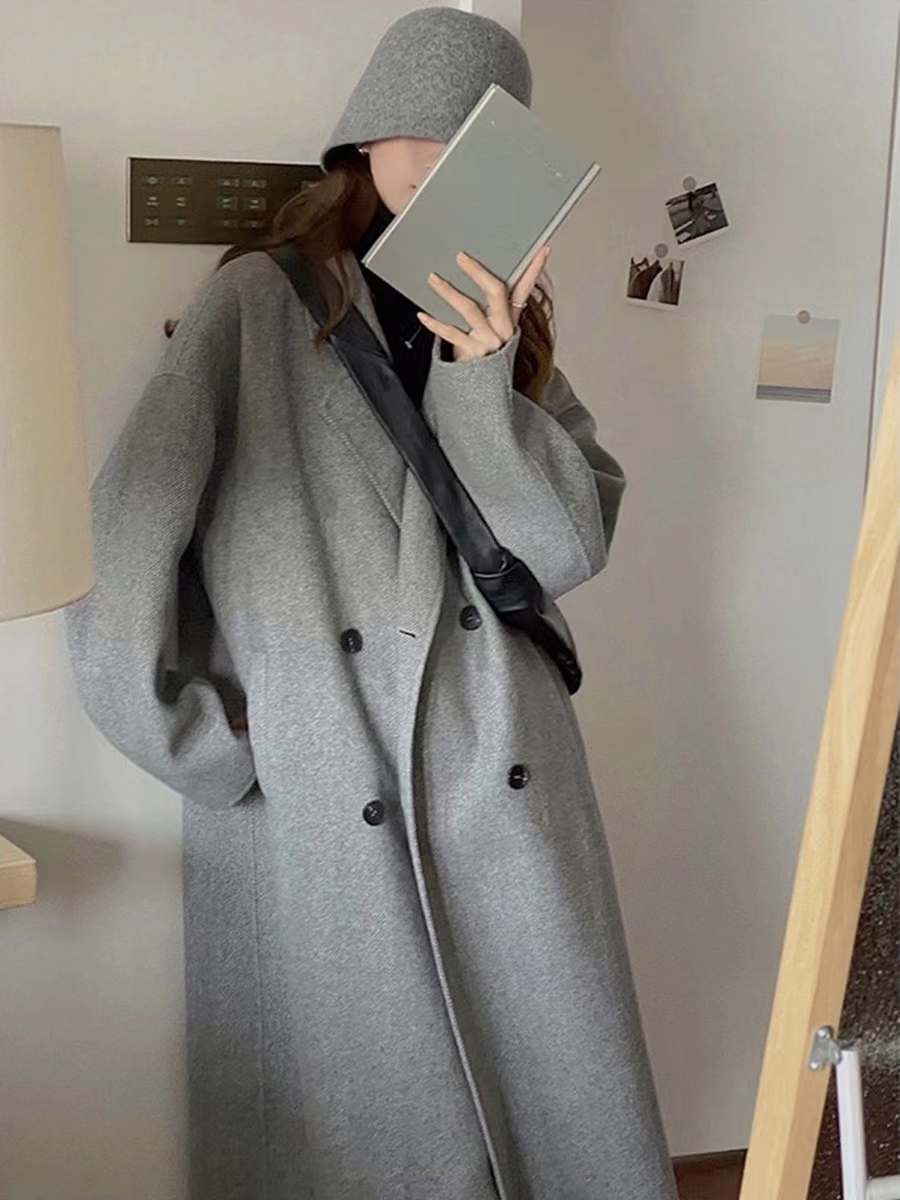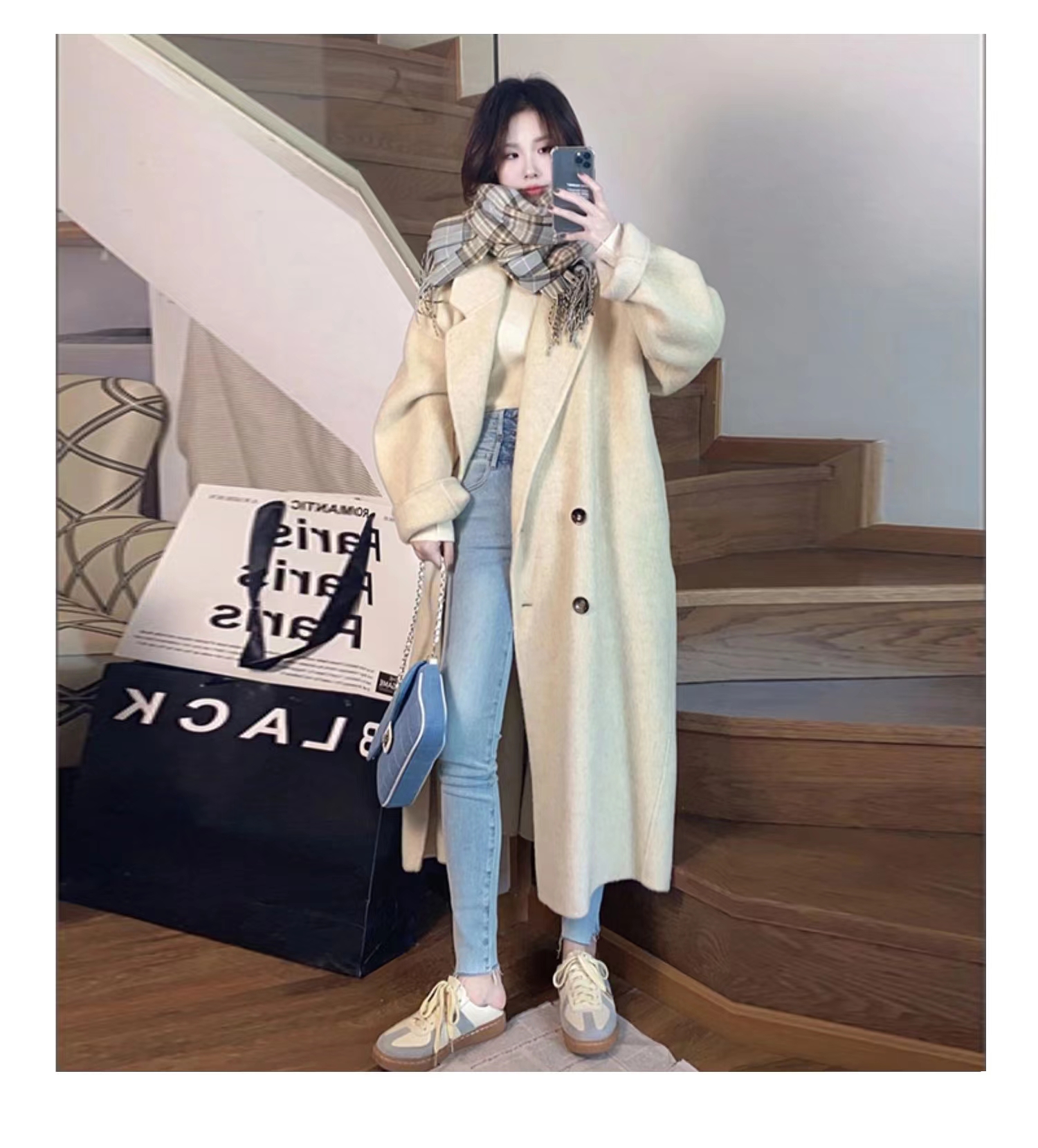 雙面羊絨大衣女中長款2025秋冬新款高級感小個子羽絨內膽毛呢外套