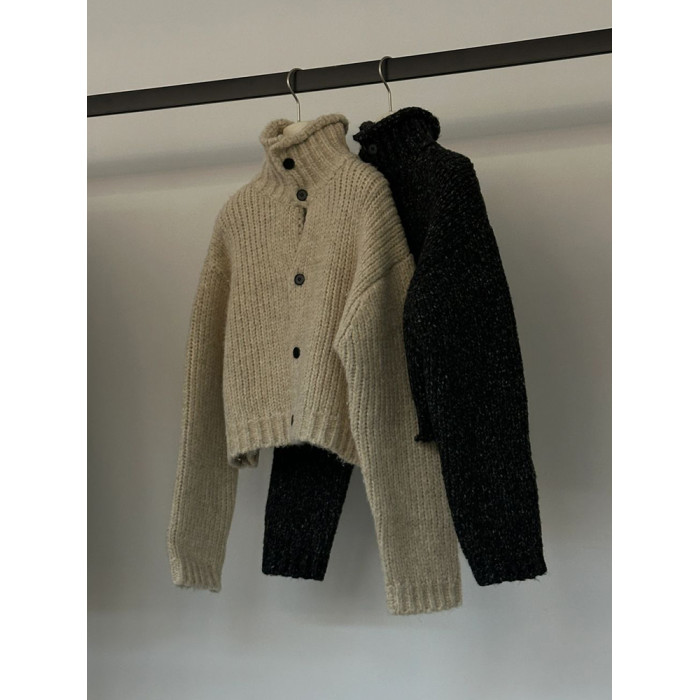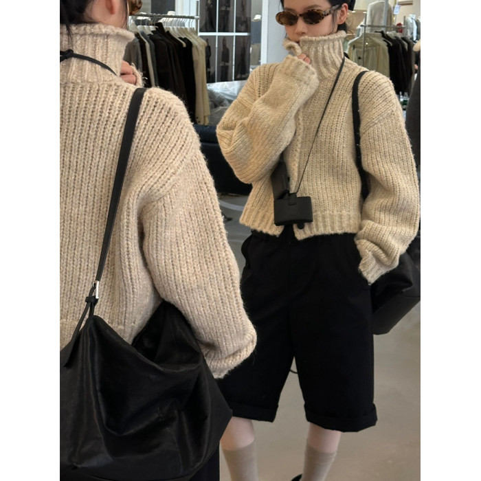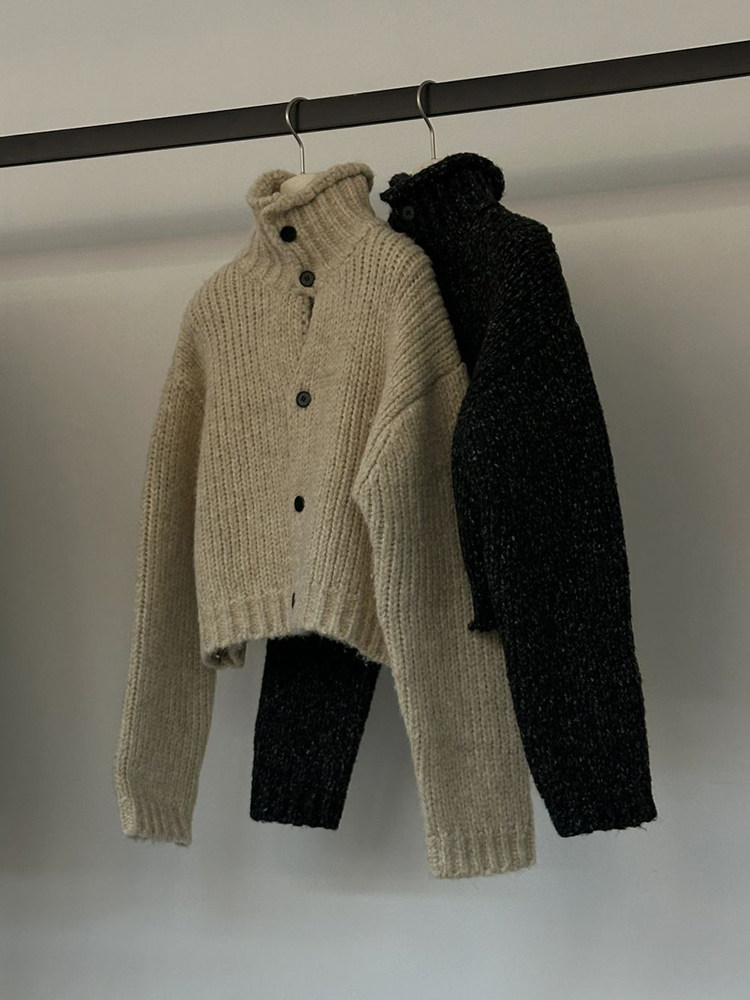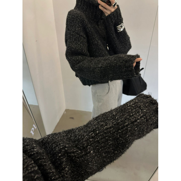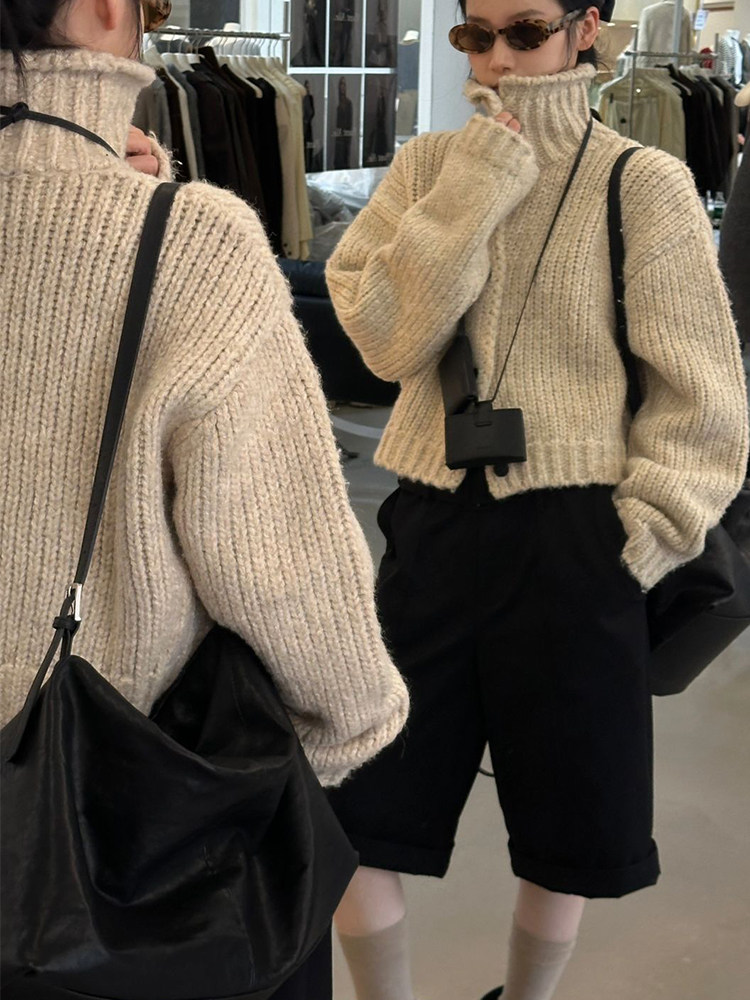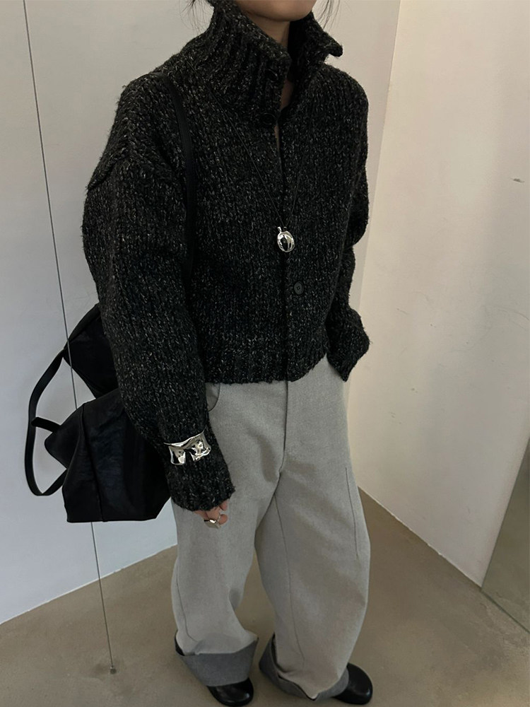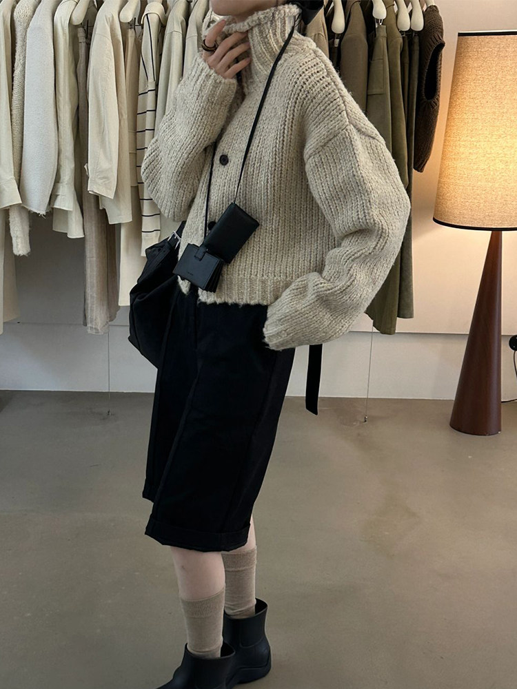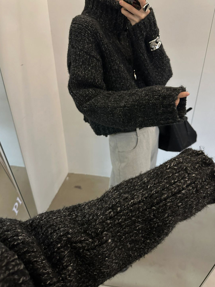 韓國東大門時尚新款加厚毛衣外套女設計感小衆高領粗線針織開衫潮