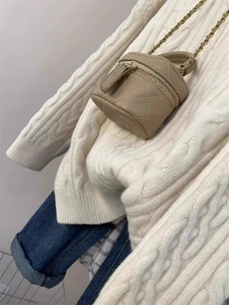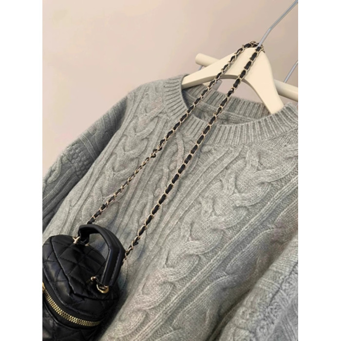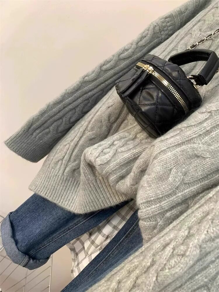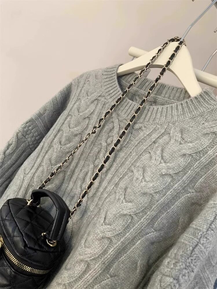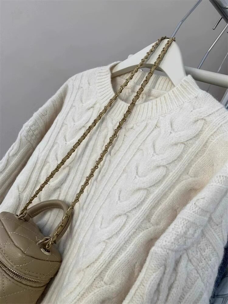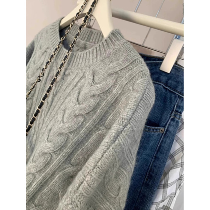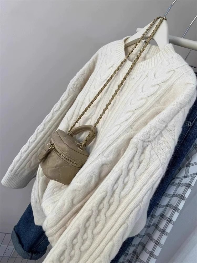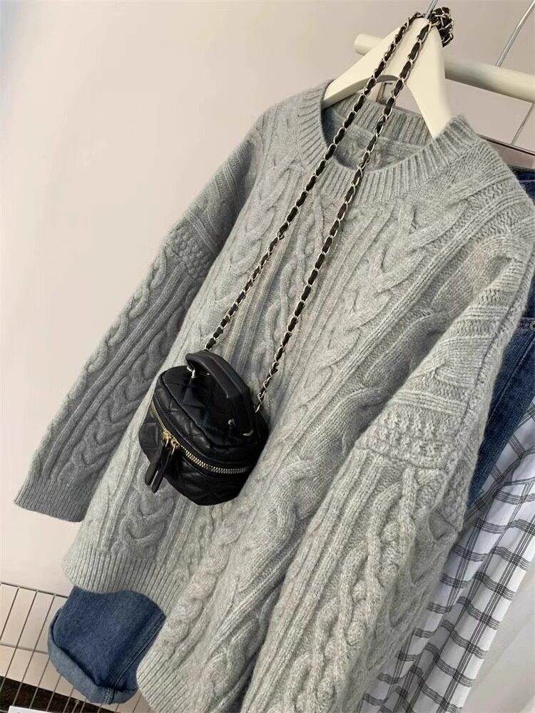 2024秋冬慵懶風加厚復古麻花馬海毛寬松外穿圓領打底套頭毛衣女潮