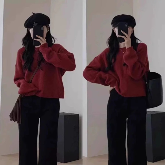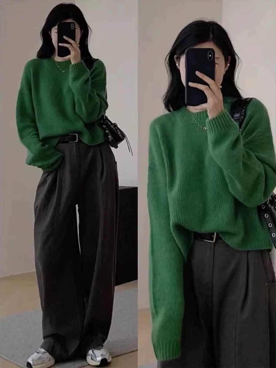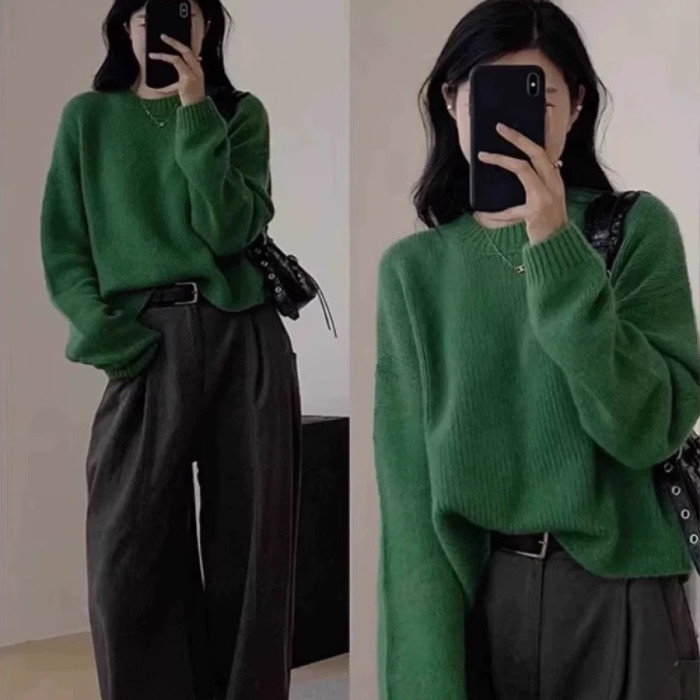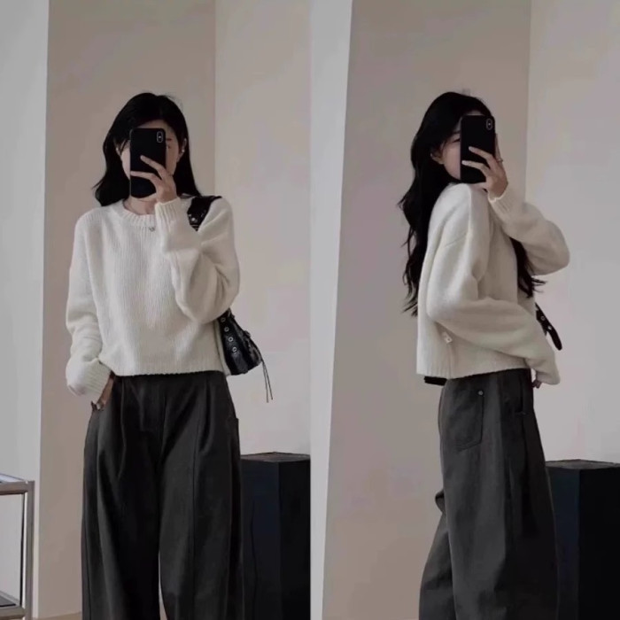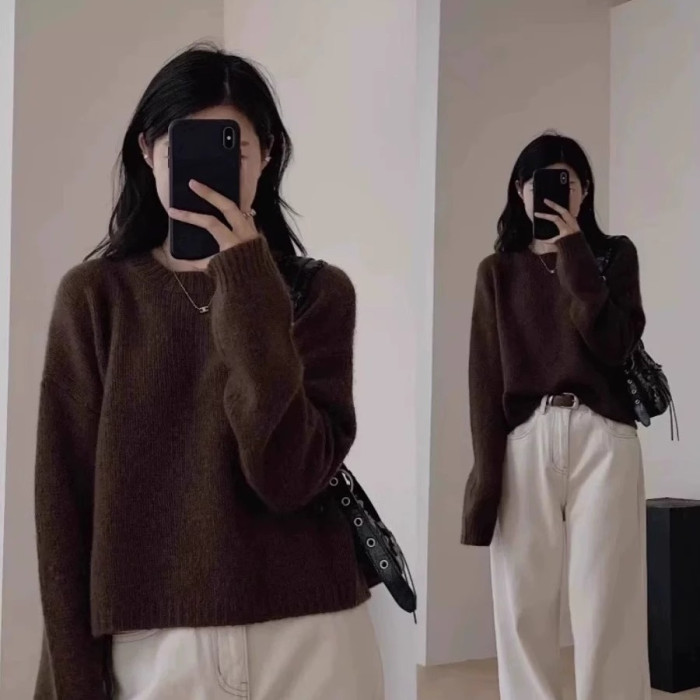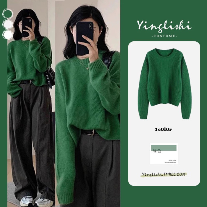 秋冬浣熊絨軟糯毛衣慵懶風寬松針織衫短款小個子套頭針織衫上衣