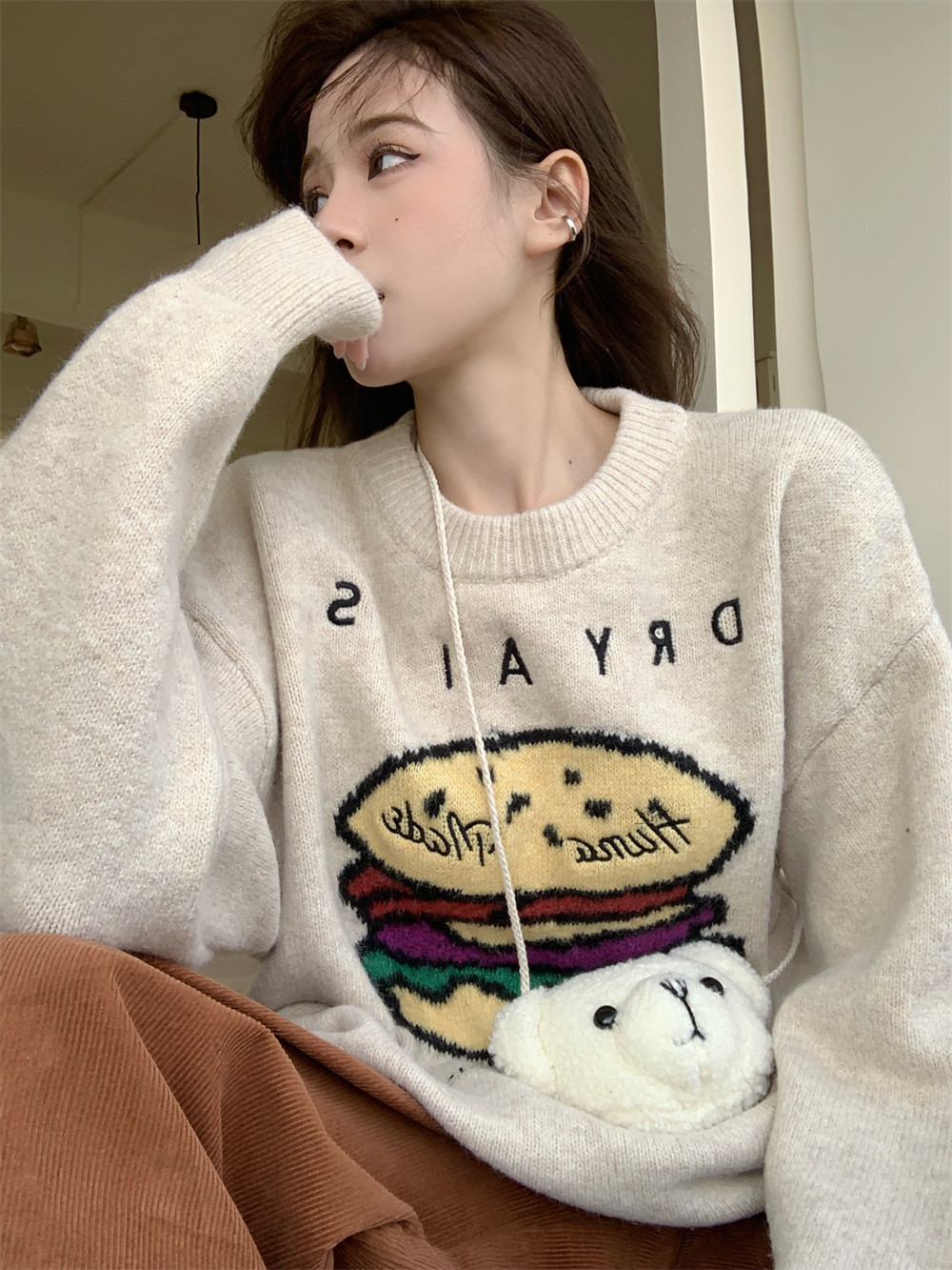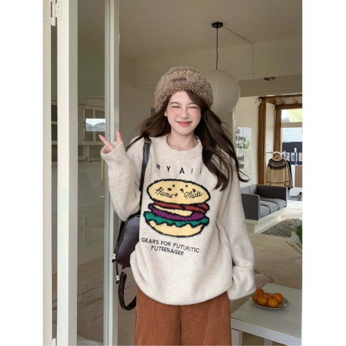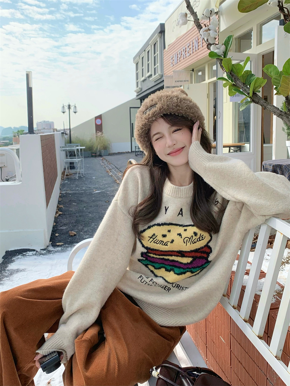 秋冬慵懶風套頭內搭毛衣女款2024新款加厚韓系軟糯寬松針織衫上衣