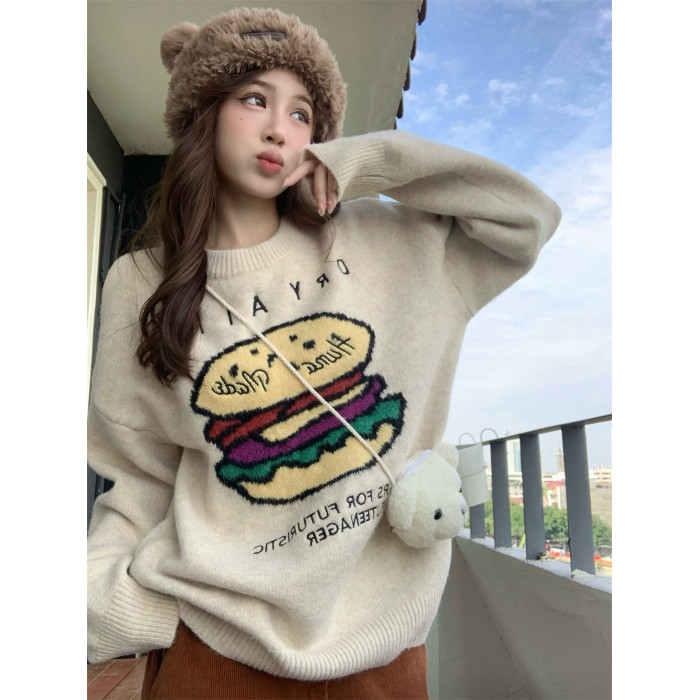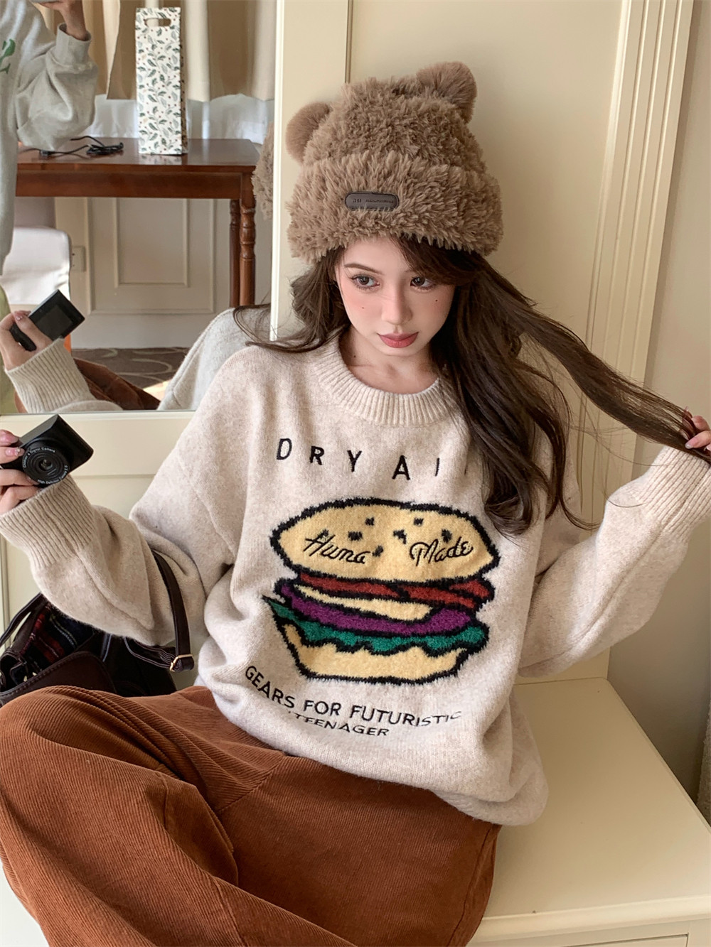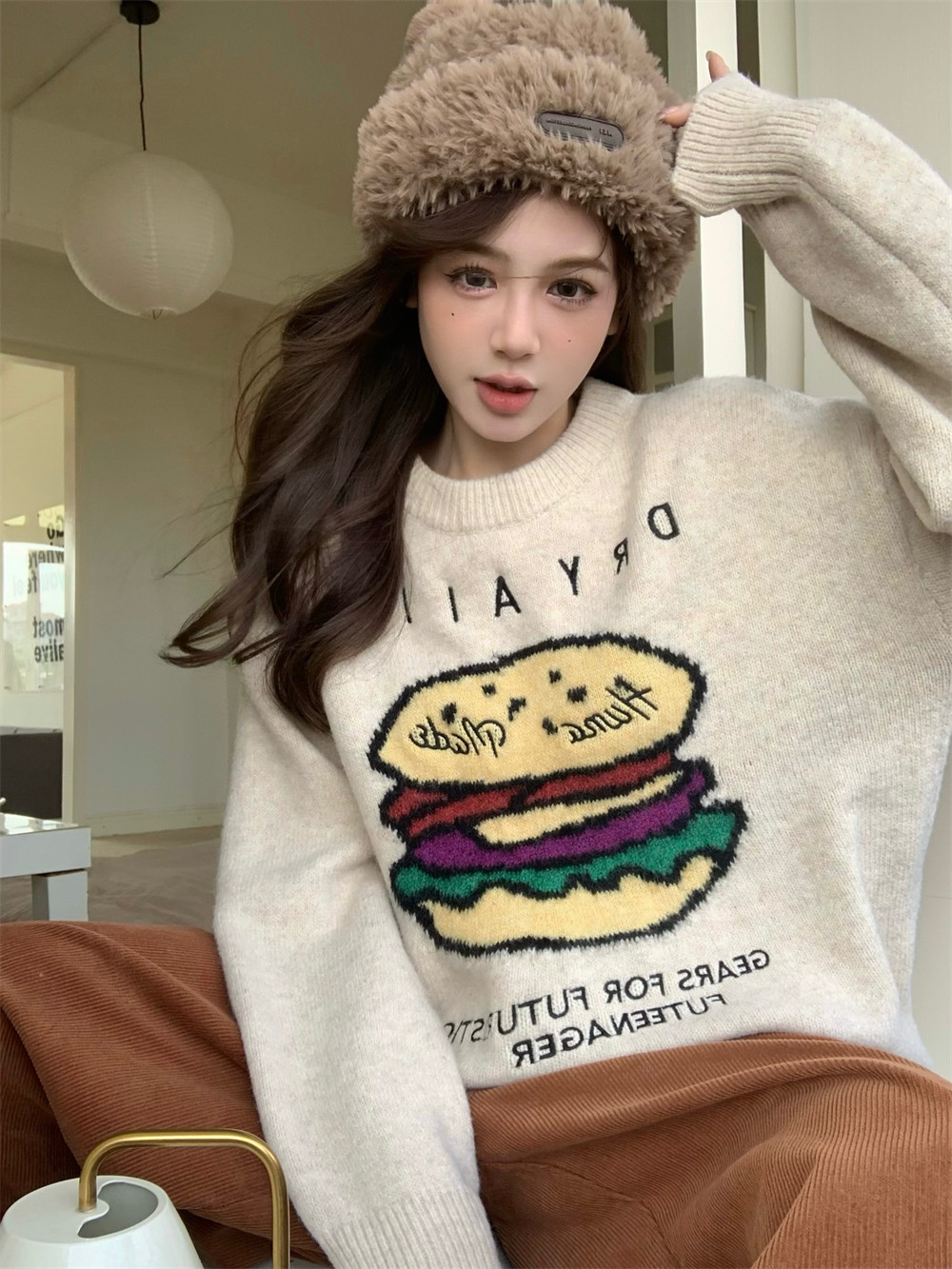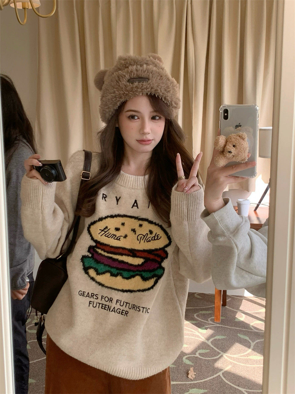 秋冬慵懶風套頭內搭毛衣女款2024新款加厚韓系軟糯寬松針織衫上衣