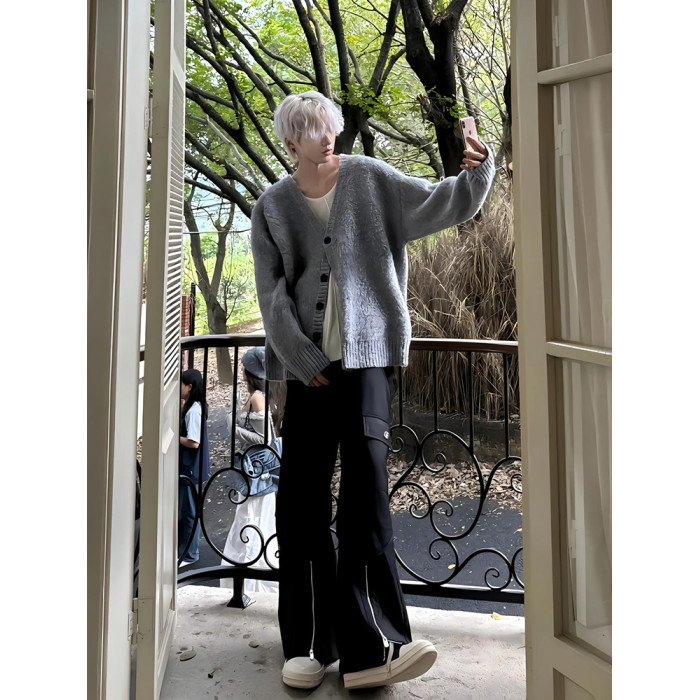 cleanfit開衫毛衣男款寬松慵懶高級感痞帥針織外套韓系氛圍感穿搭