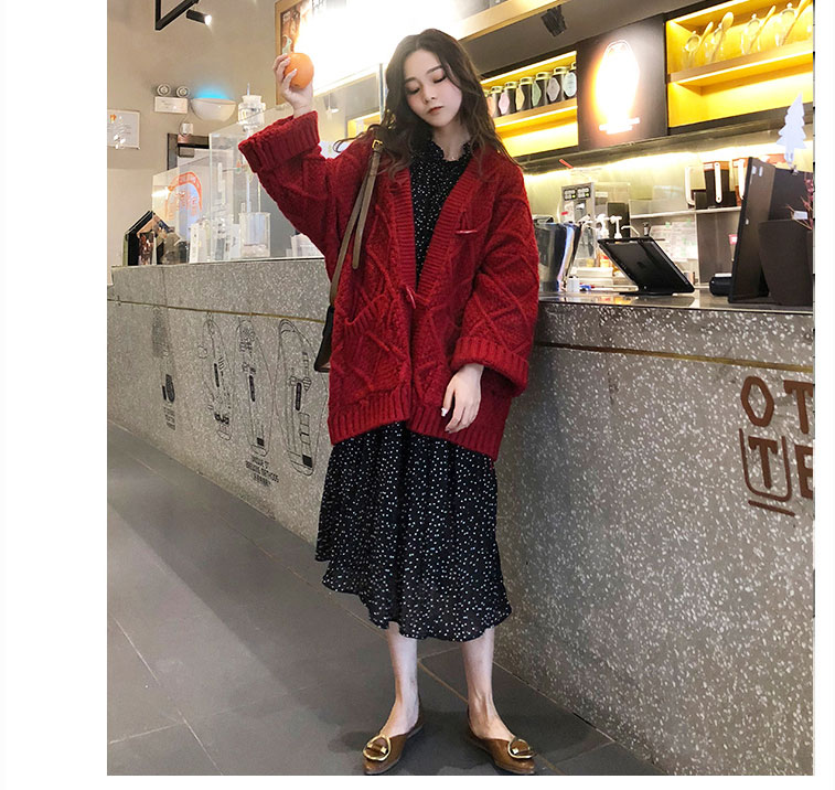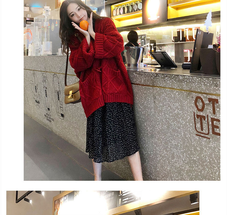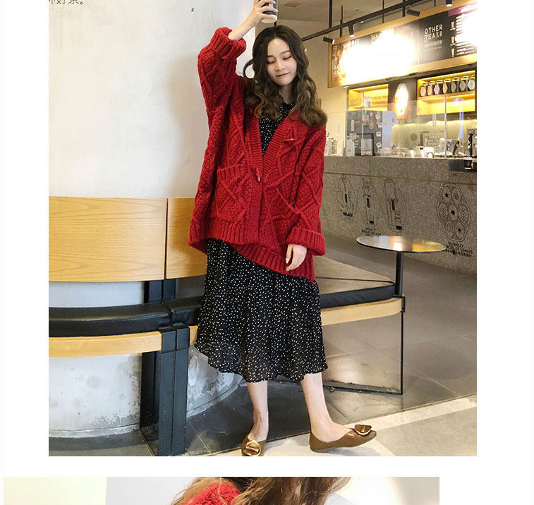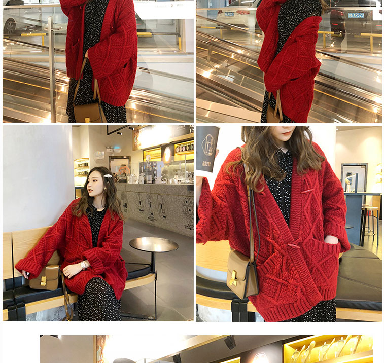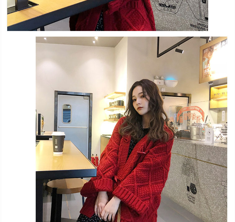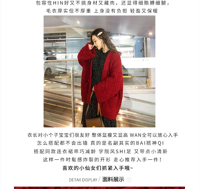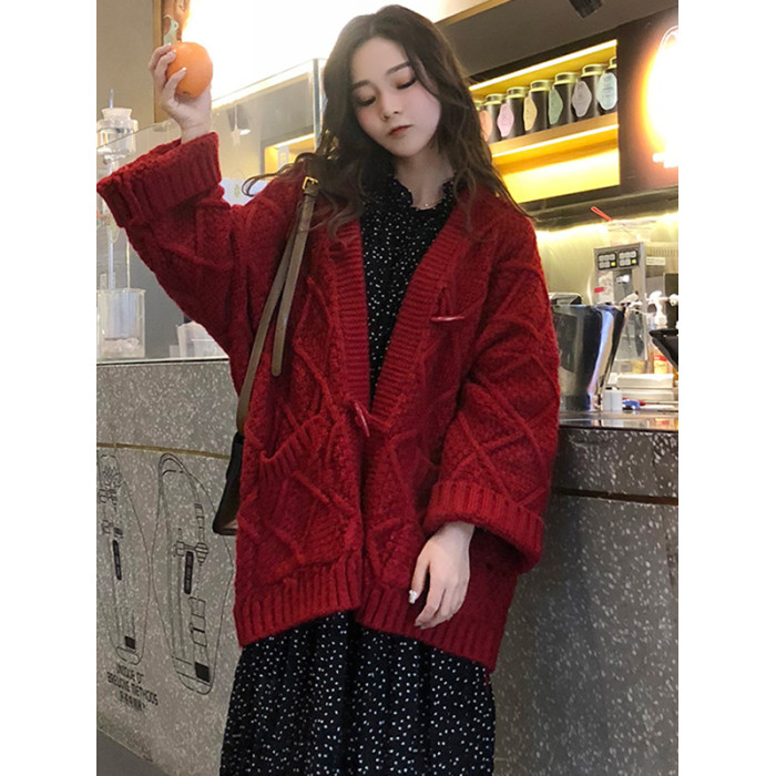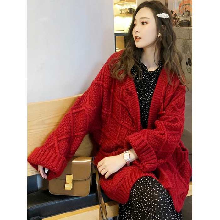 毛衣外套女開衫寬松慵懶風中長款加厚2025秋冬紅色本命年針織外套