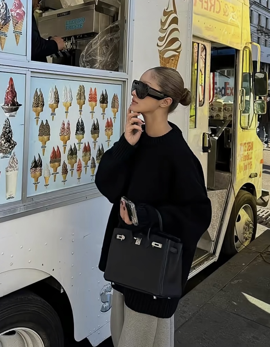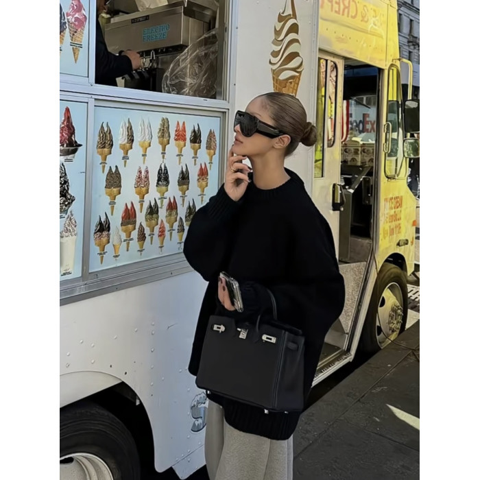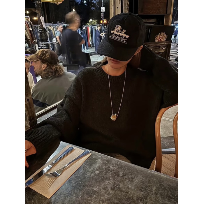 慵懶高級感黑色套頭浣熊絨毛衣女秋冬外穿寬松軟糯加厚內搭針織衫