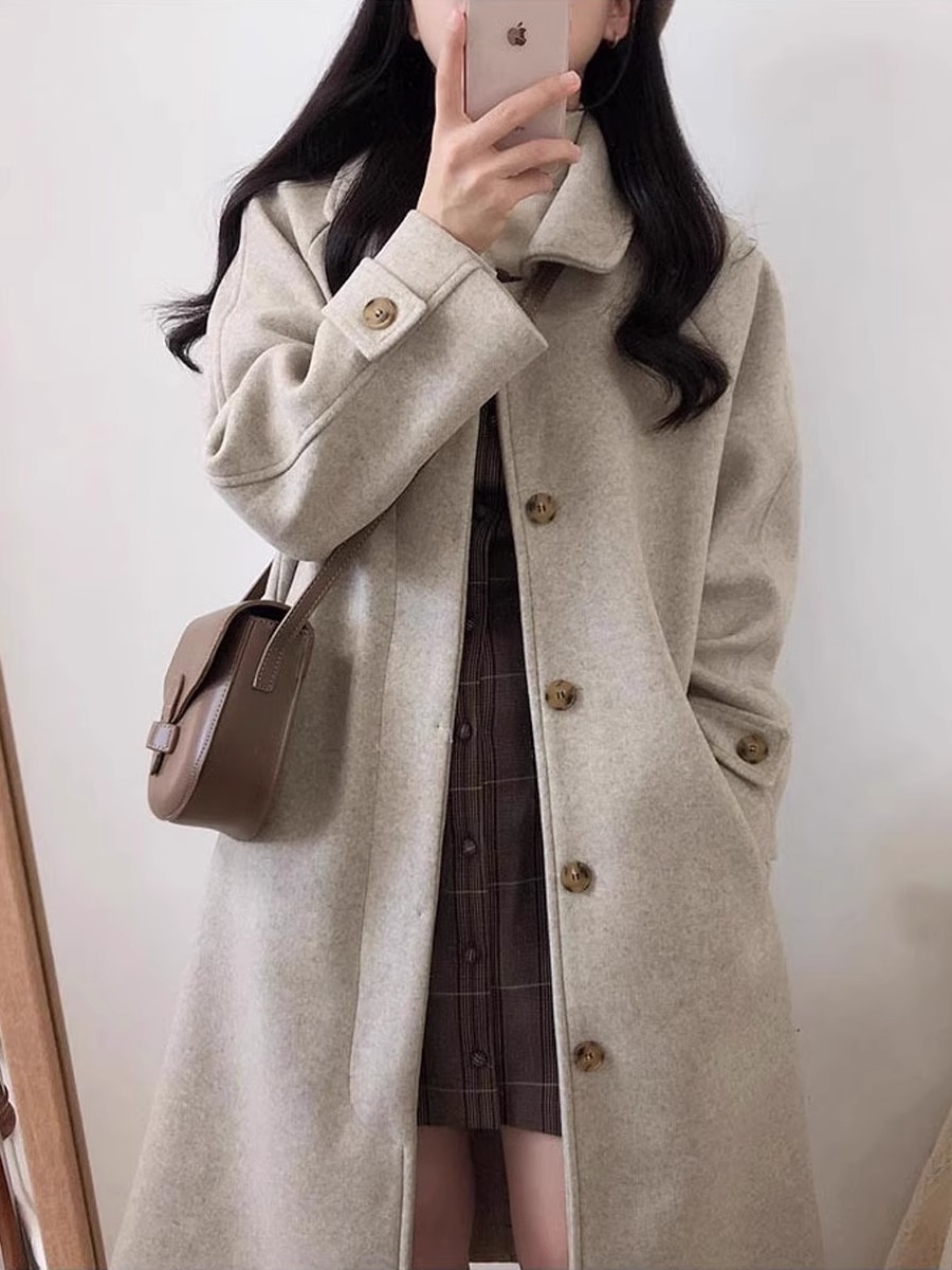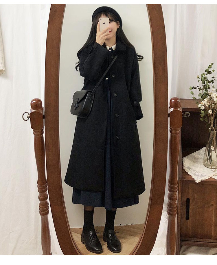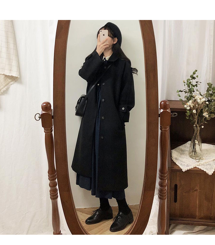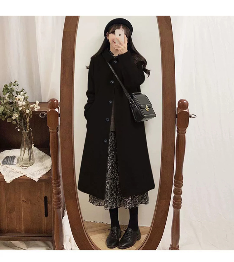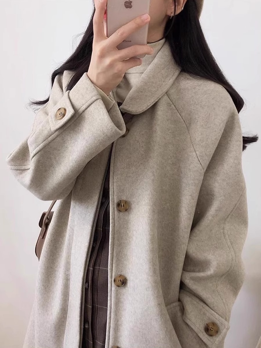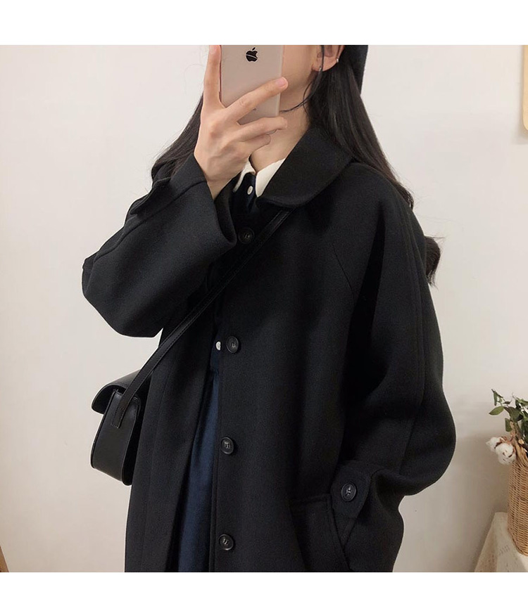 毛呢外套女小個子2024新款秋冬季高級感韓系赫本風厚黑色呢子大衣