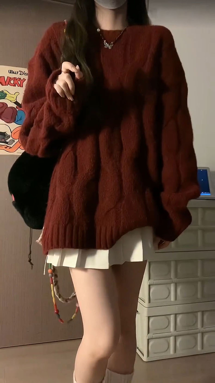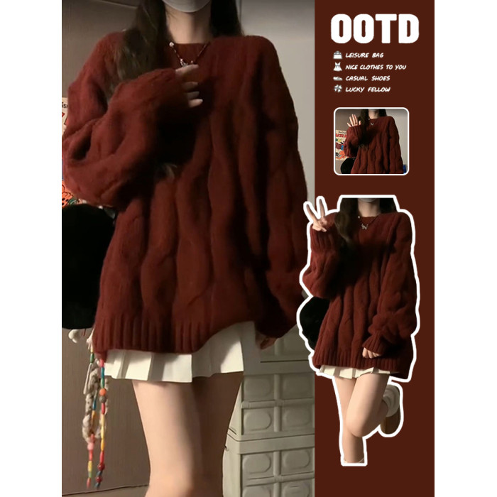 慵懶風酒紅色毛衣女秋冬季2025新款高級感內搭厚上衣秋冬聖誕穿搭