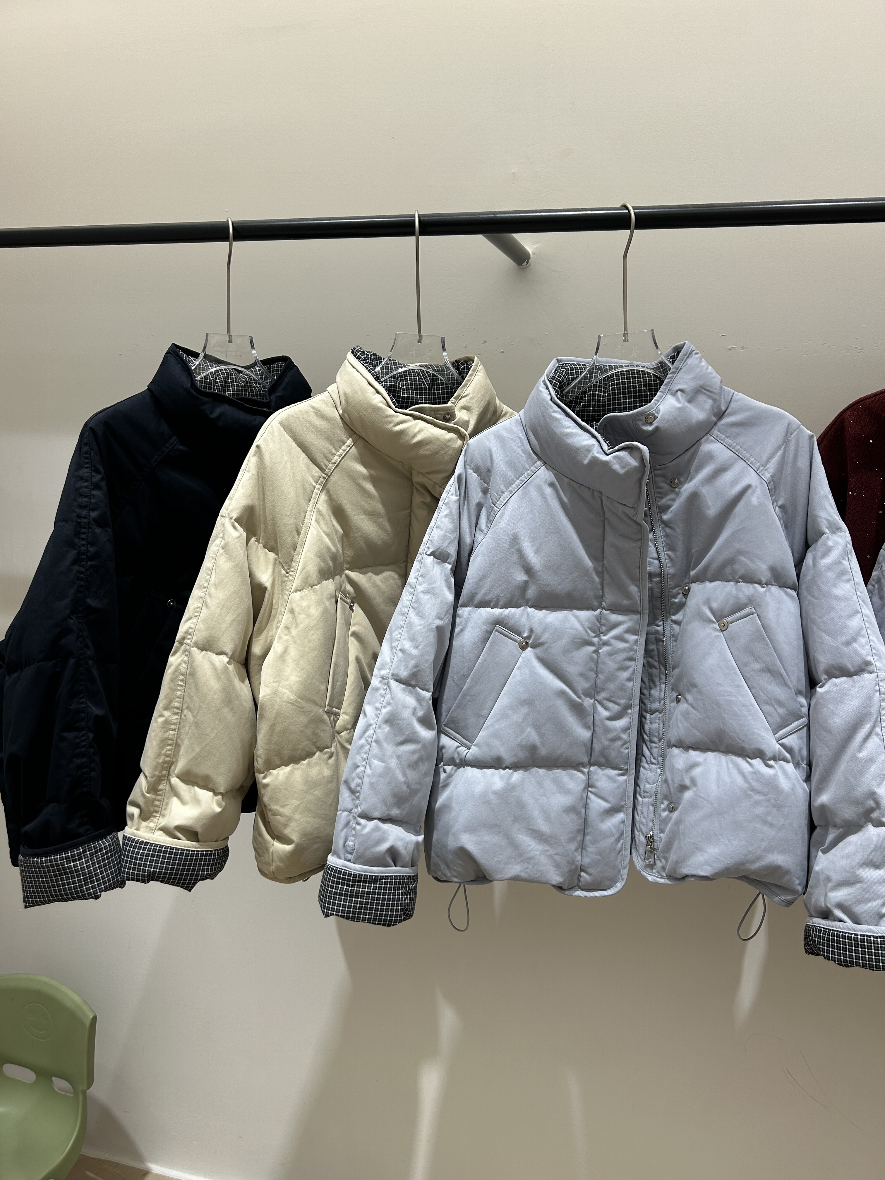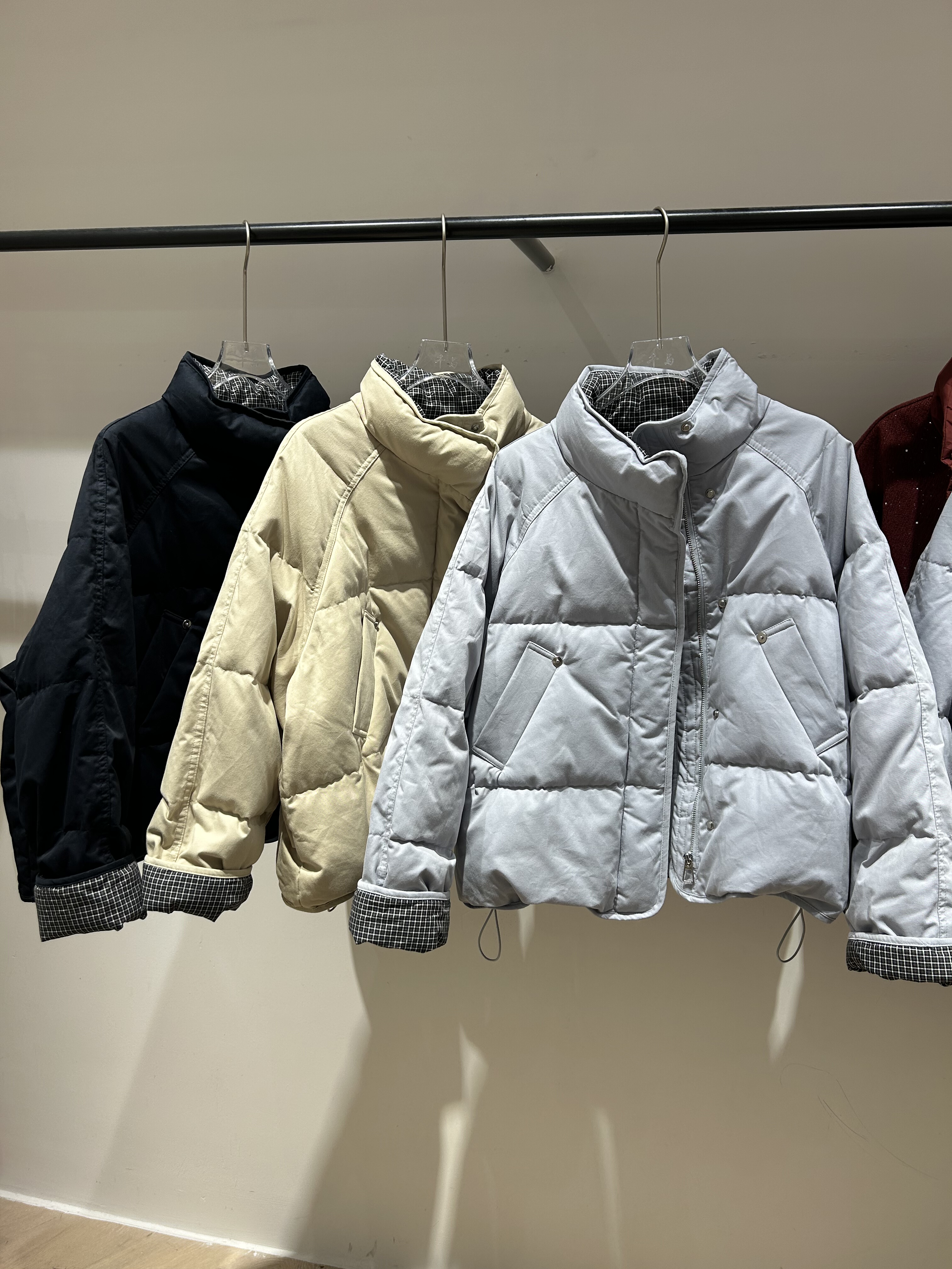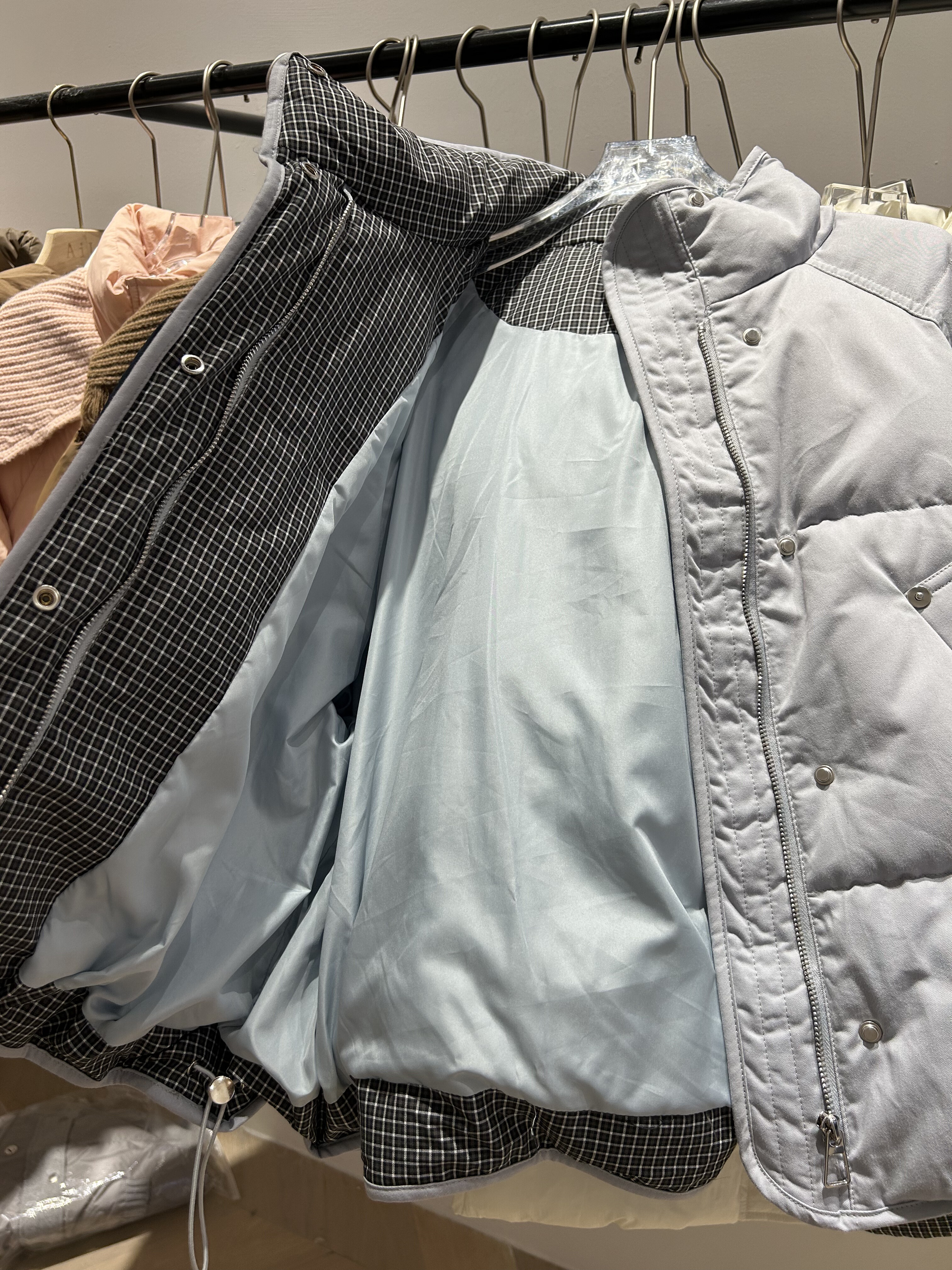2025新款冬季羽絨服女短款格子拼接加厚小個子文藝休閒白鴨絨外套