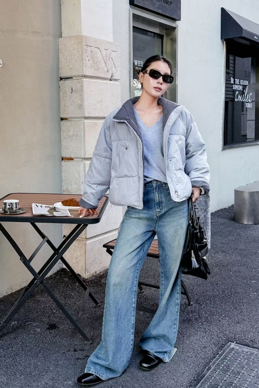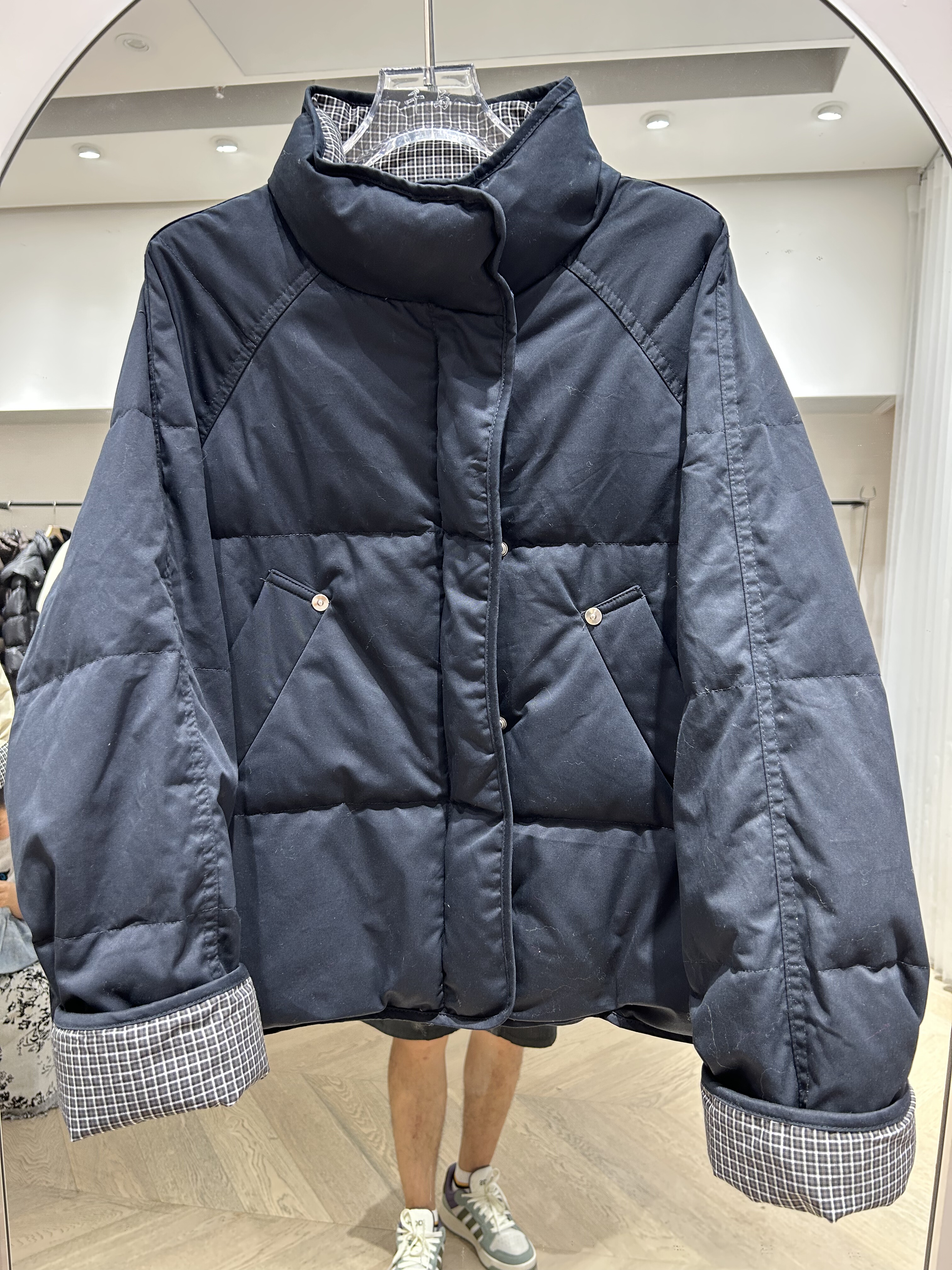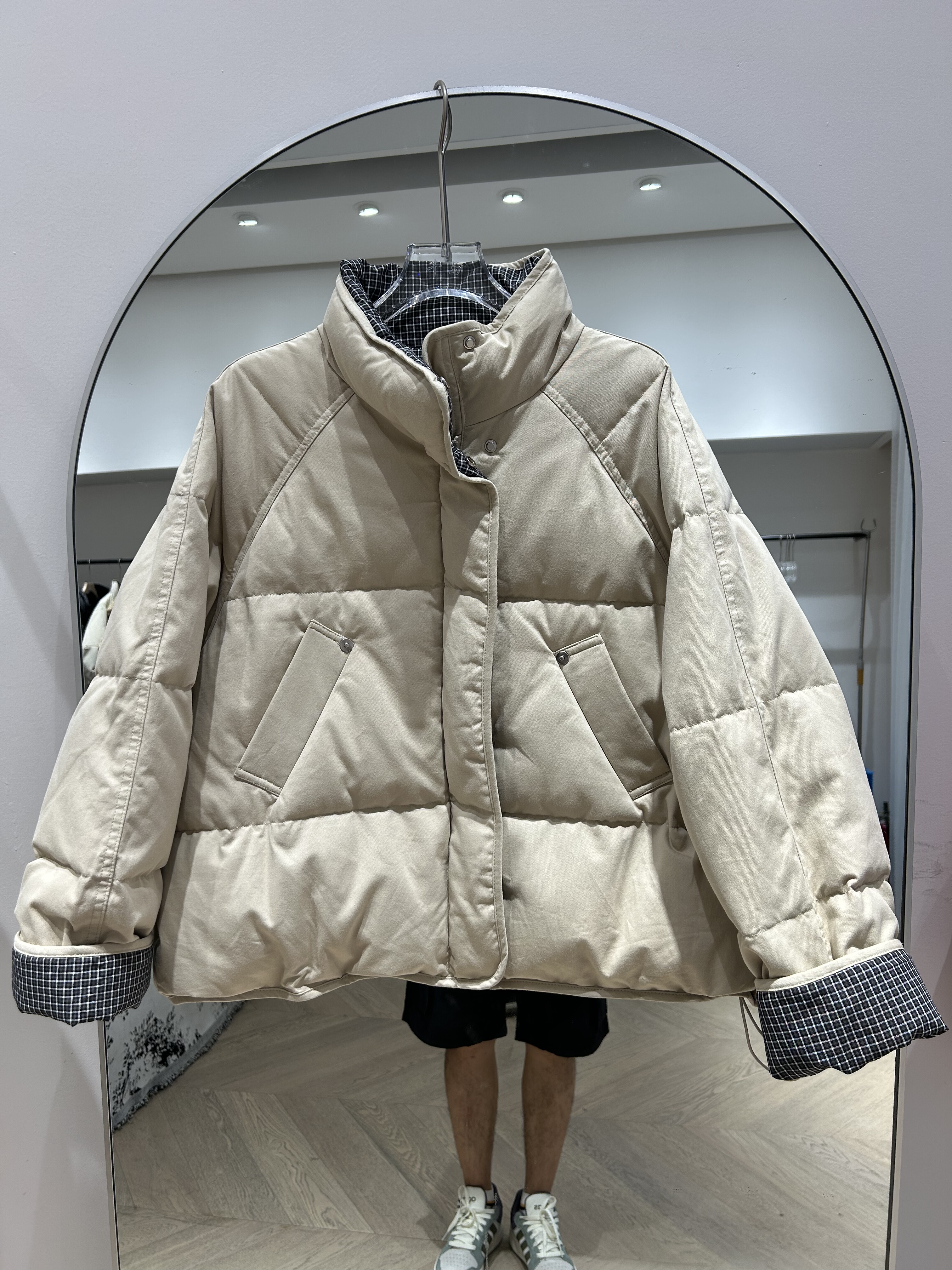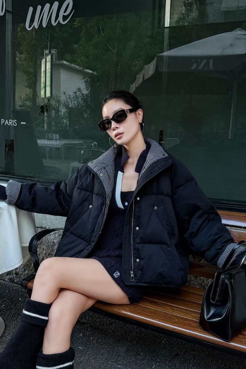 2025新款冬季羽絨服女短款格子拼接加厚小個子文藝休閒白鴨絨外套