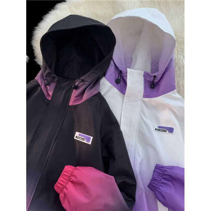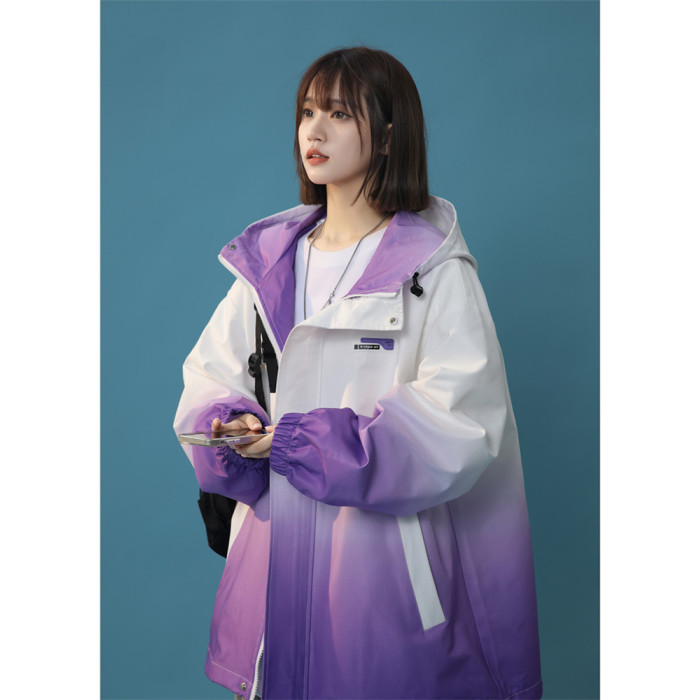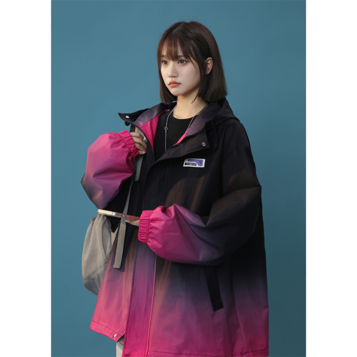 紥染漸變色連帽沖鋒衣夾克女加肥大碼胖MM寬松百搭休閒棒球服外套