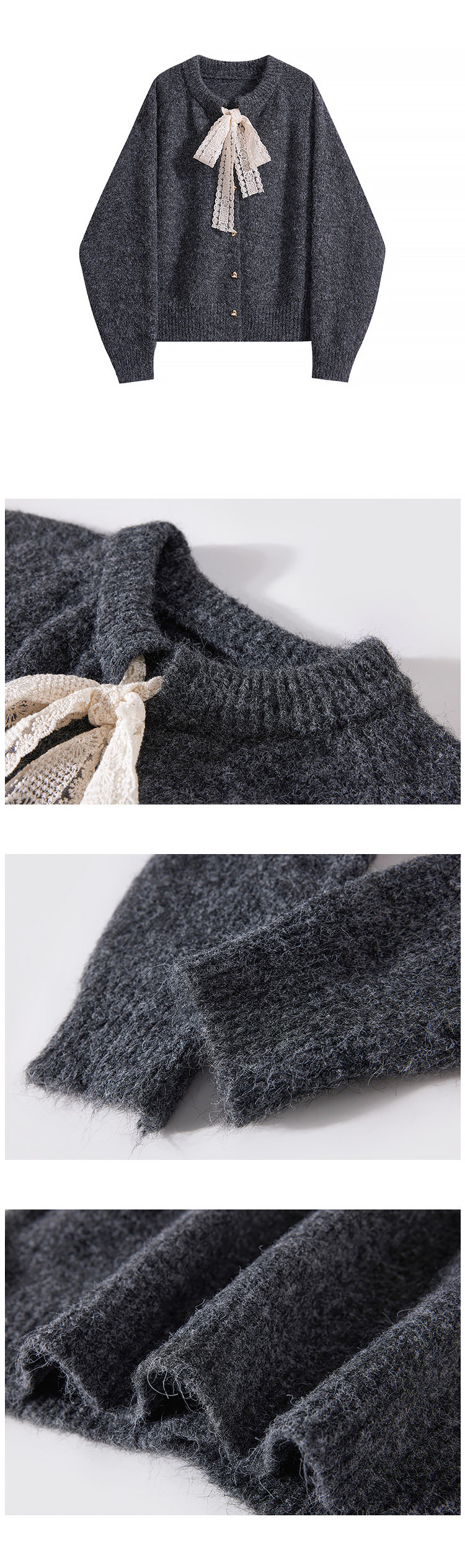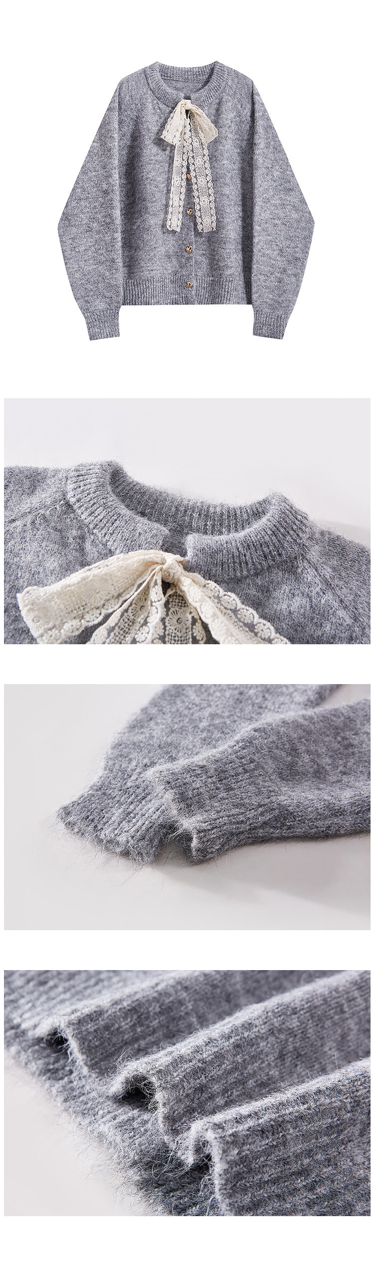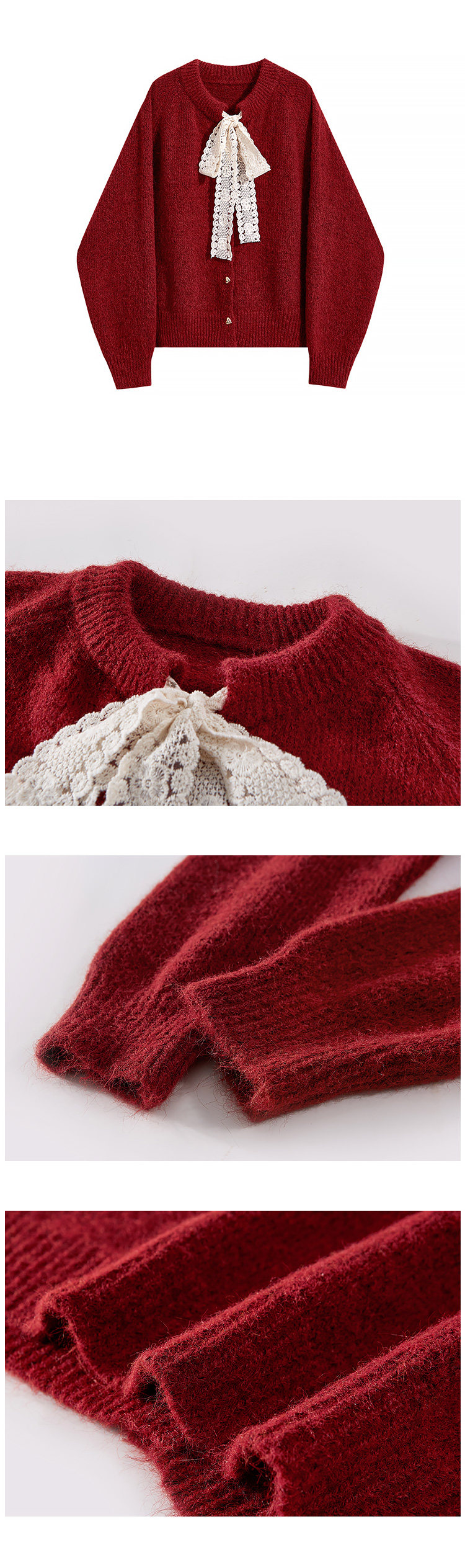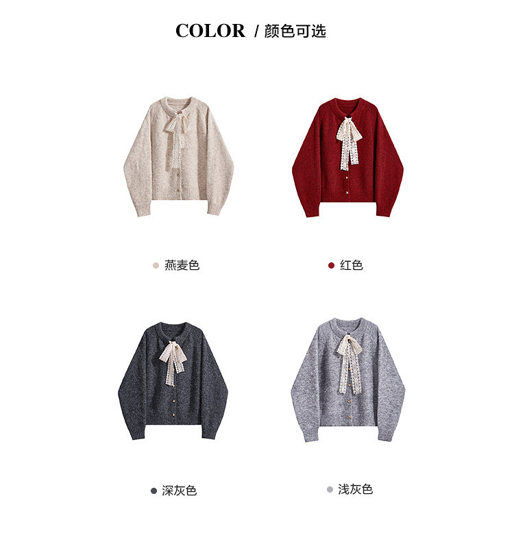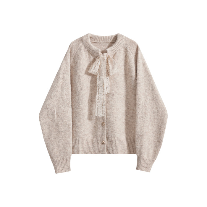 那些事衣櫥法式溫柔風蕾絲系帶氣質毛衣女秋冬復古百搭毛針織上衣