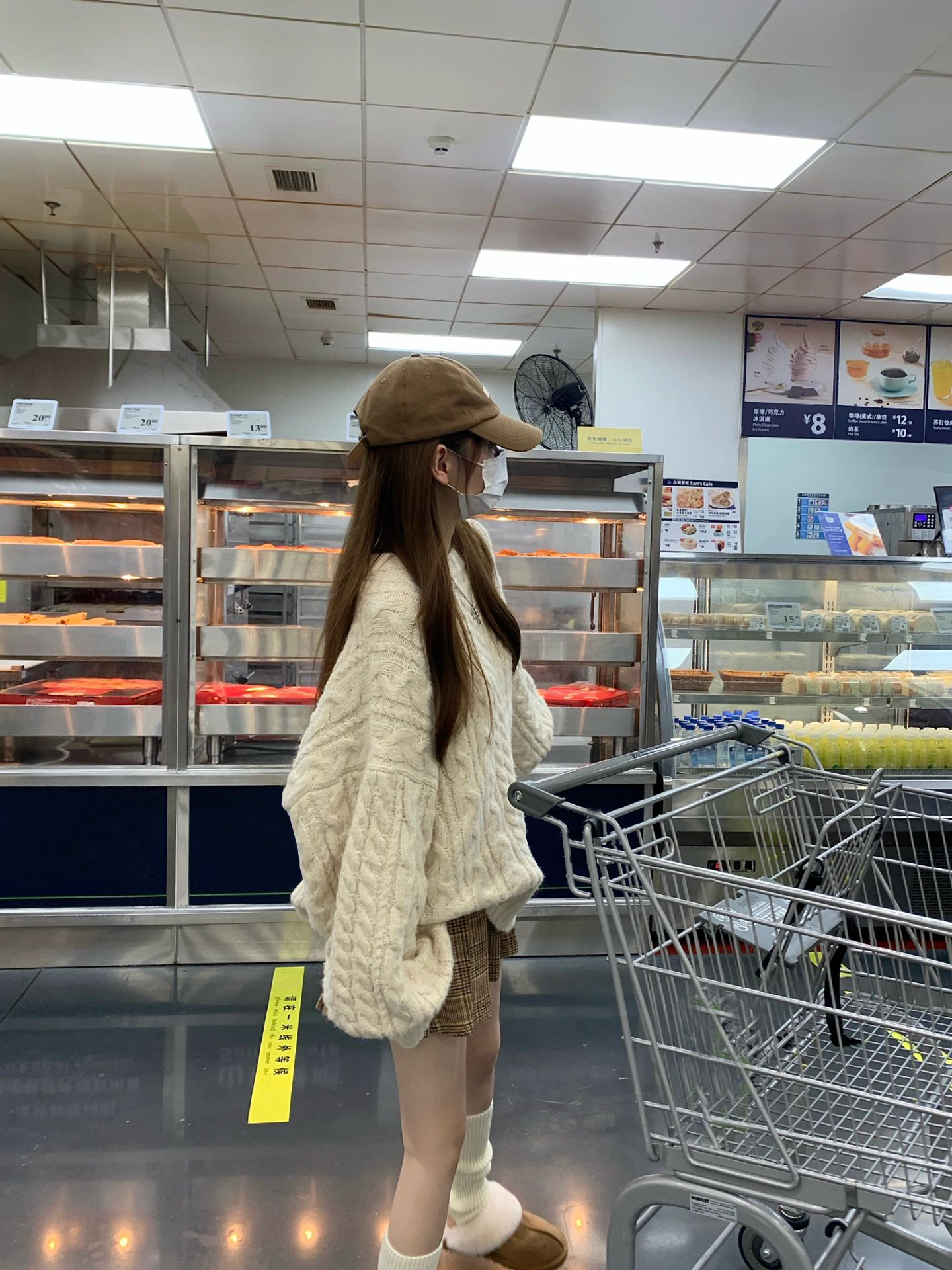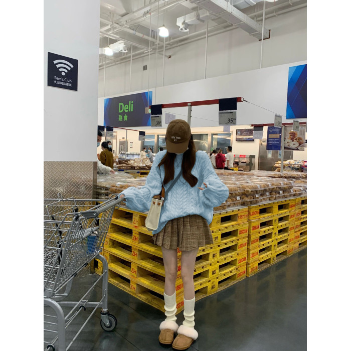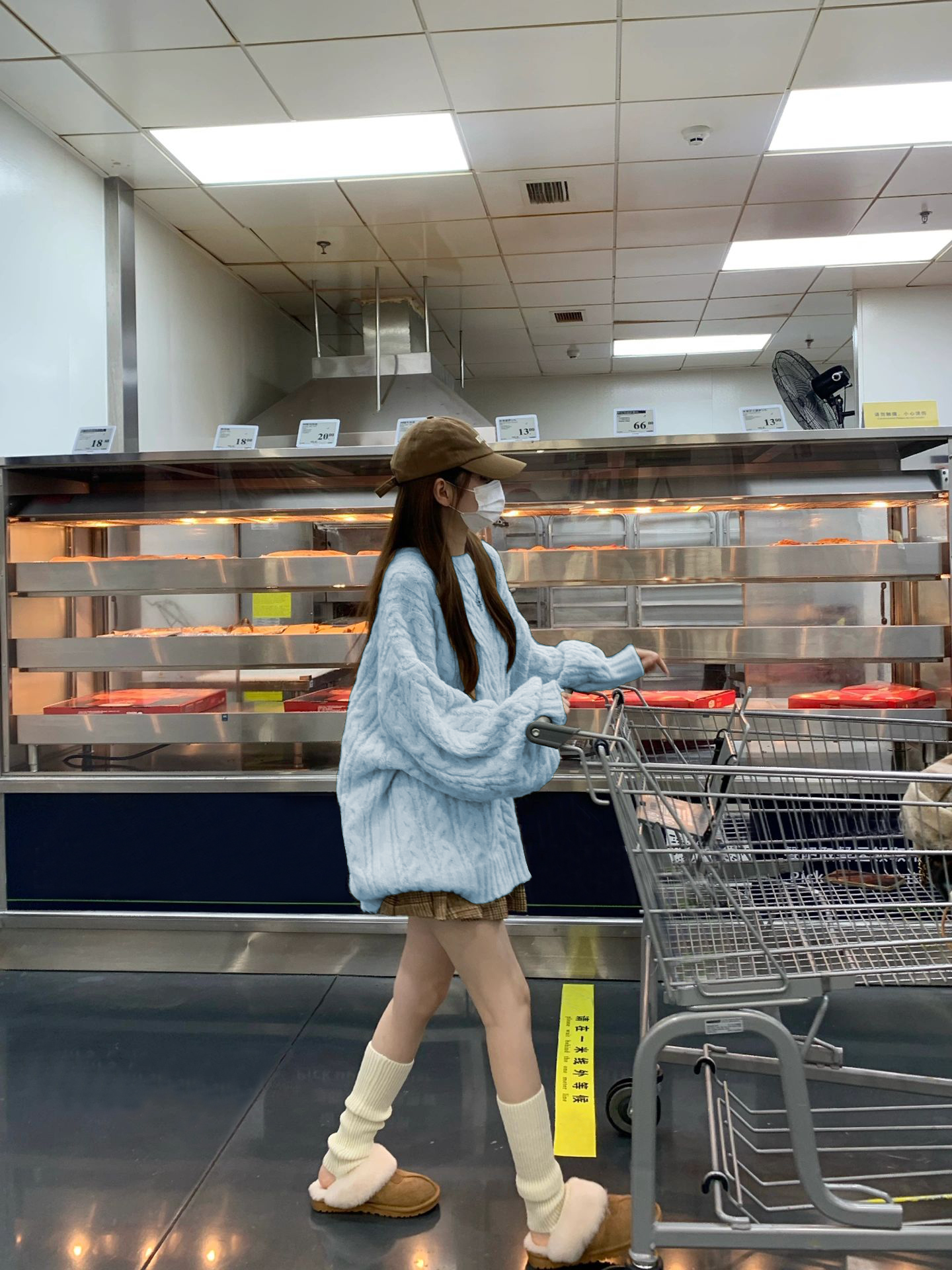 大碼女裝圓領加厚藍色麻花毛衣女秋冬寬松外穿慵懶風小衆保暖針織