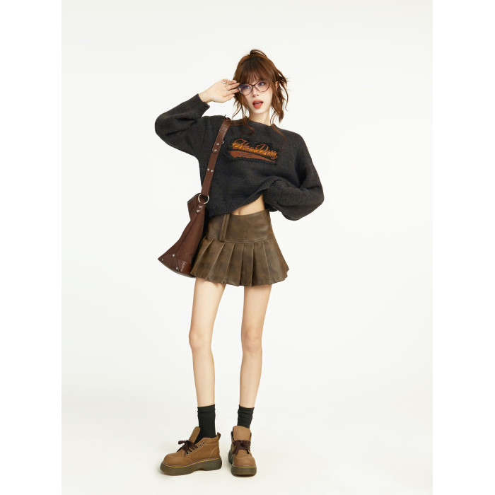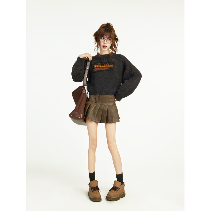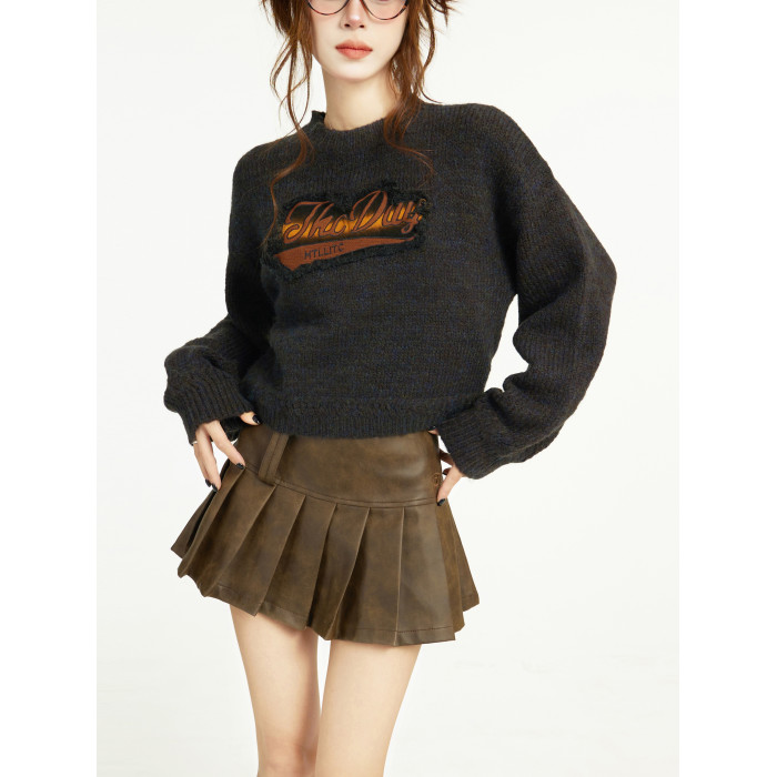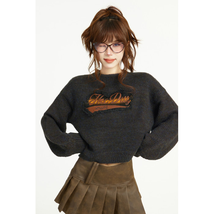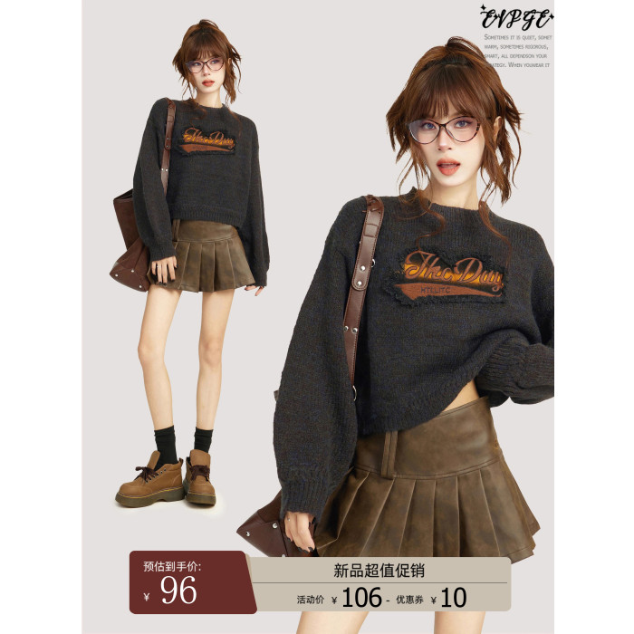 美式灰色短款針織毛衣女秋冬冬季設計感小衆正肩寬松外穿內搭上衣
