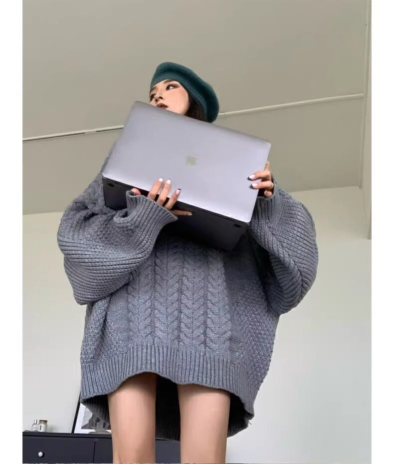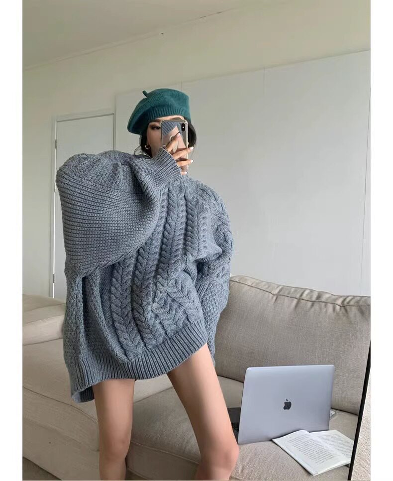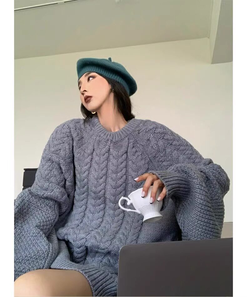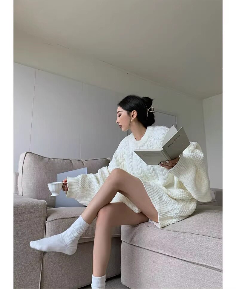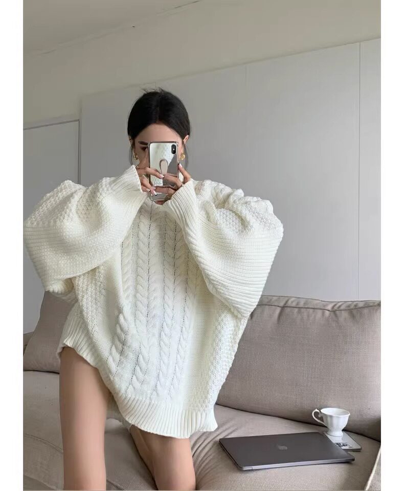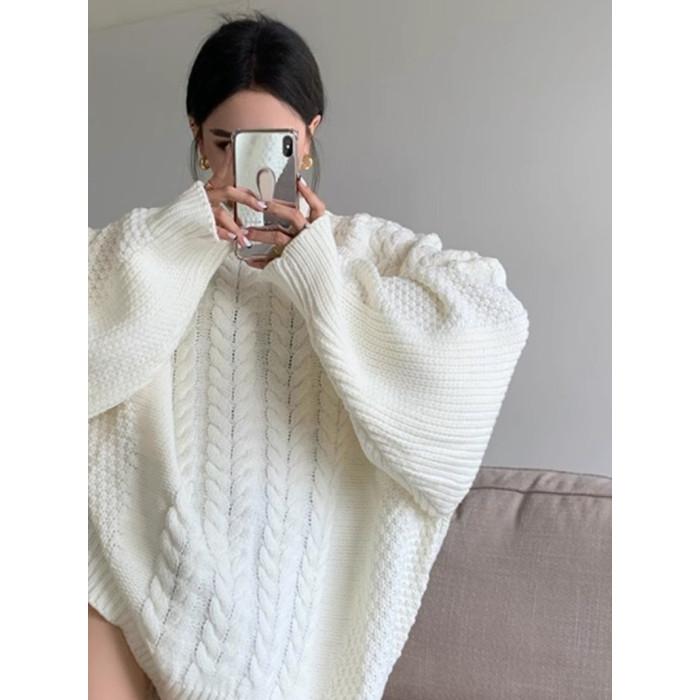 慵懶風奶fufu中長款白色麻花毛衣女秋冬軟糯高級感套頭針織衫加厚