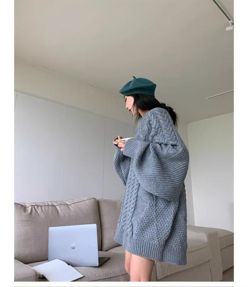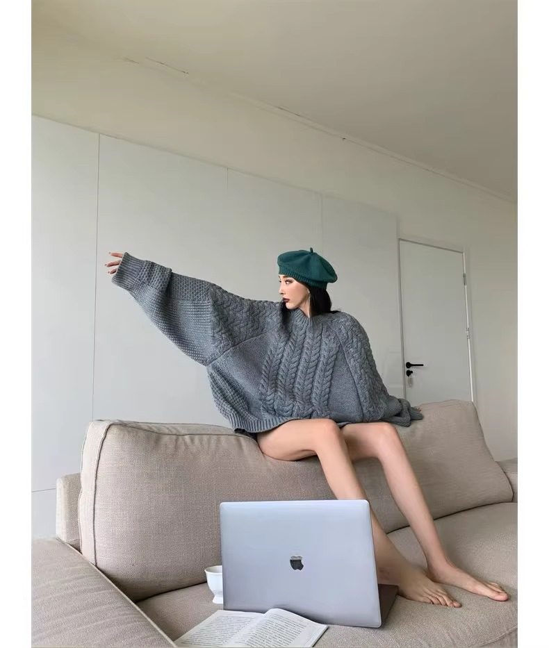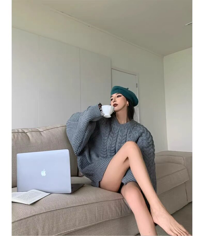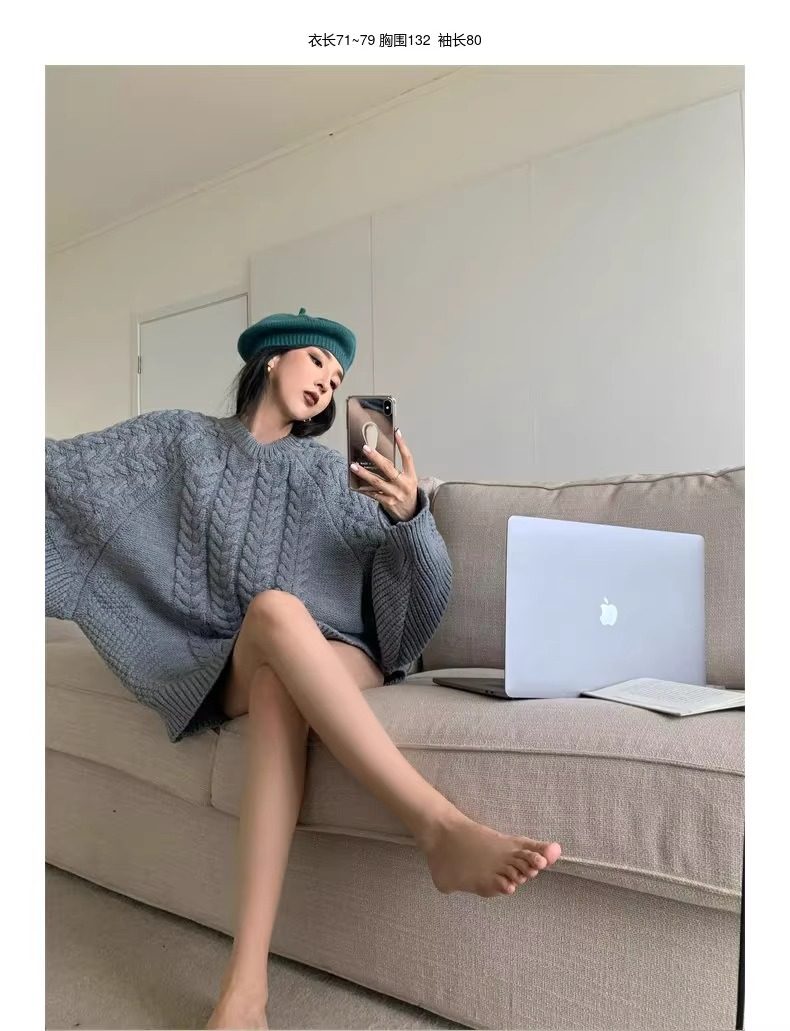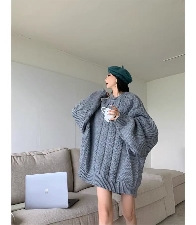 慵懶風奶fufu中長款白色麻花毛衣女秋冬軟糯高級感套頭針織衫加厚