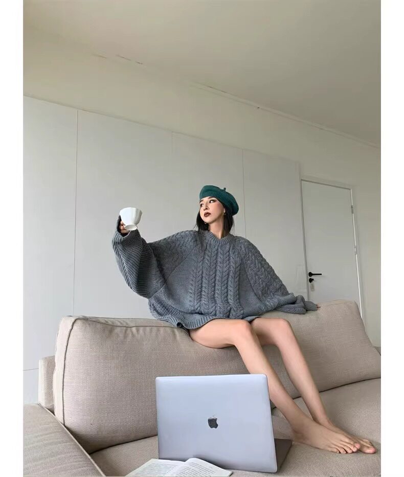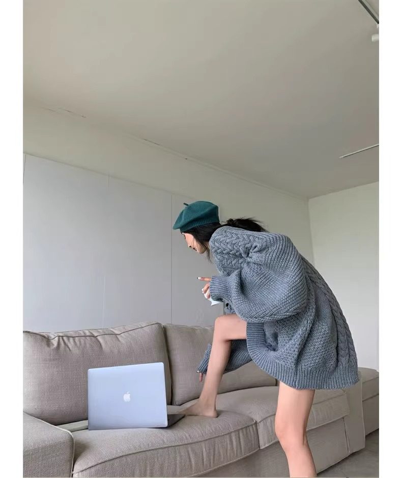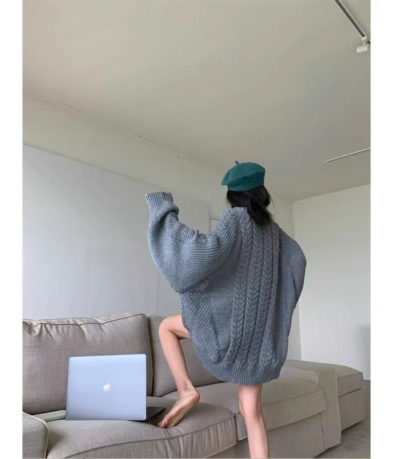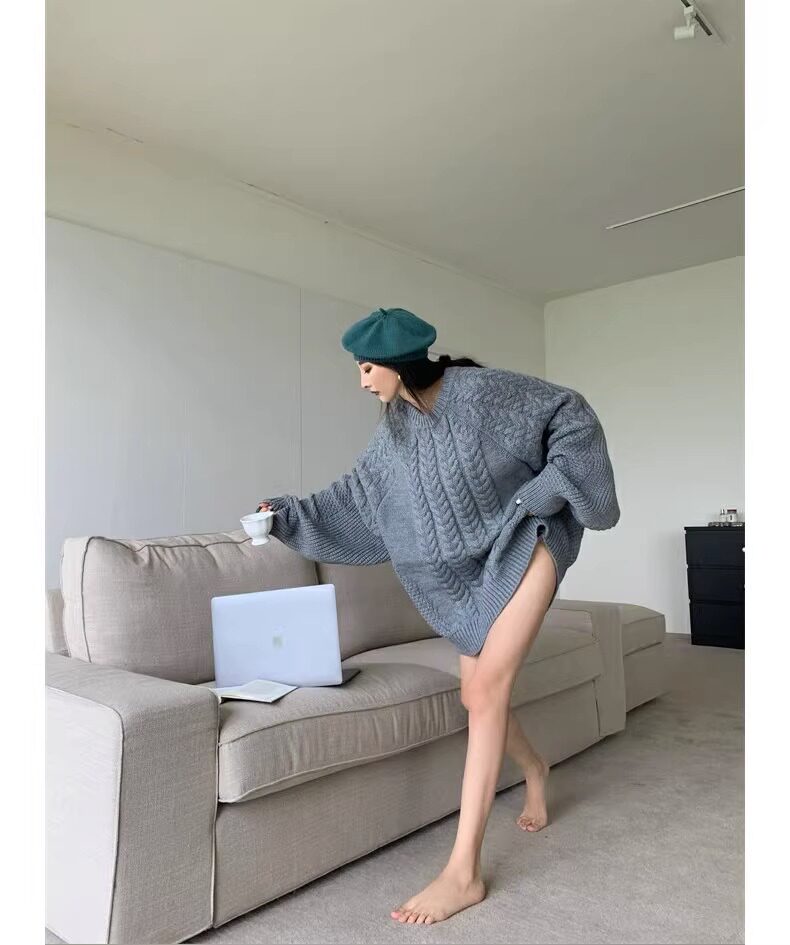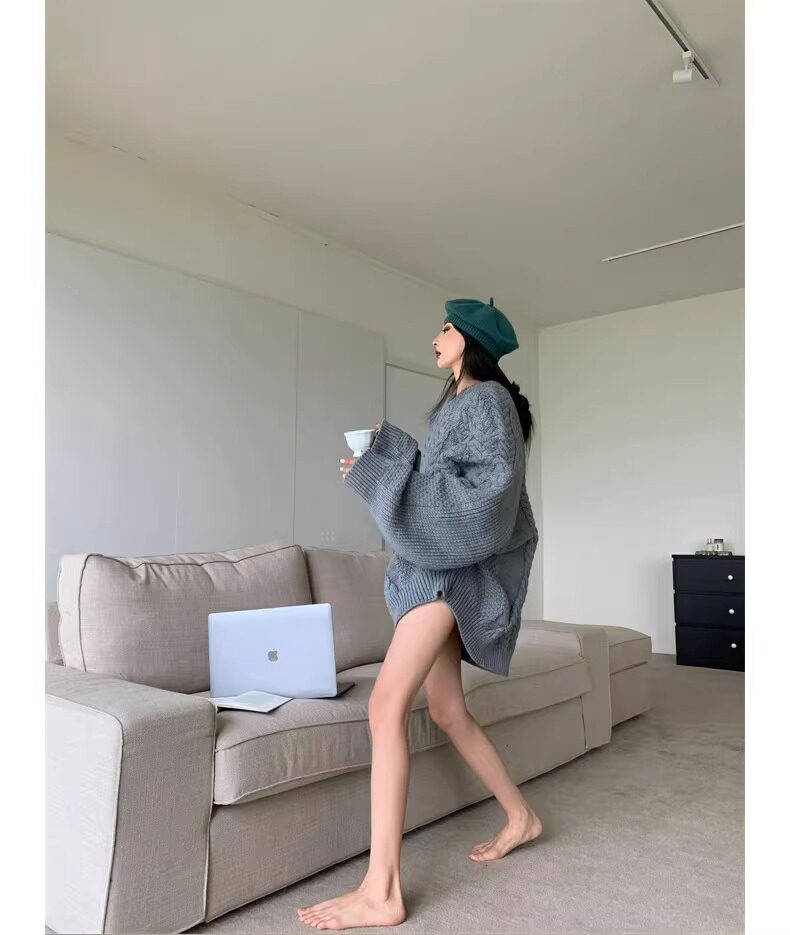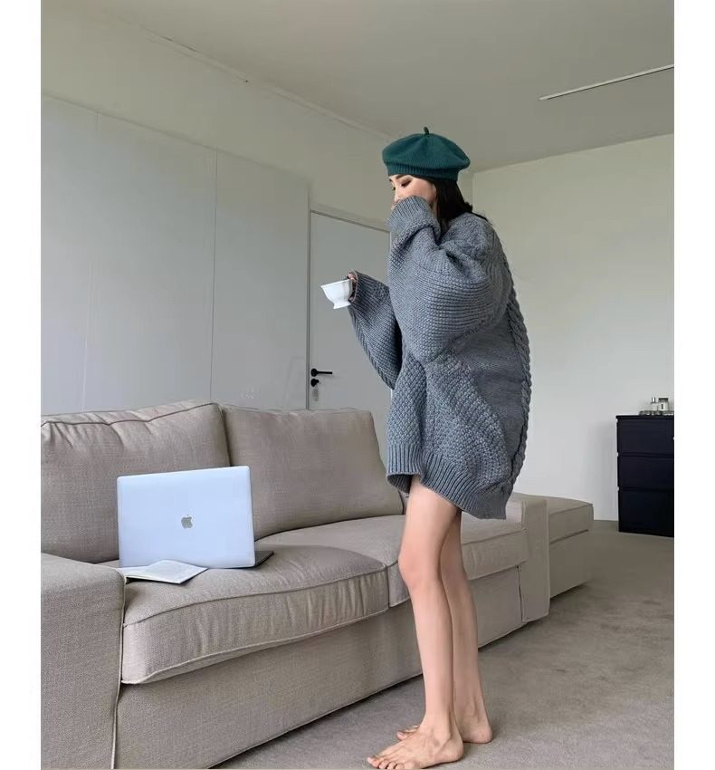 慵懶風奶fufu中長款白色麻花毛衣女秋冬軟糯高級感套頭針織衫加厚