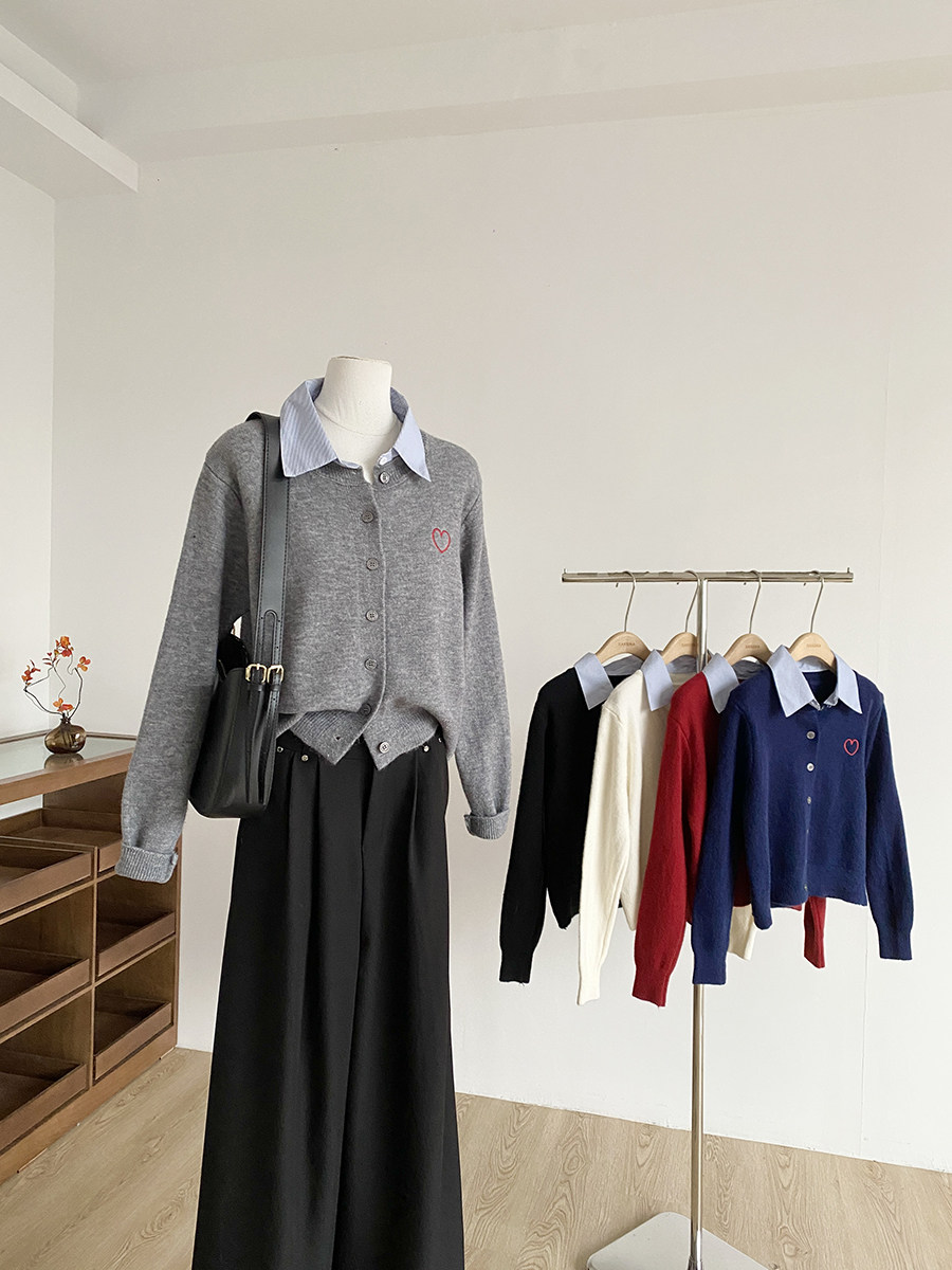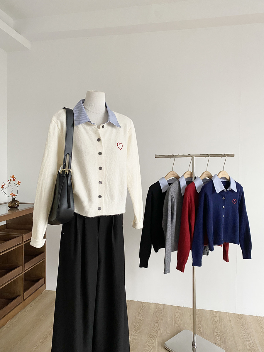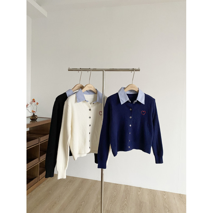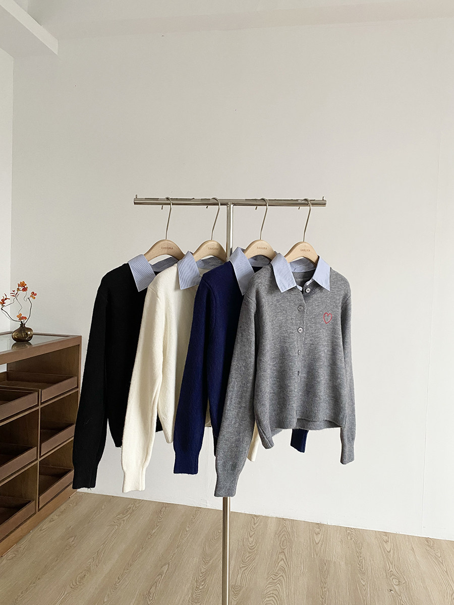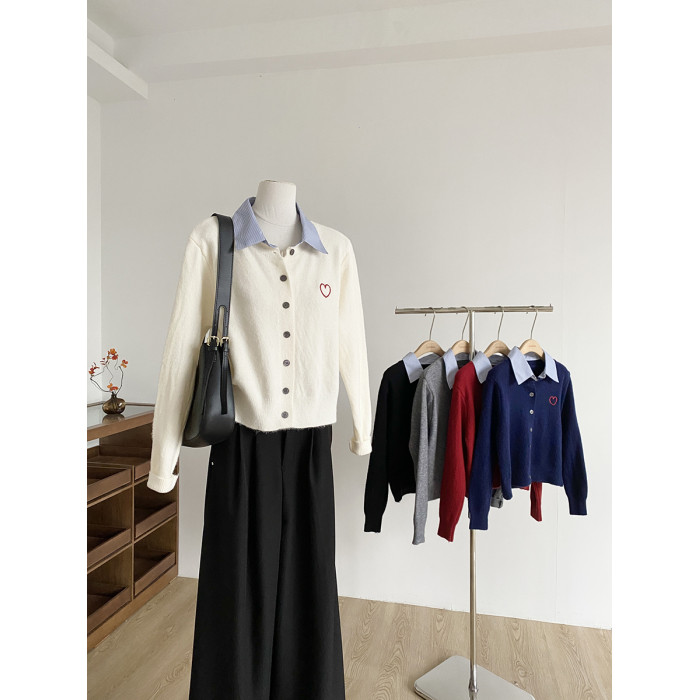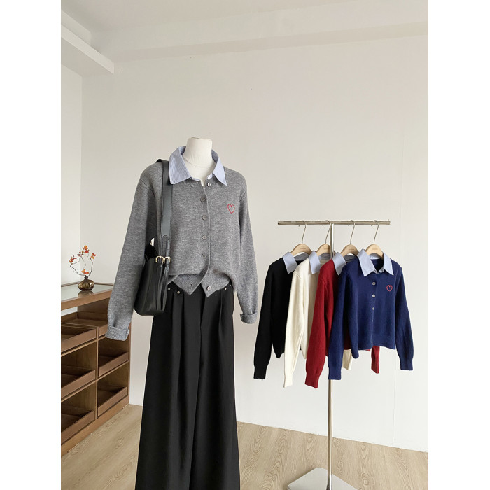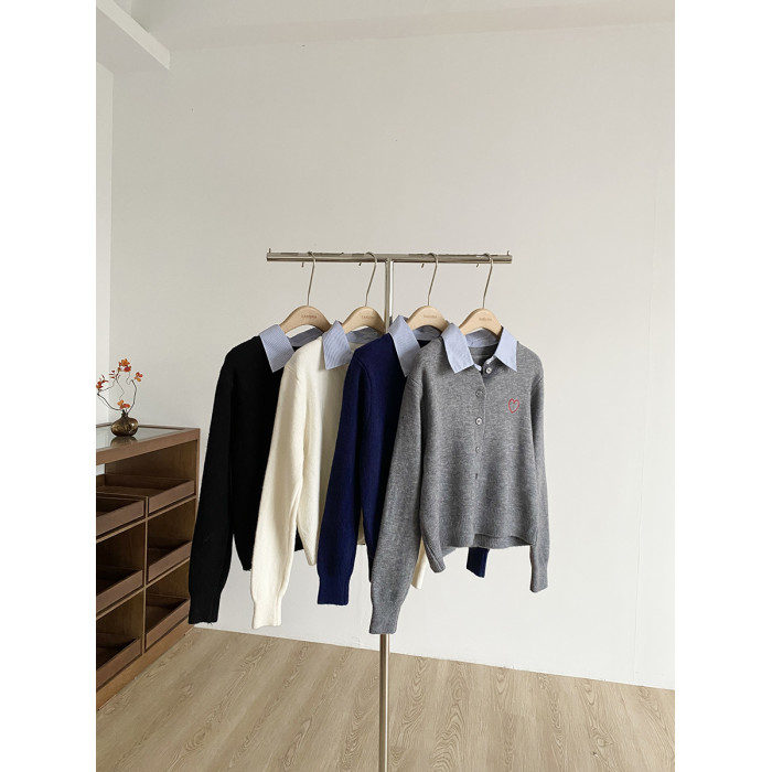 2025秋季新款韓版修身百搭慵懶感長袖毛衣時尚通勤polo領拼接衫女