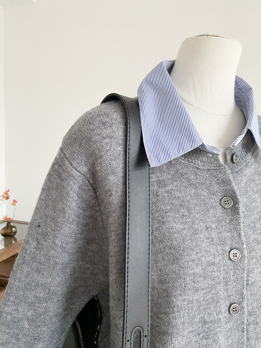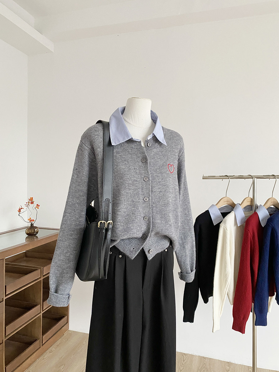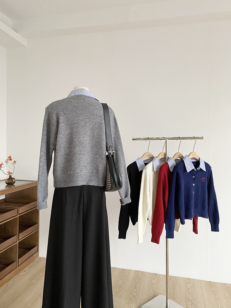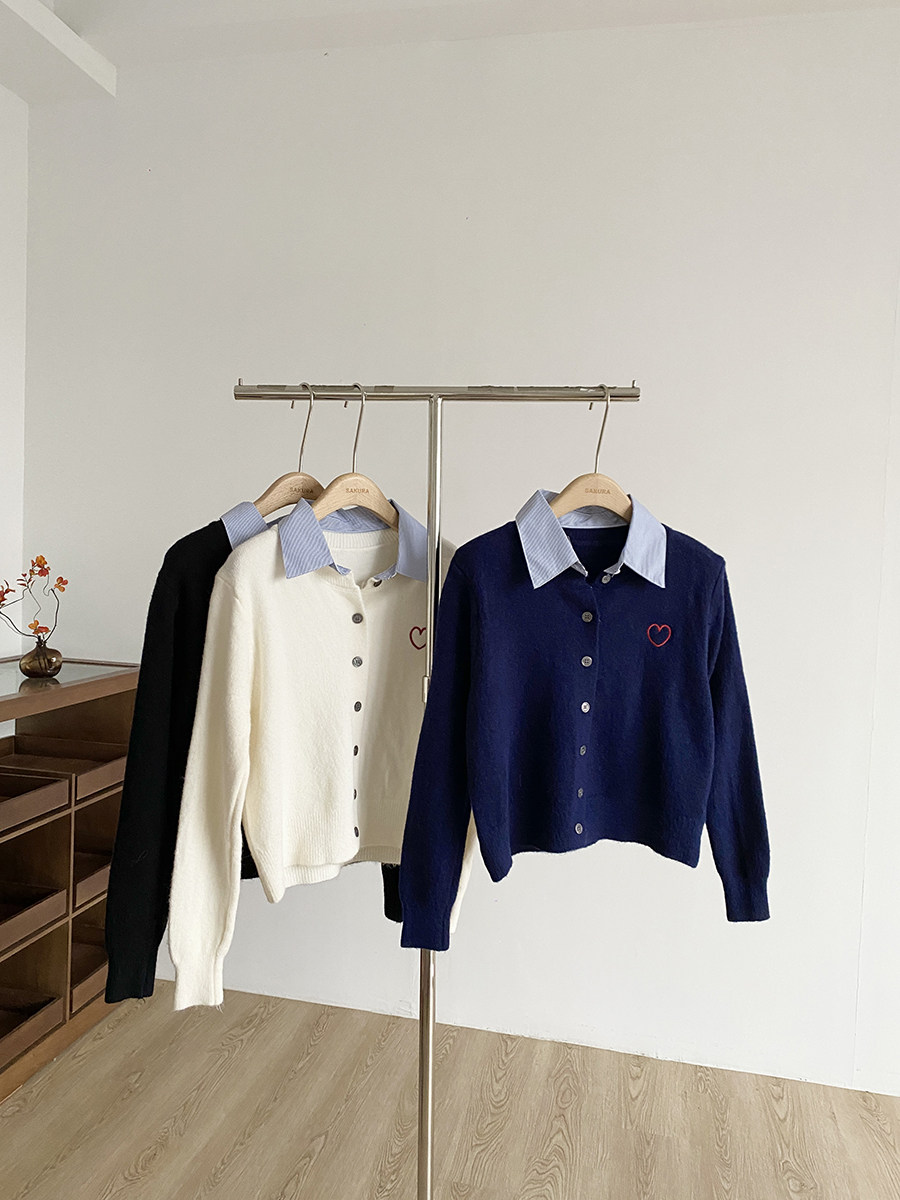 2025秋季新款韓版修身百搭慵懶感長袖毛衣時尚通勤polo領拼接衫女