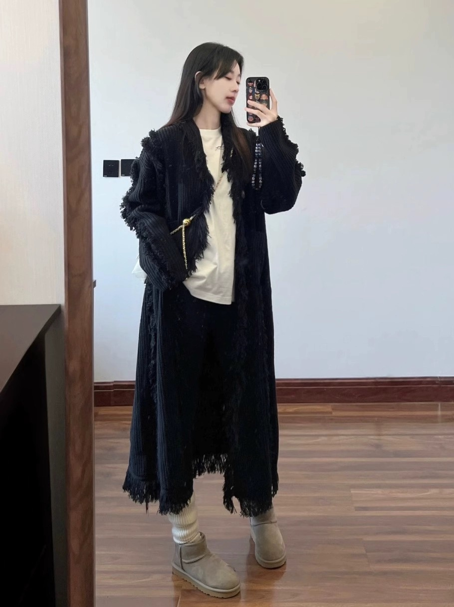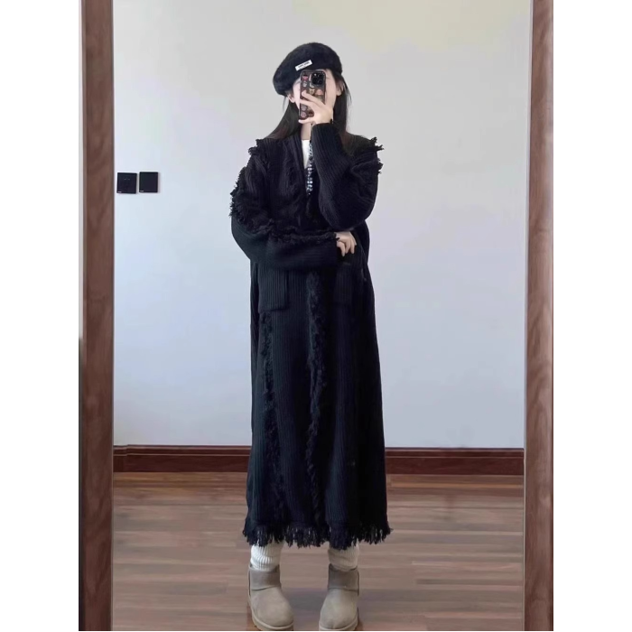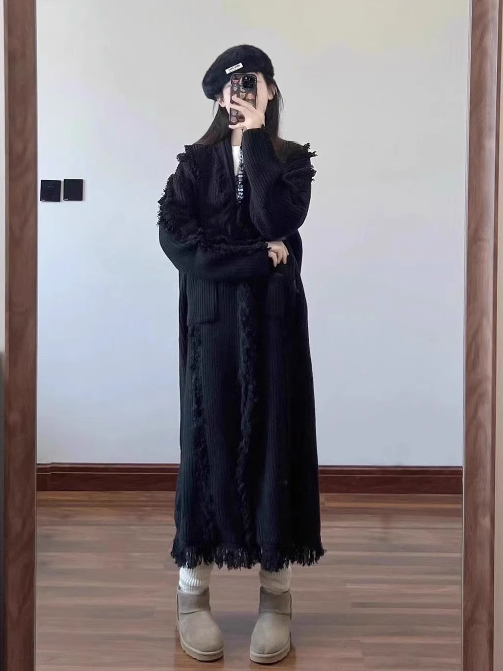 高級感流蘇長款毛衣外套女2025秋冬新款寬松網紅加厚爆款針織開衫