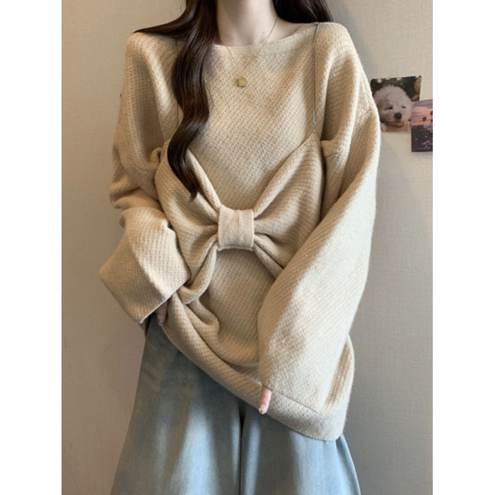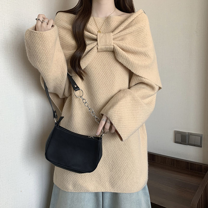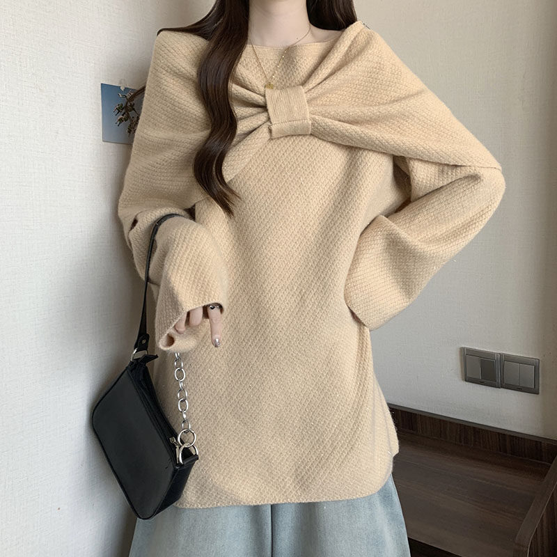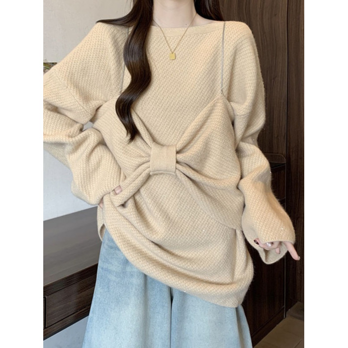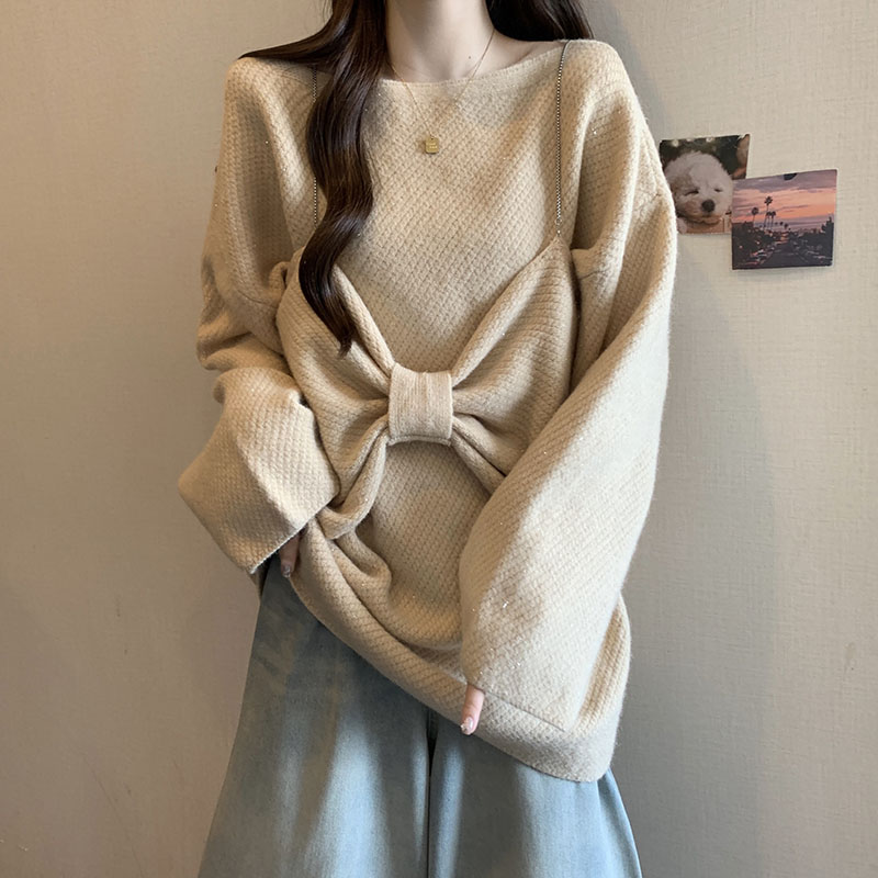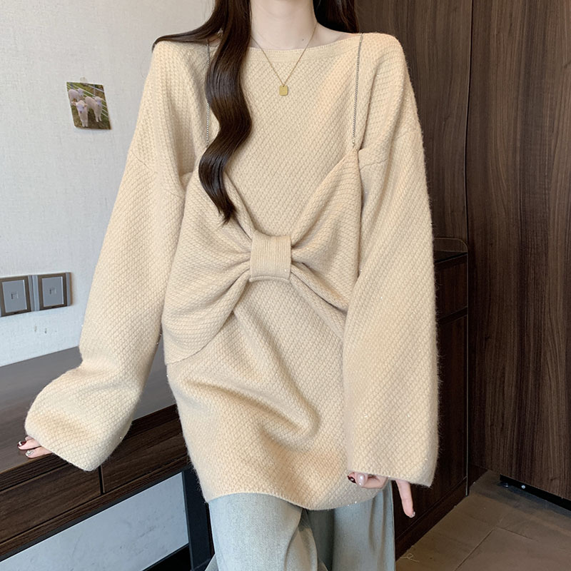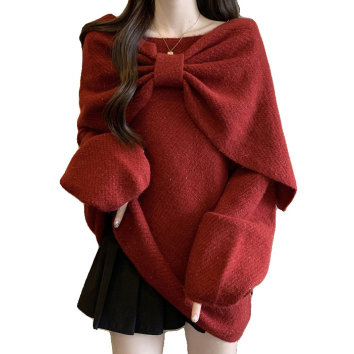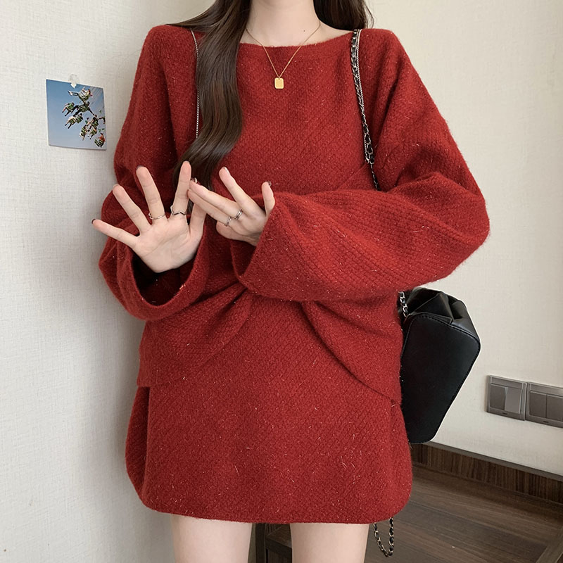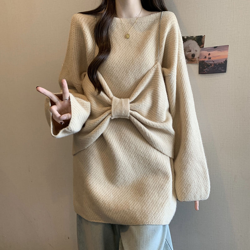 蝴蝶結紅色亮絲針織衫毛衣大碼女裝2025秋季胖mm中長款上衣兩件套