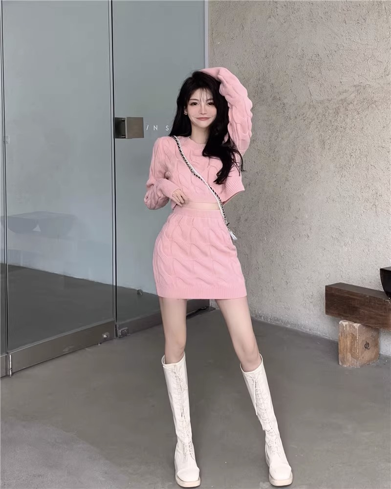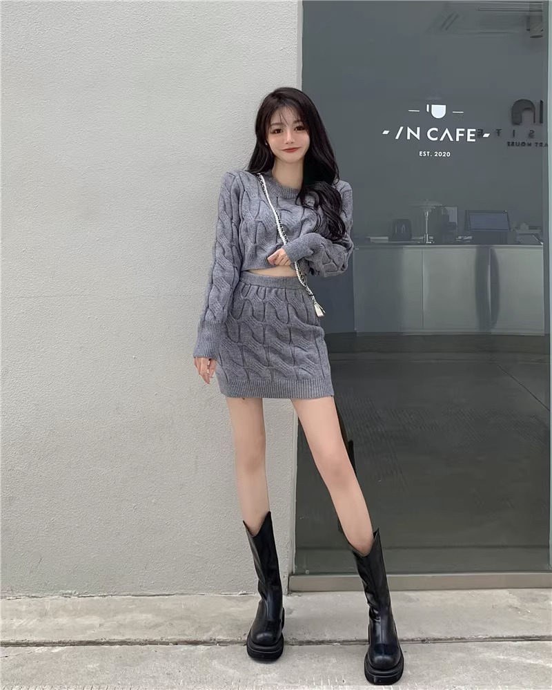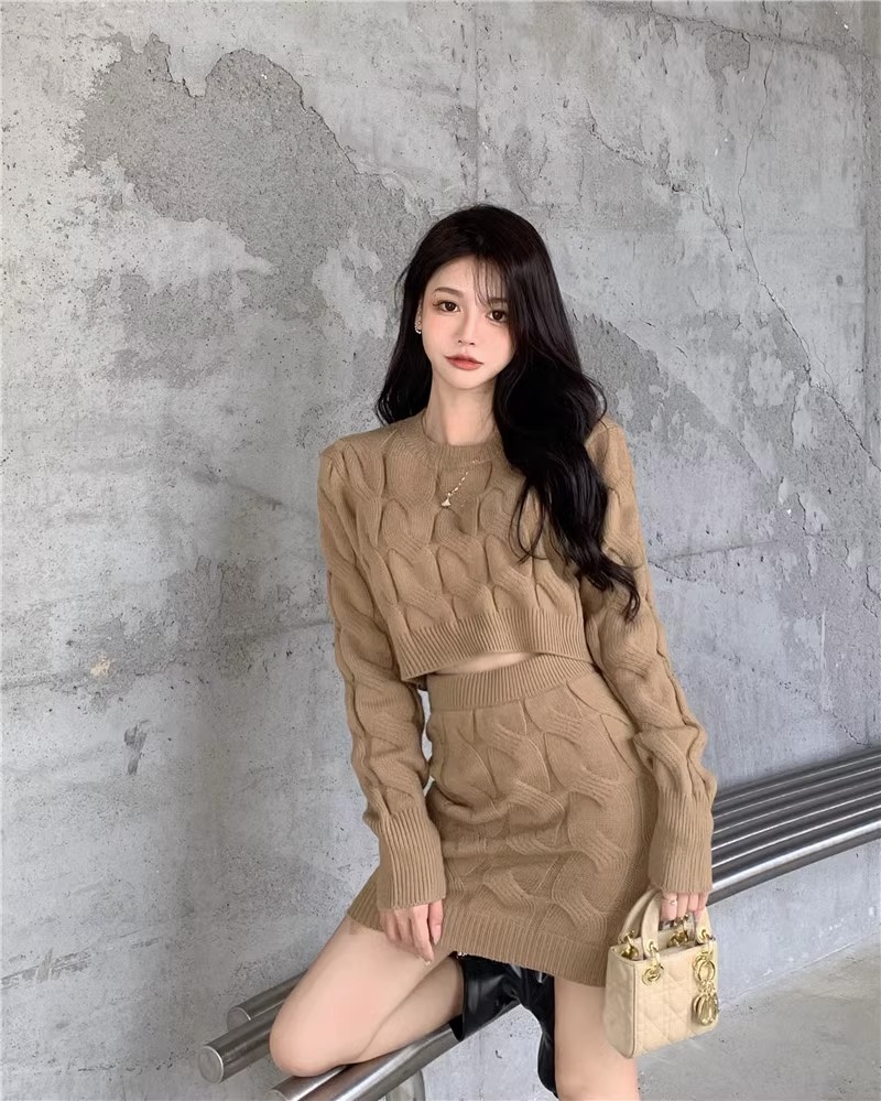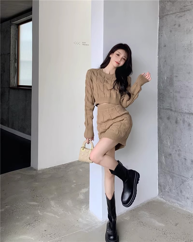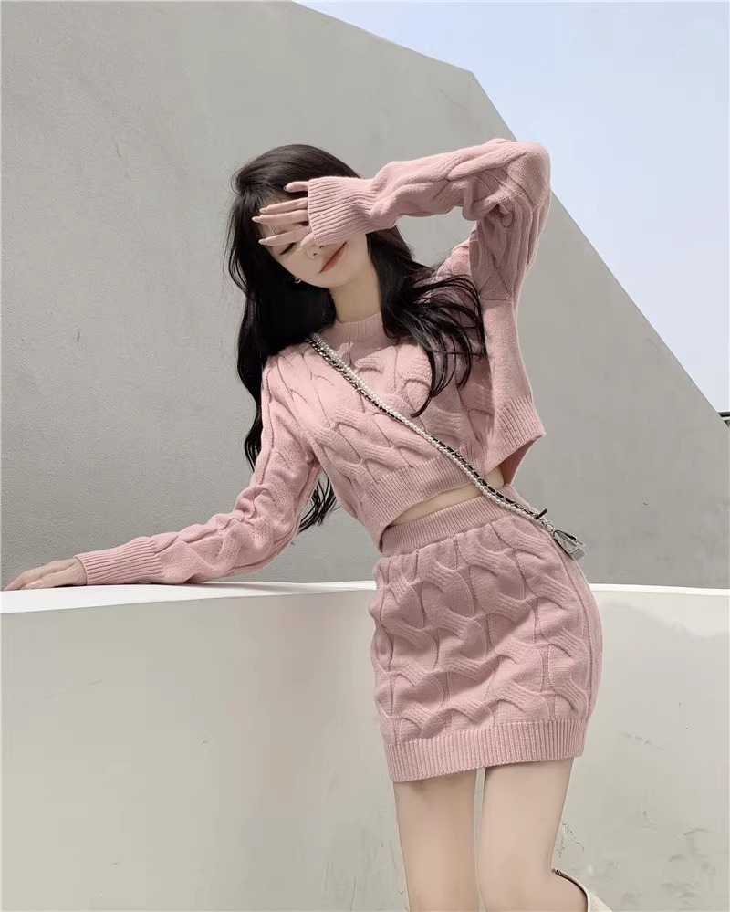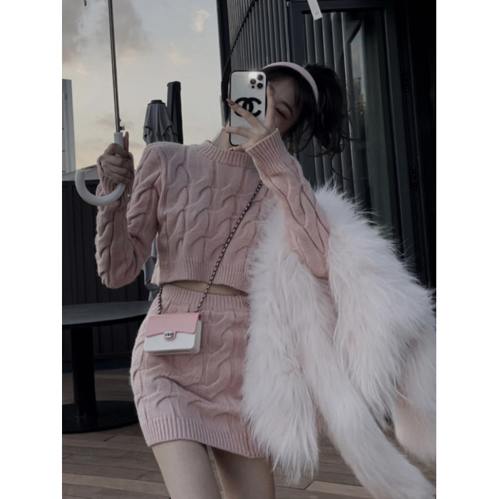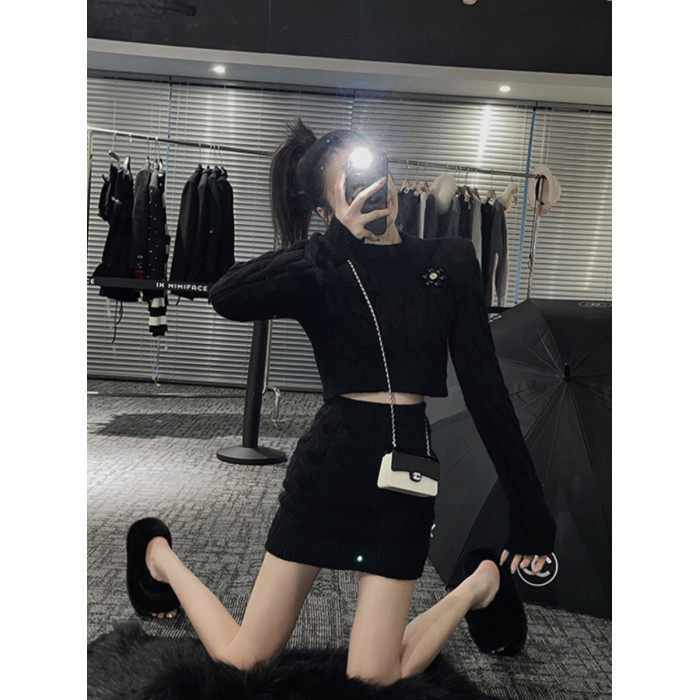 秋冬季小個子毛衣套裝女網紅氣質針織衫上衣包臀半身裙時尚兩件套