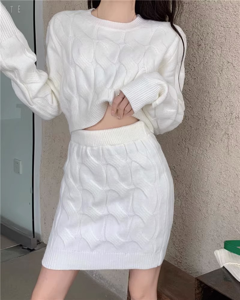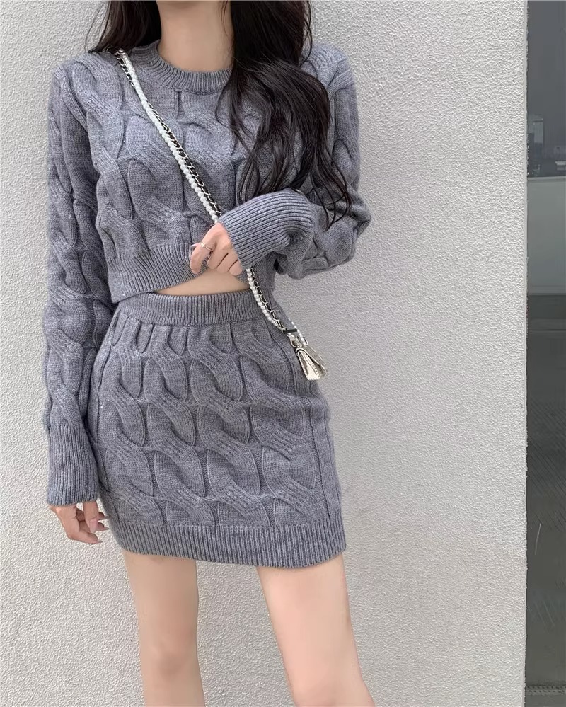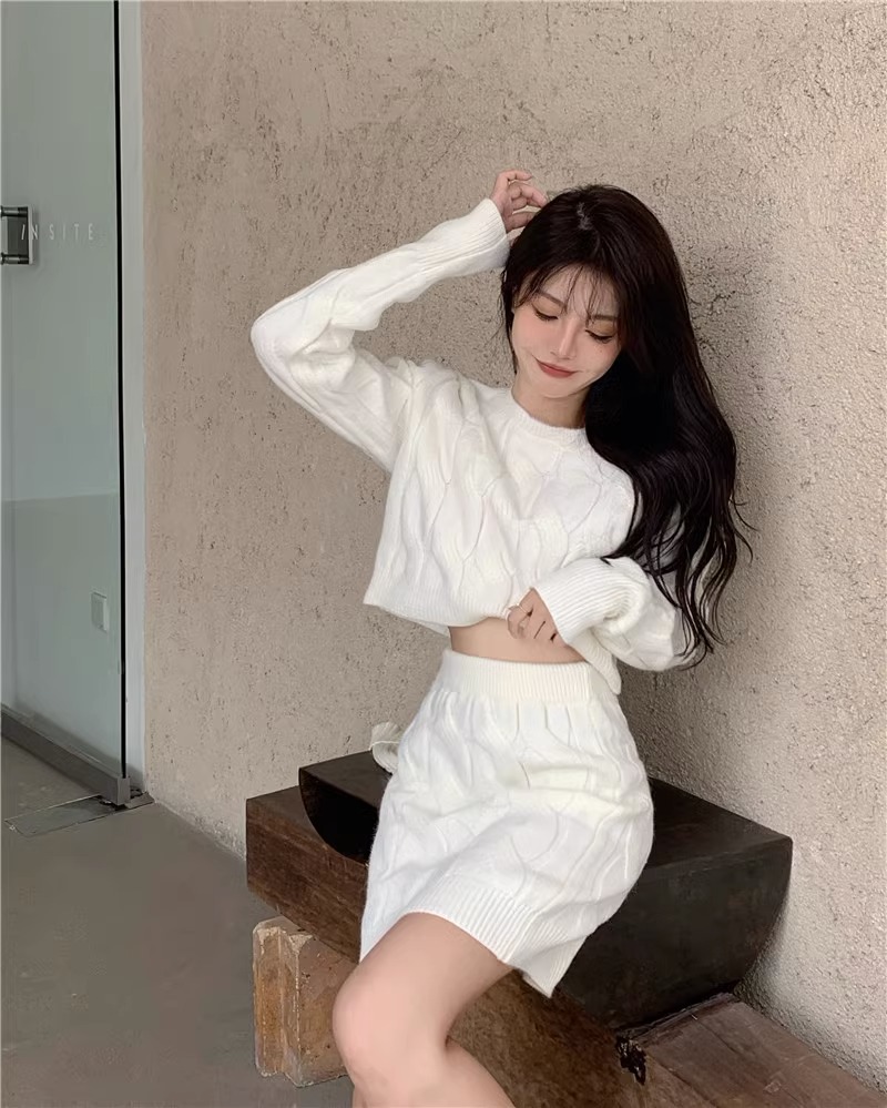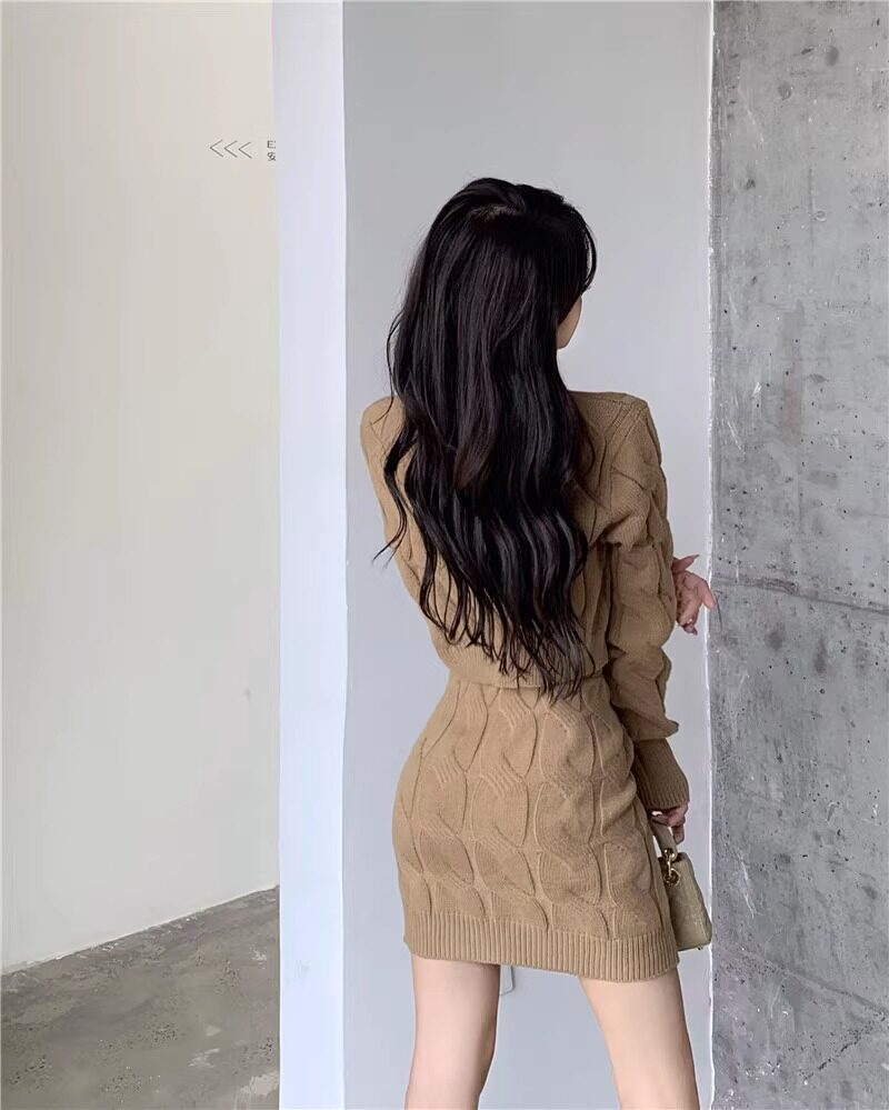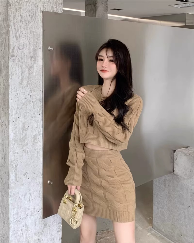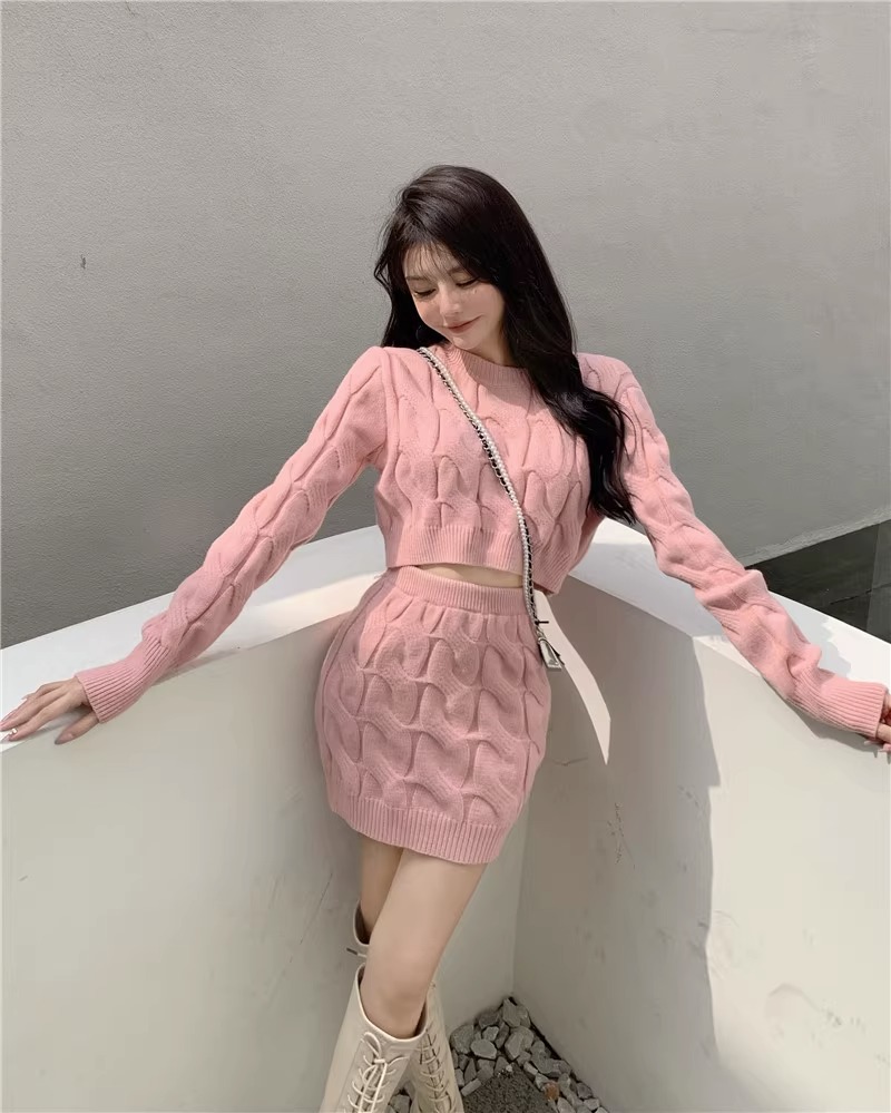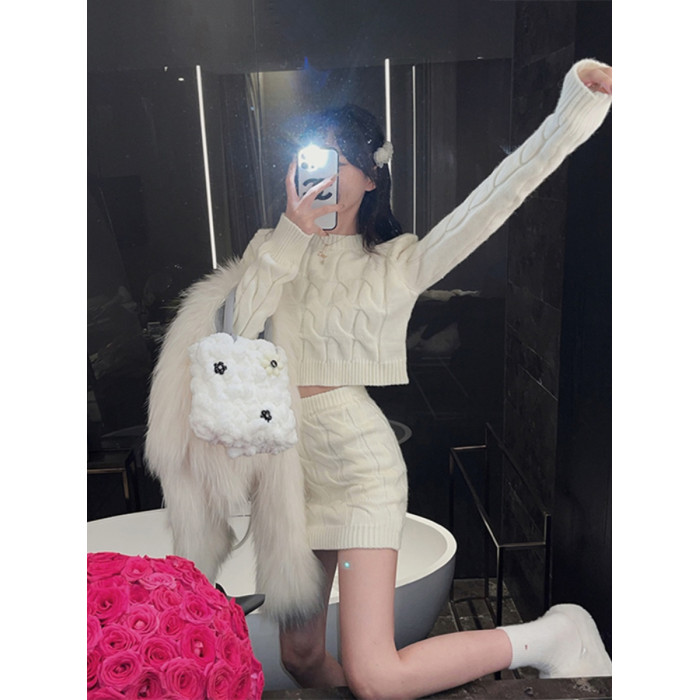 秋冬季小個子毛衣套裝女網紅氣質針織衫上衣包臀半身裙時尚兩件套