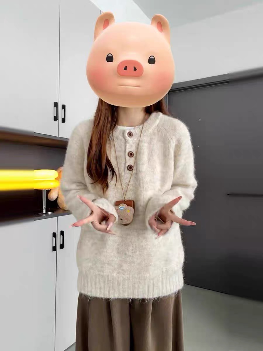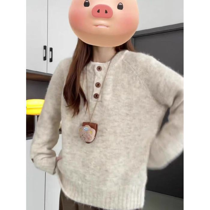 高級感圓領毛衣女秋冬季寬松慵懶內搭復古加厚休閒針織打底衫上衣