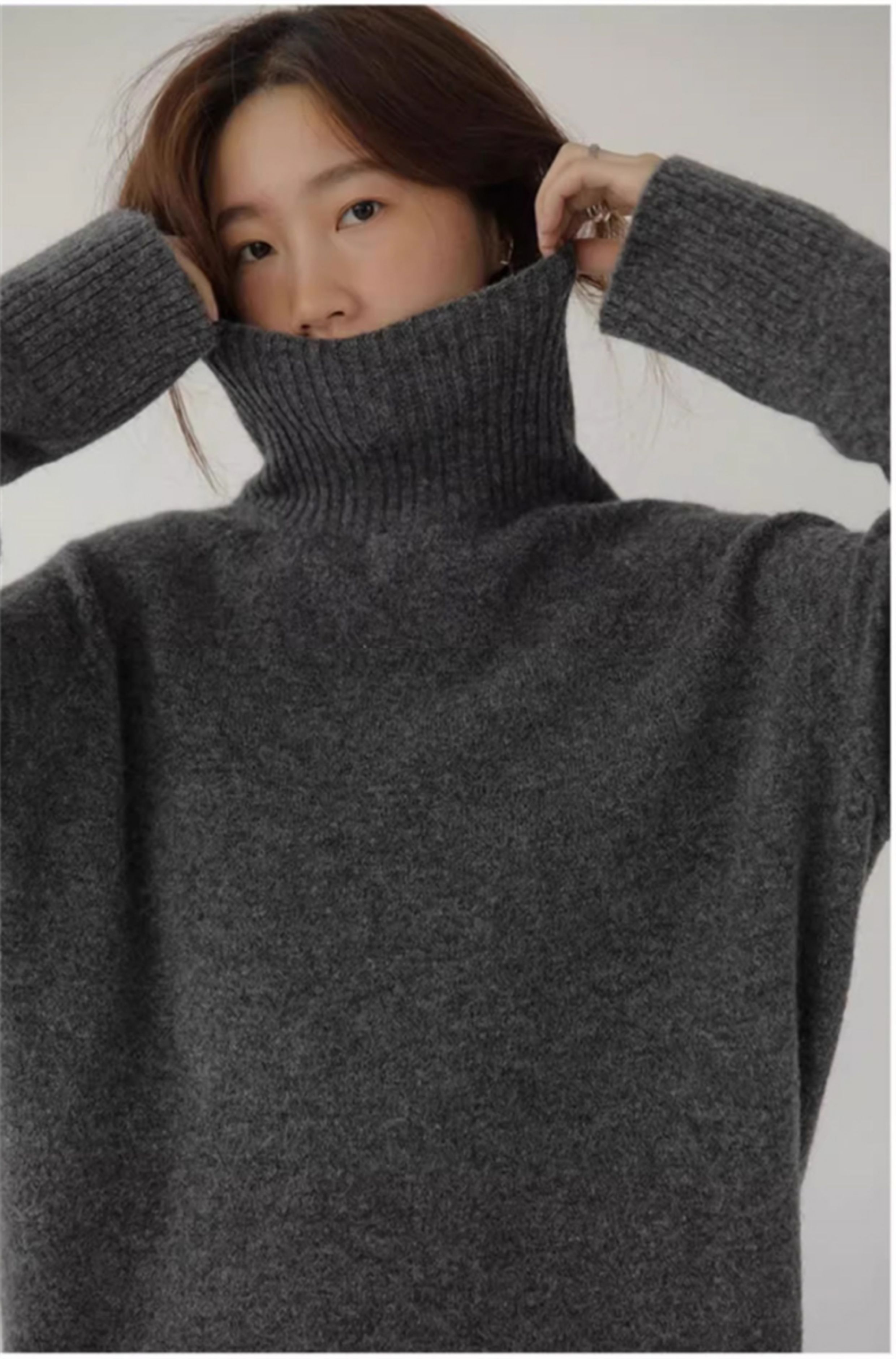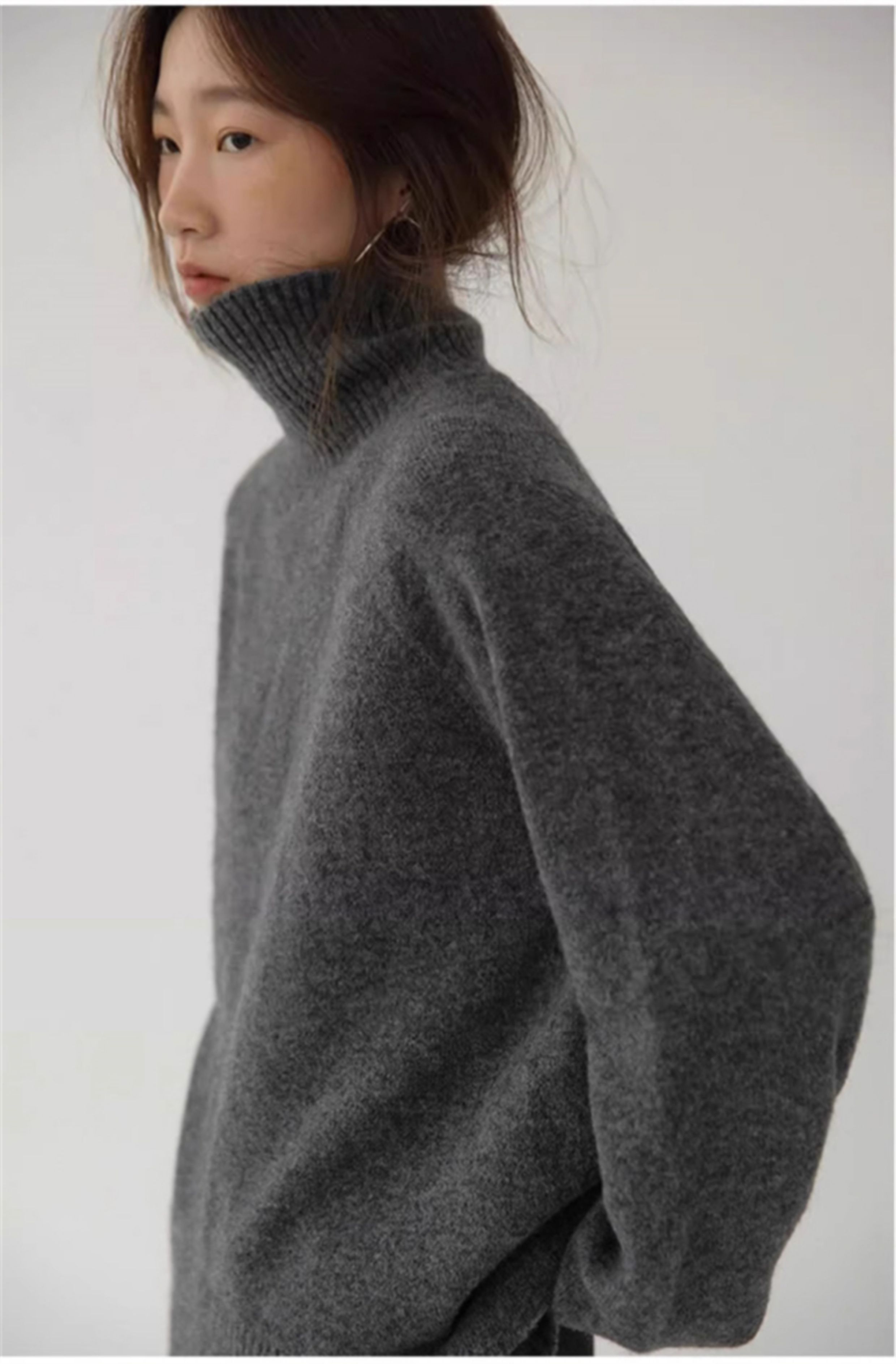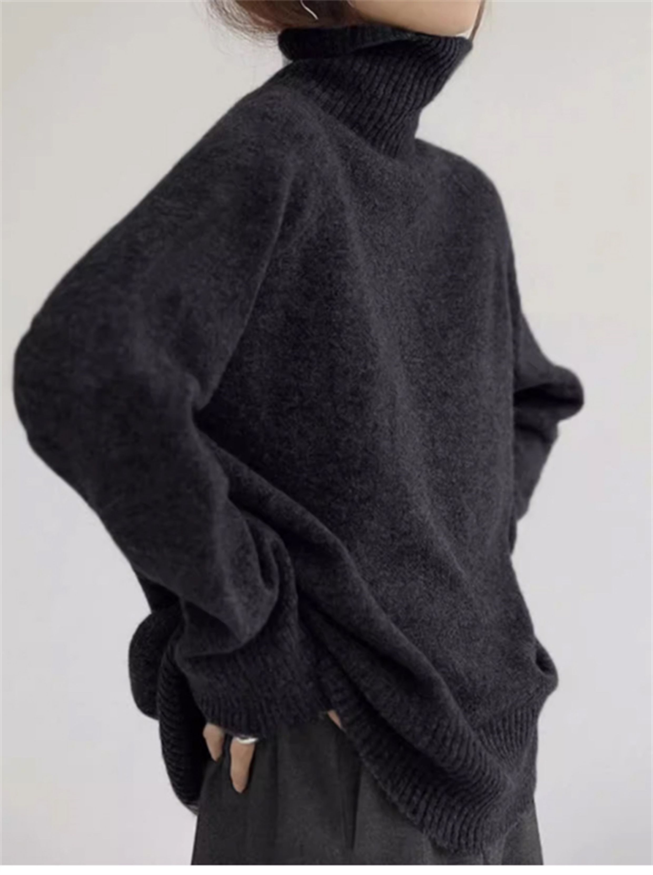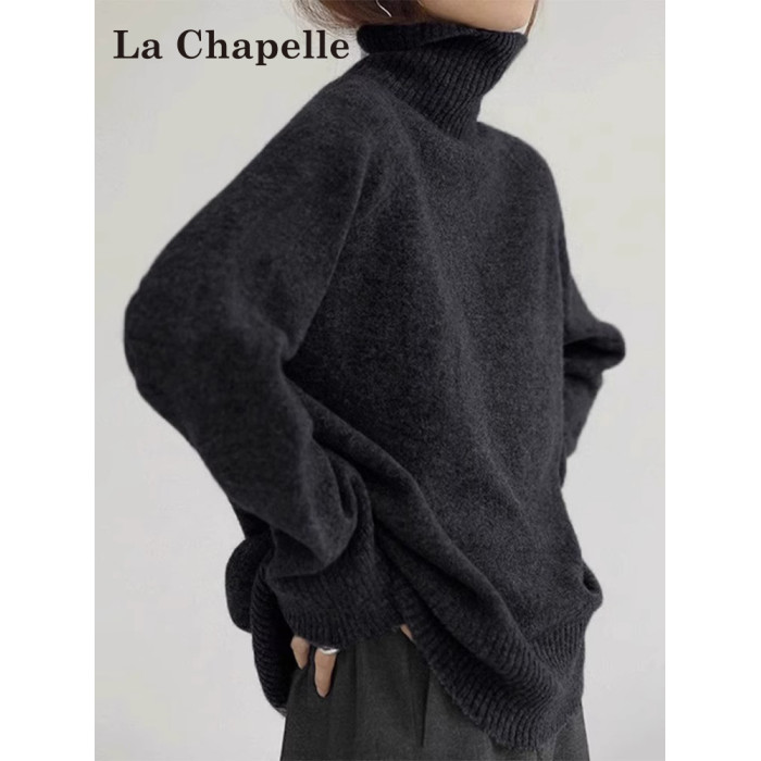 拉夏貝爾黑色高領毛衣針織衫女秋冬2025新款慵懶風內搭打底衫上衣