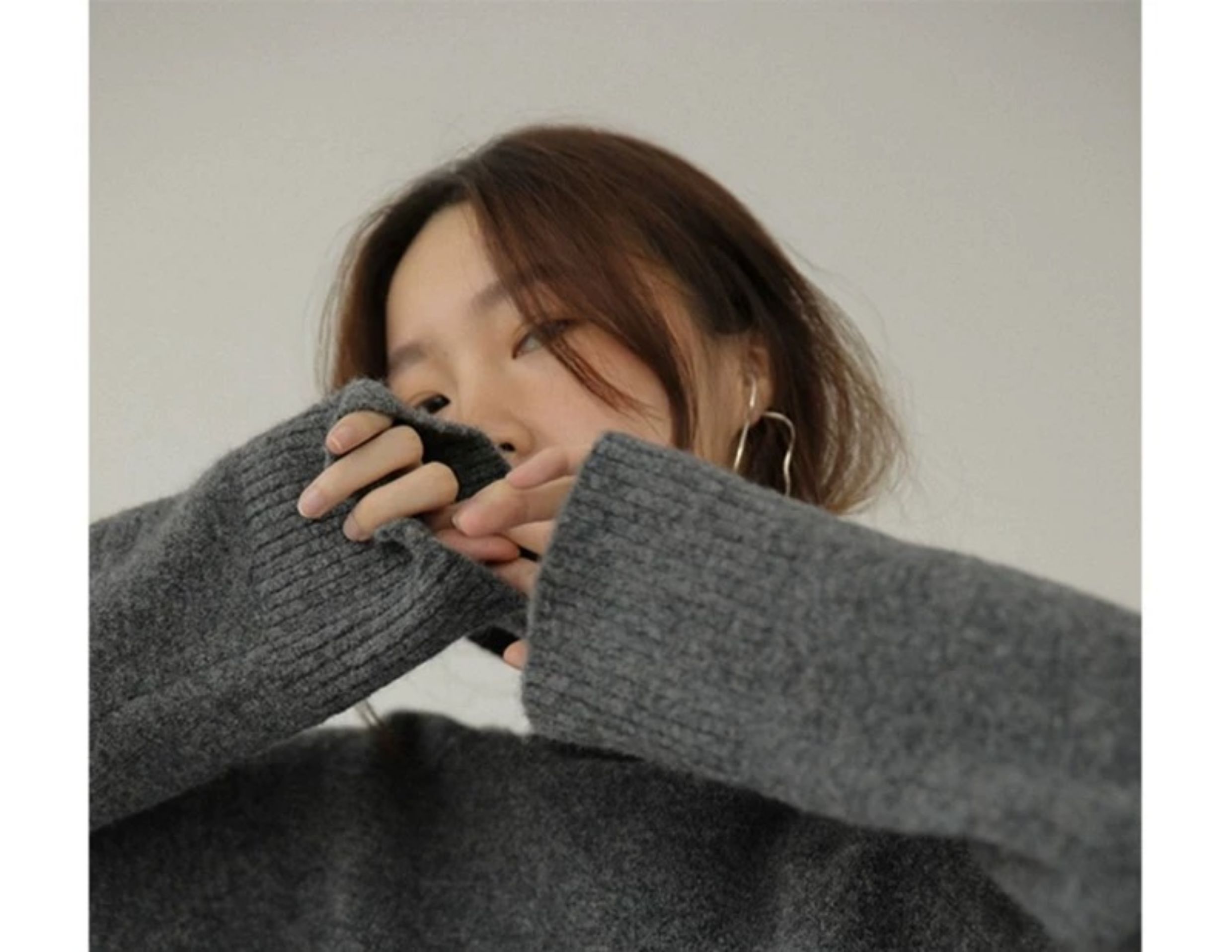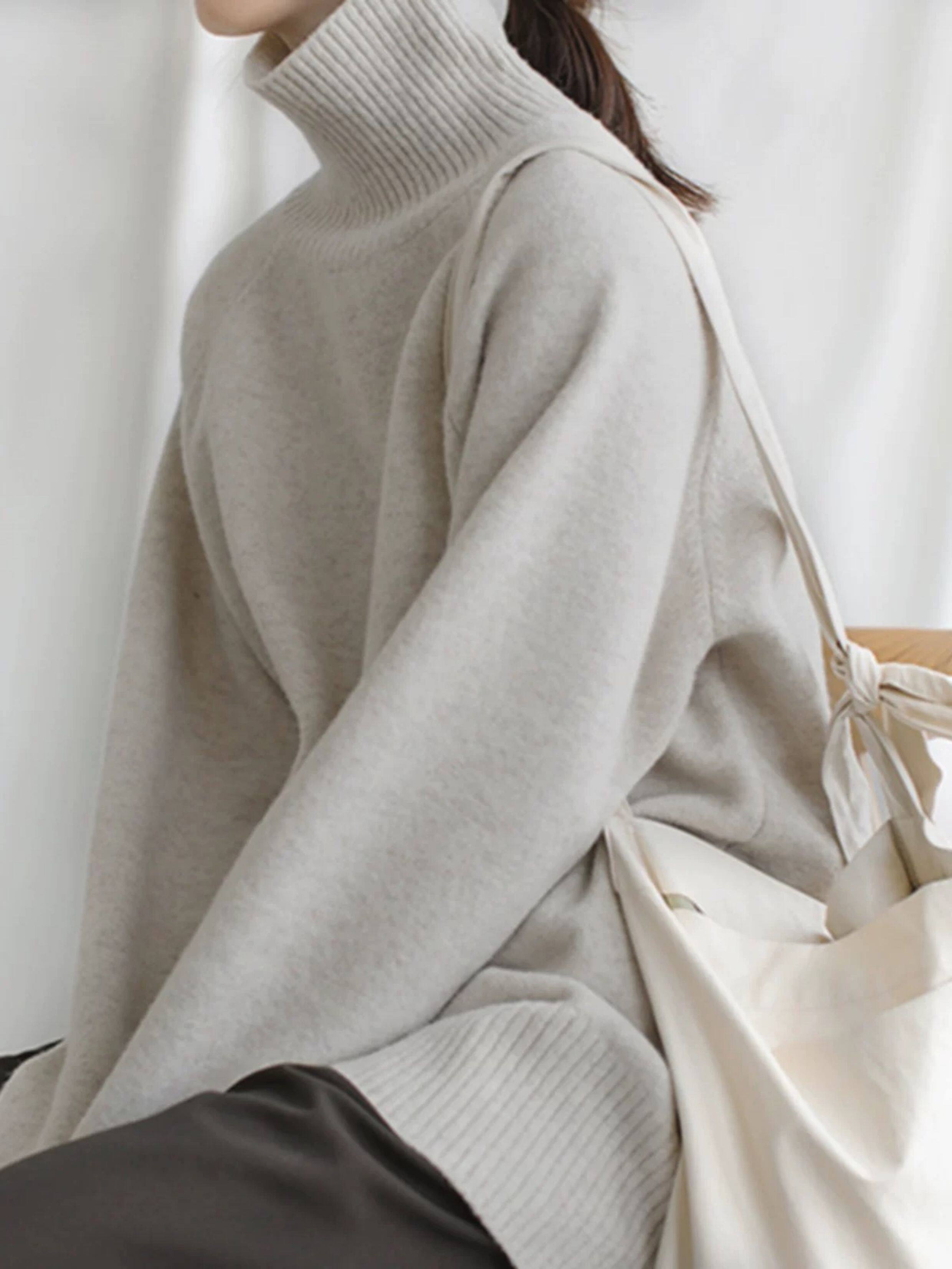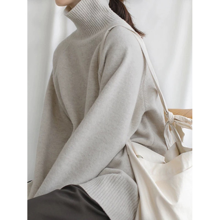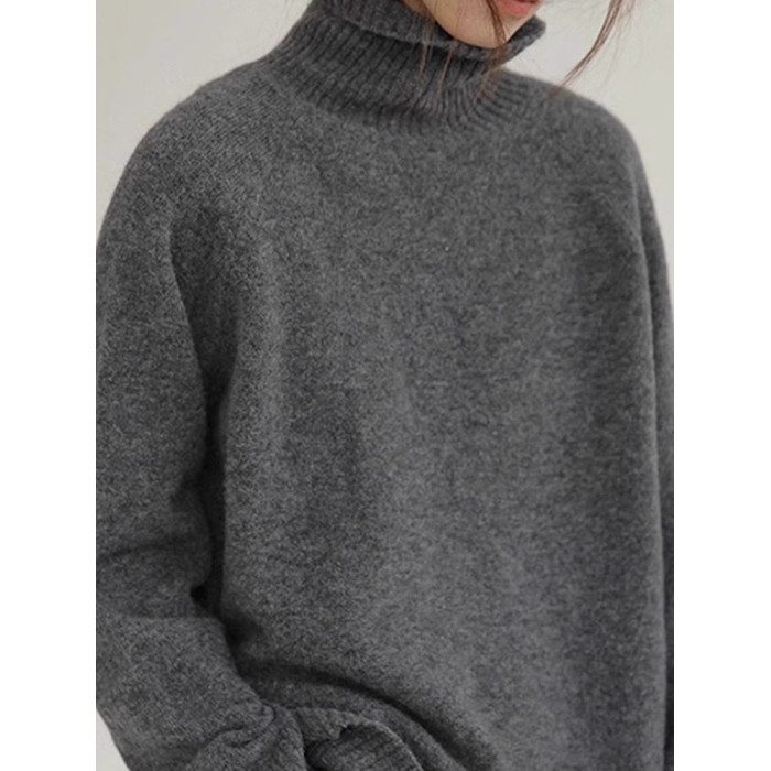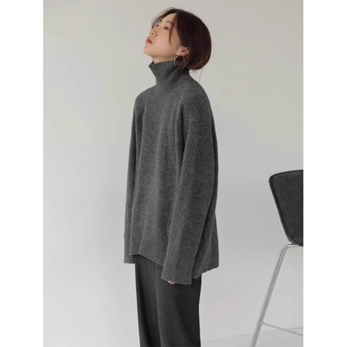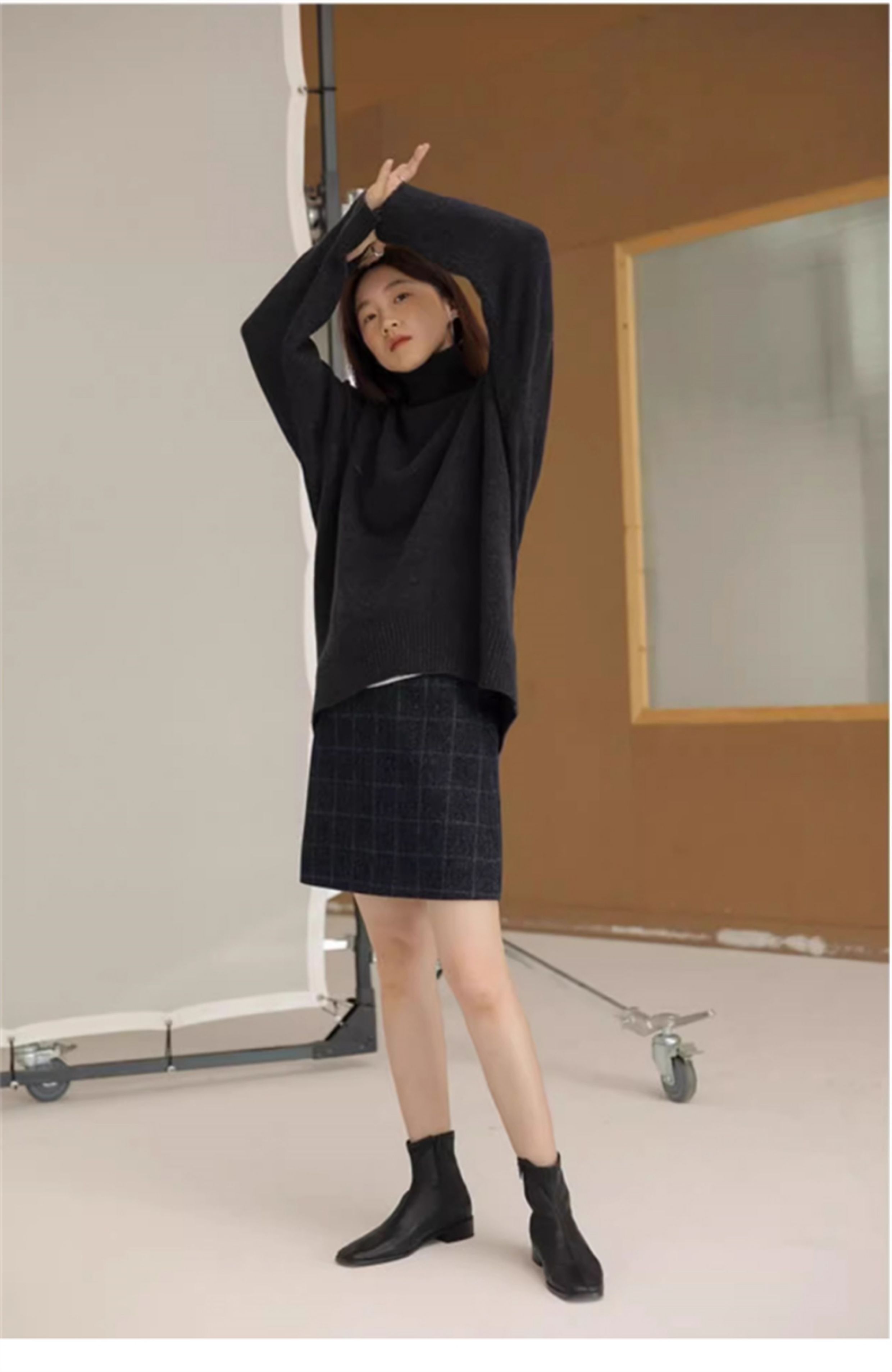 拉夏貝爾黑色高領毛衣針織衫女秋冬2025新款慵懶風內搭打底衫上衣