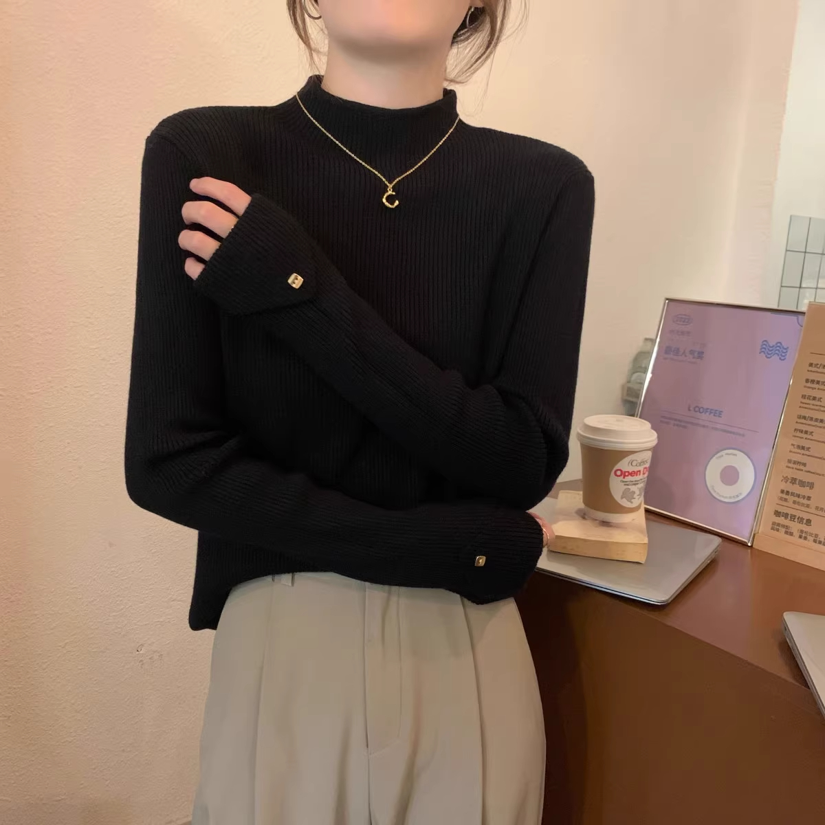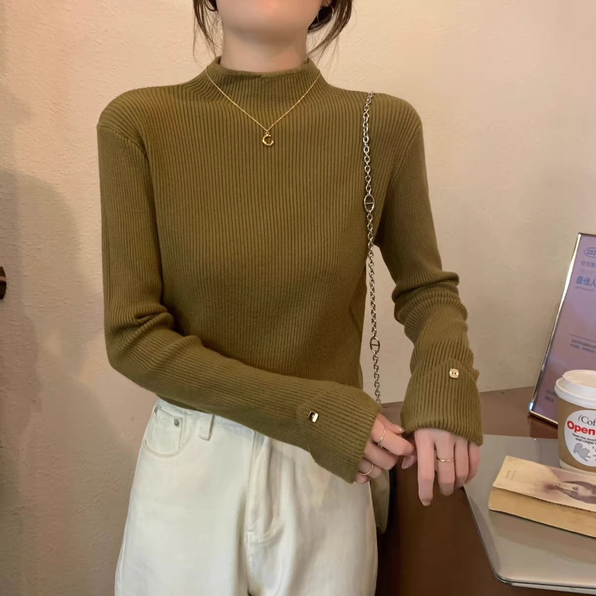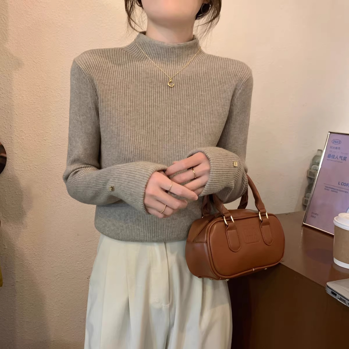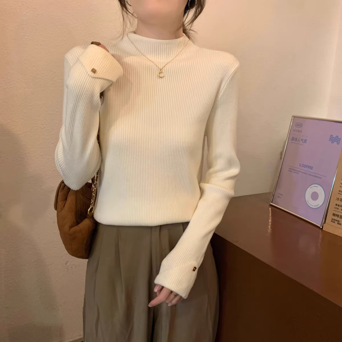 高級感內搭毛衣打底衫女春秋2025新款半高領長袖修身針織百搭上衣