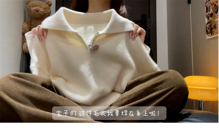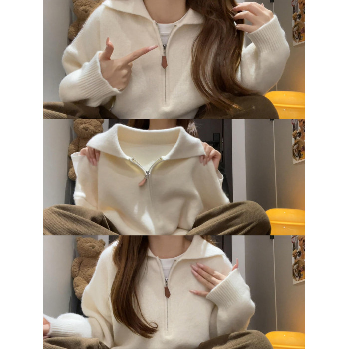 白色翻領套頭毛衣女秋冬季2025新款慵懶高級感內搭打底針織衫上衣
