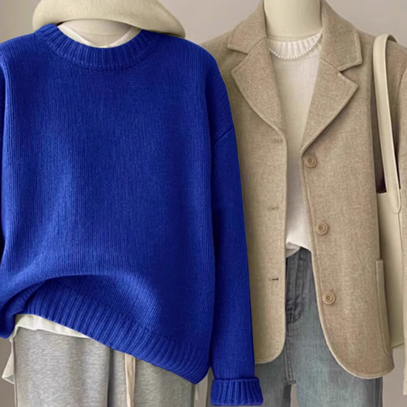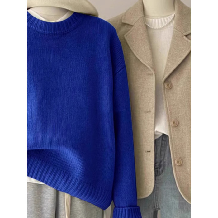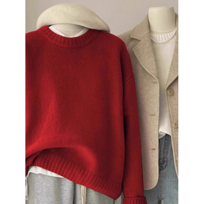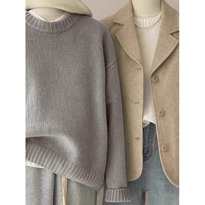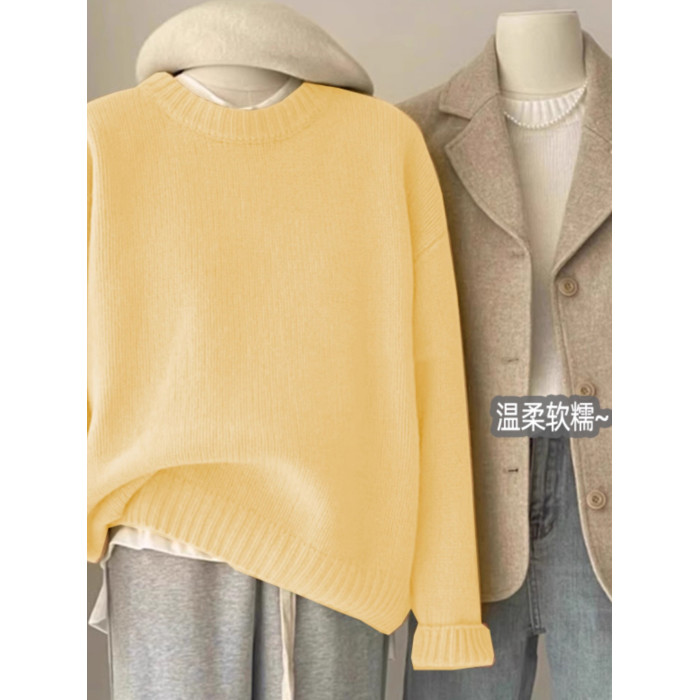 2025秋冬新款軟糯黃色毛衣女外穿加厚馬海毛寬松慵懶風套頭針織衫