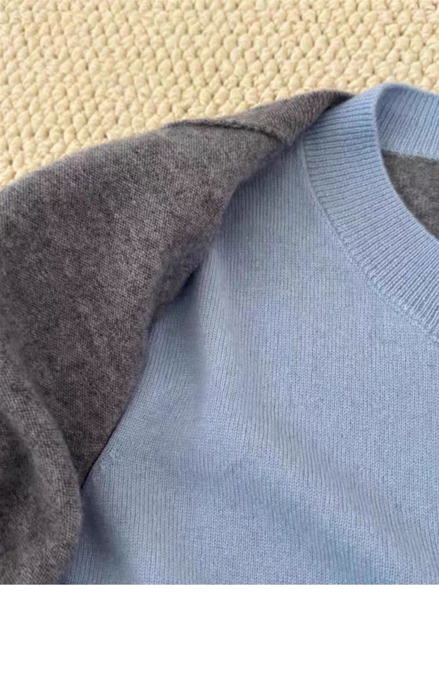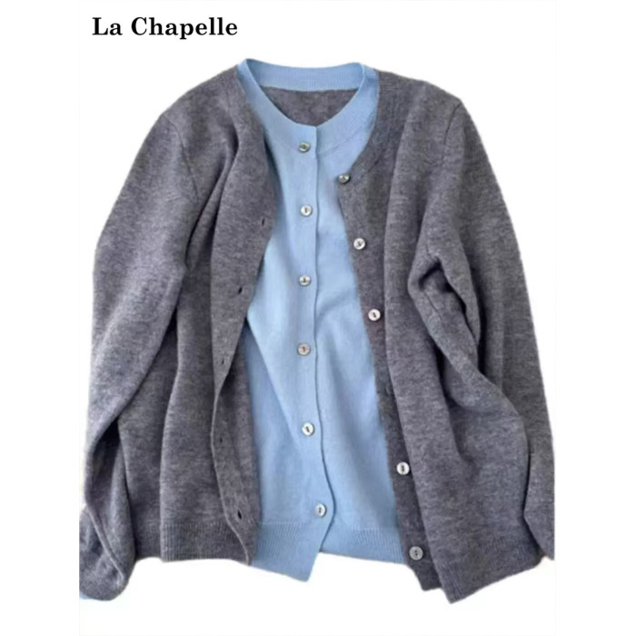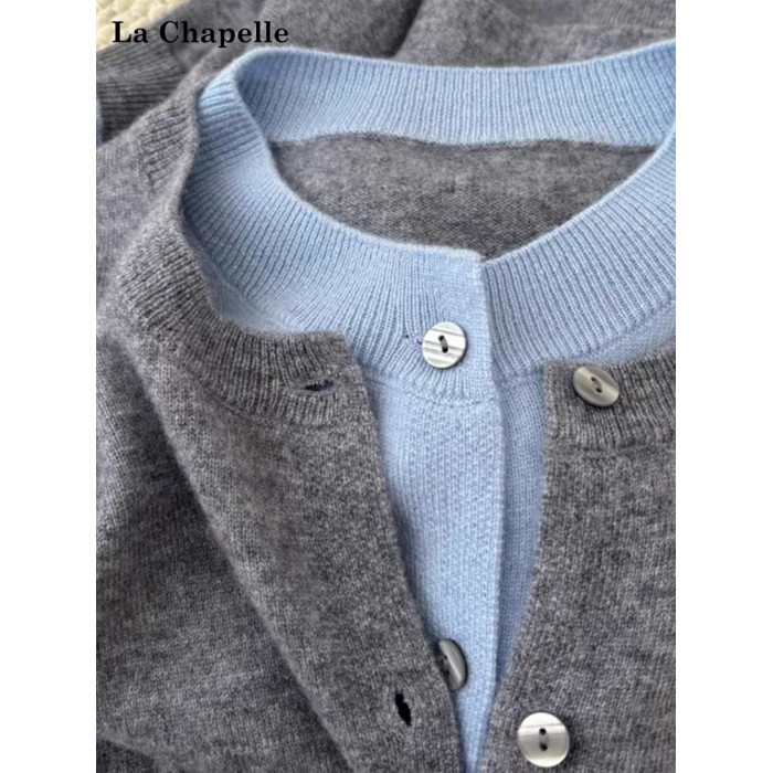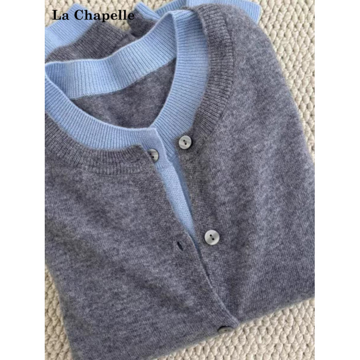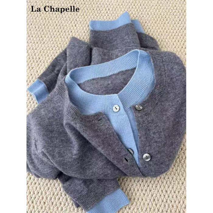拉夏貝爾格雷系假兩件圓領針織衫女秋季不起球毛衣曡穿內搭上衣