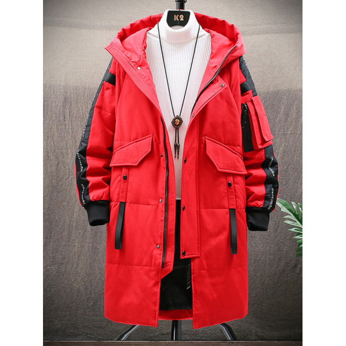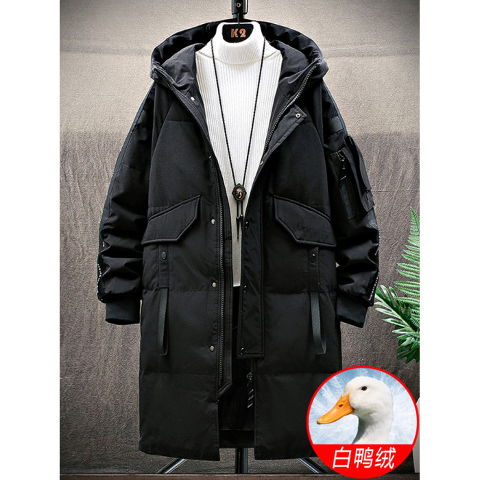 加厚工裝羽絨服男中長款2025冬季新款潮流休閒連帽白鴨絨保暖外套