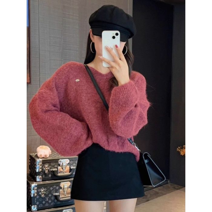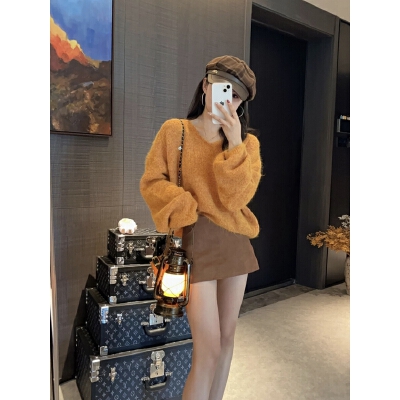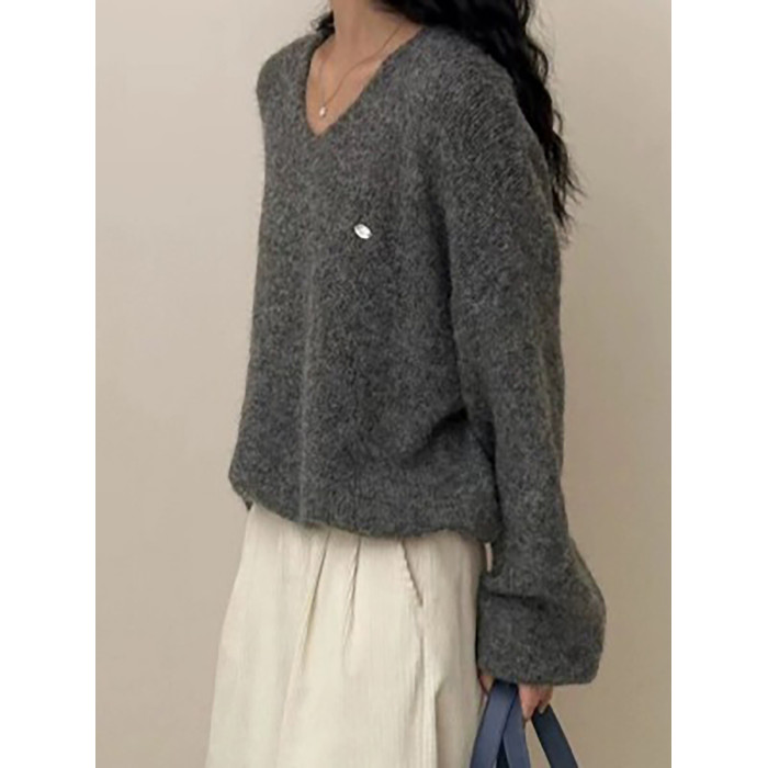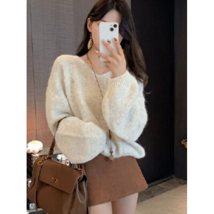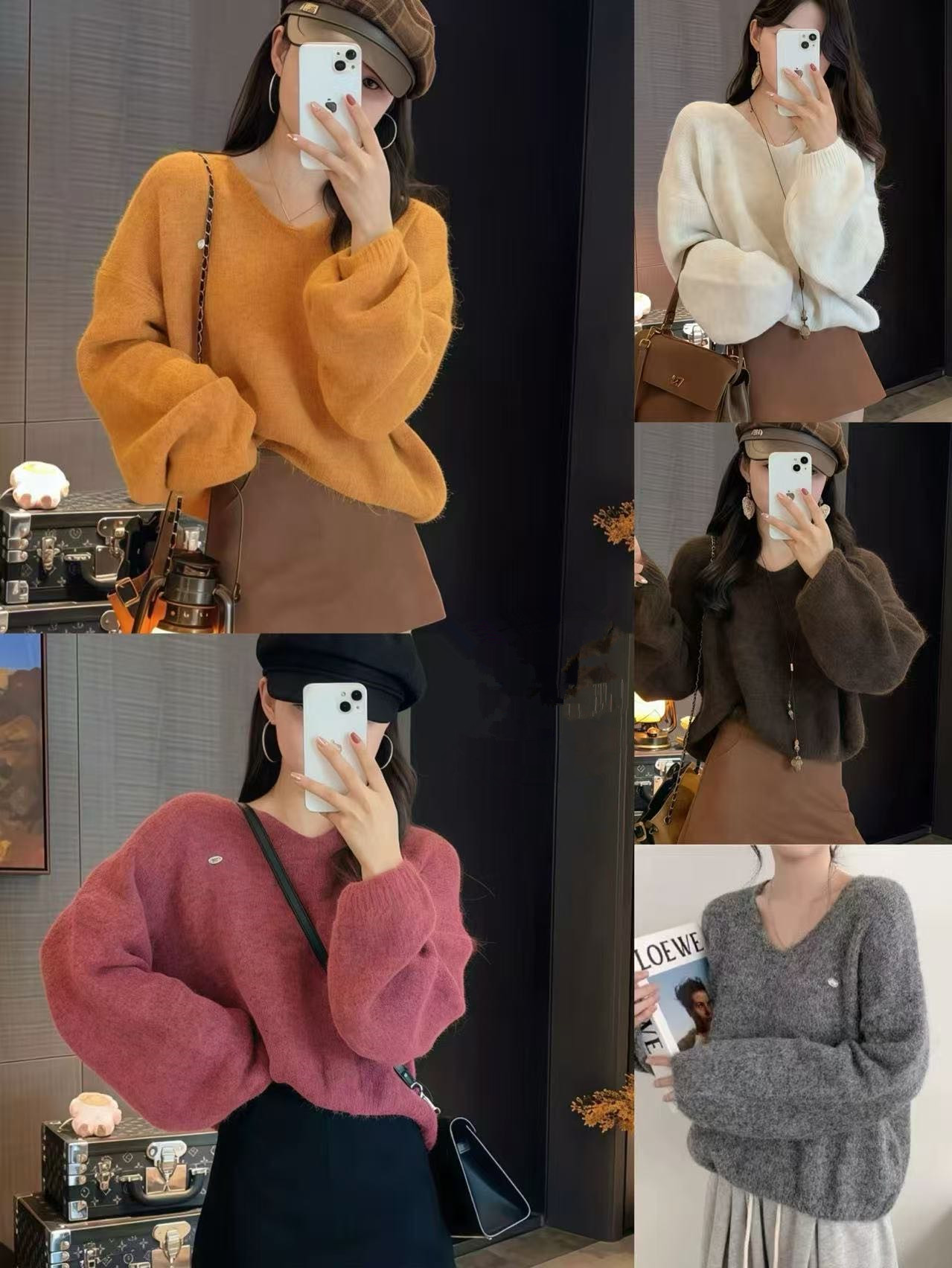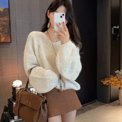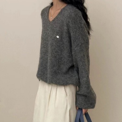 外穿軟糯針織上衣女秋冬2025新款慵懶風高級感寬松v領毛茸茸毛衣