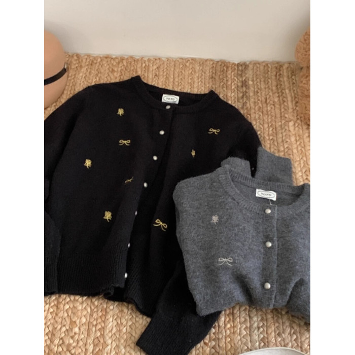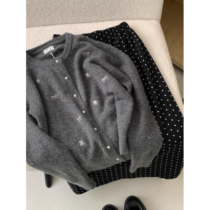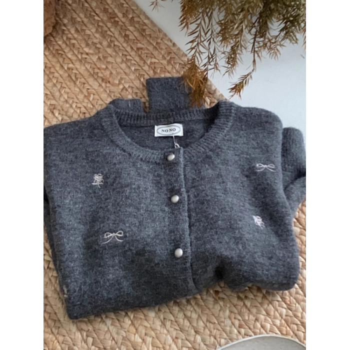 高級灰蝴蝶結刺綉針織外套浙江普院毛衣桐鄕高級嘉興濮院羊毛開衫