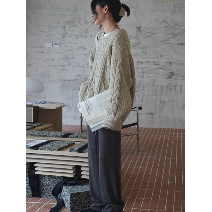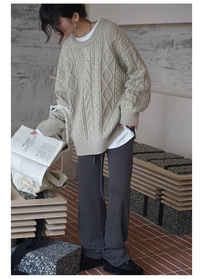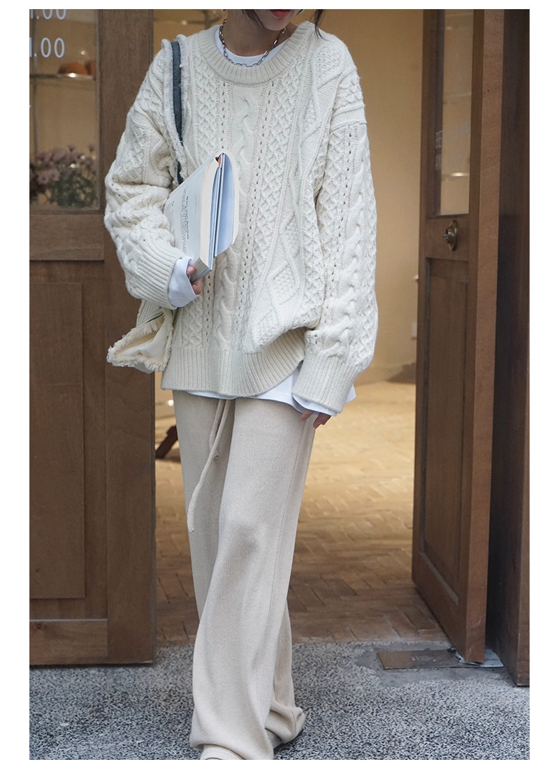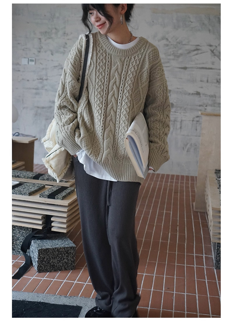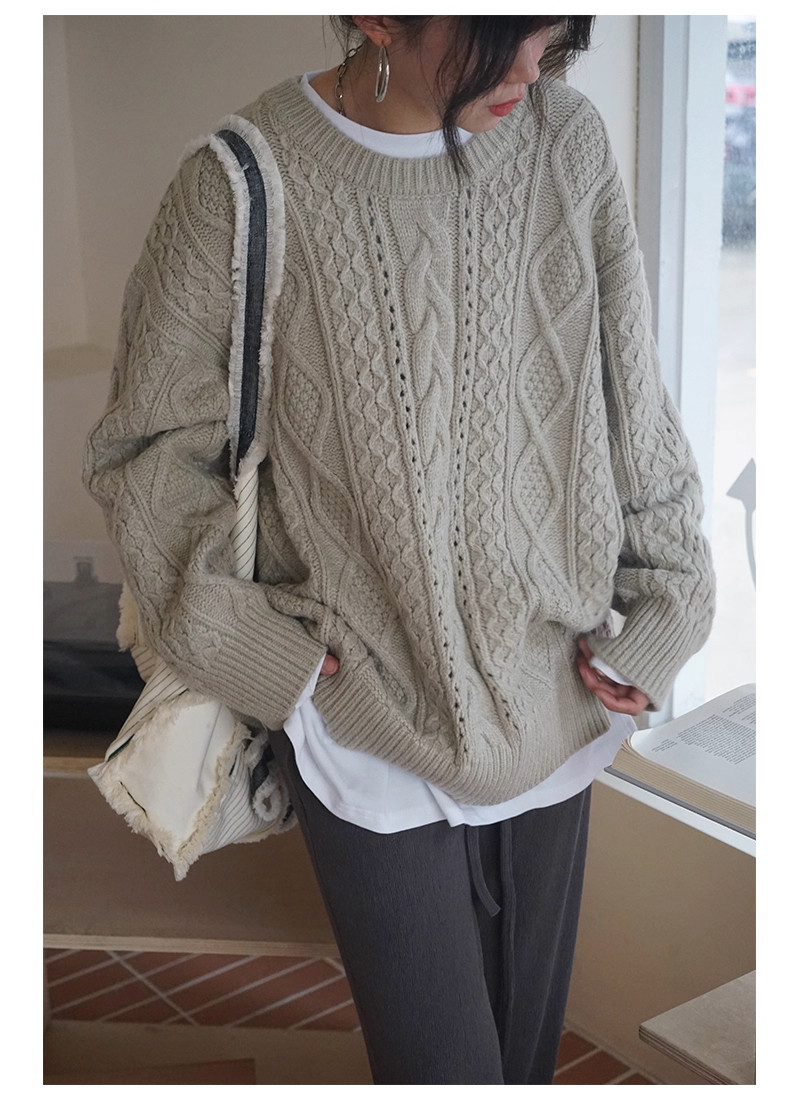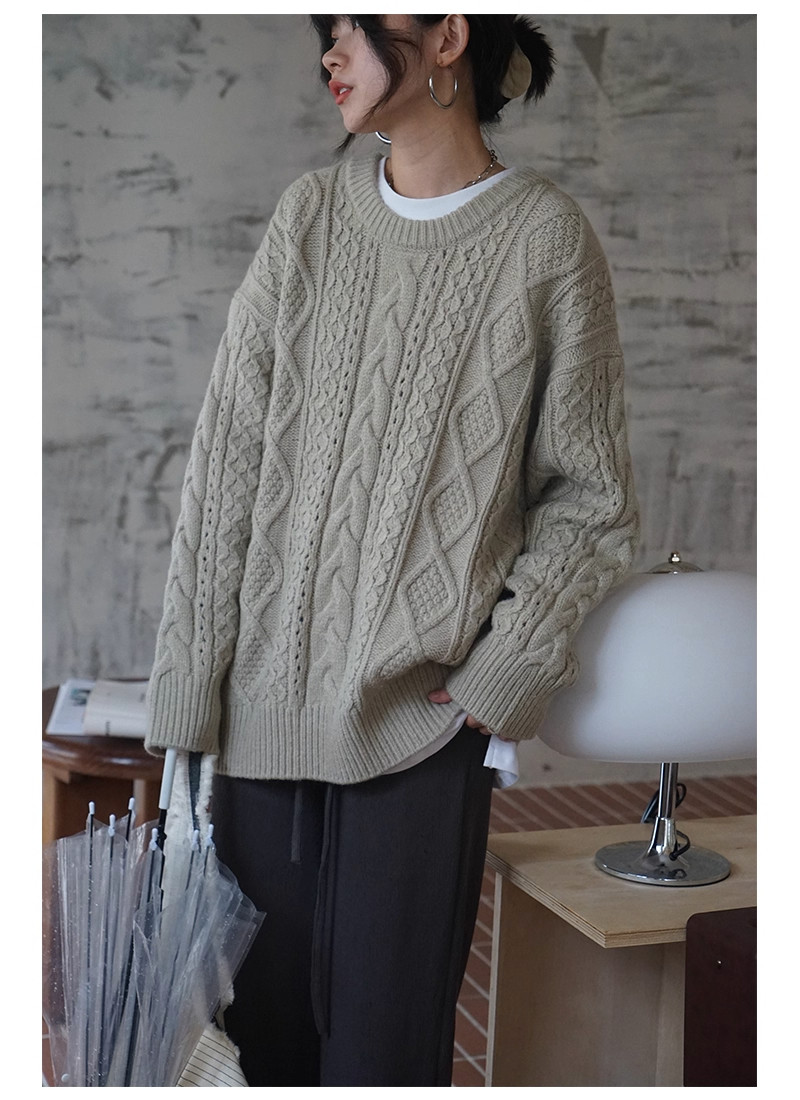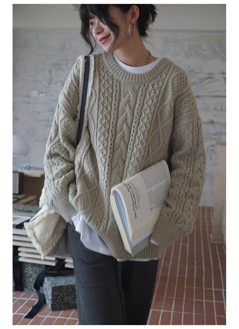 秋冬復古慵懶風寬松套頭絞麻花內搭底外穿白色加厚針織衫毛衣女
