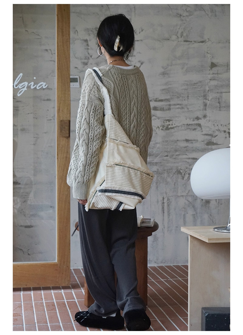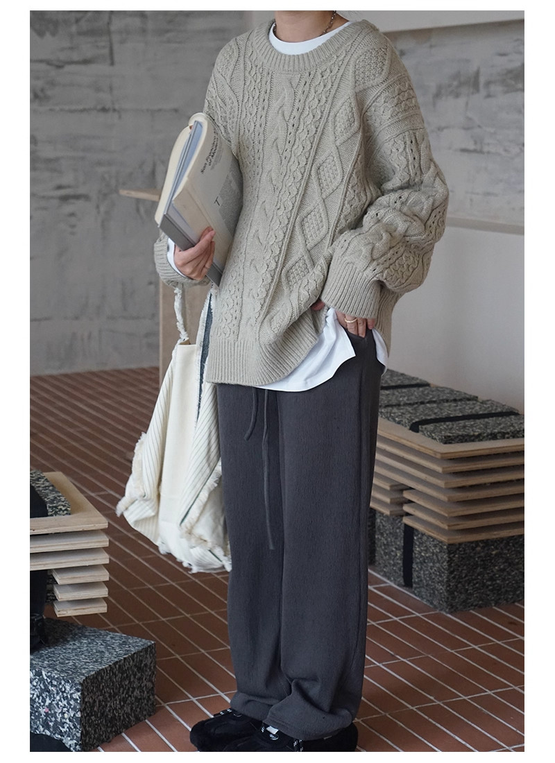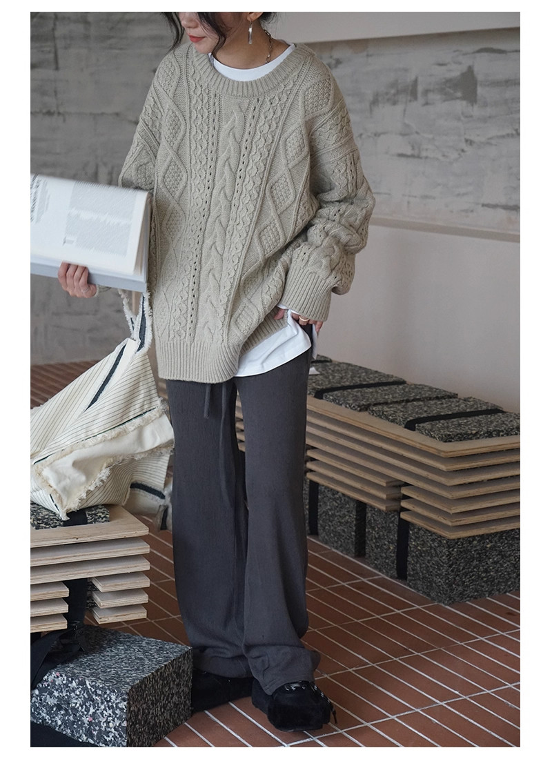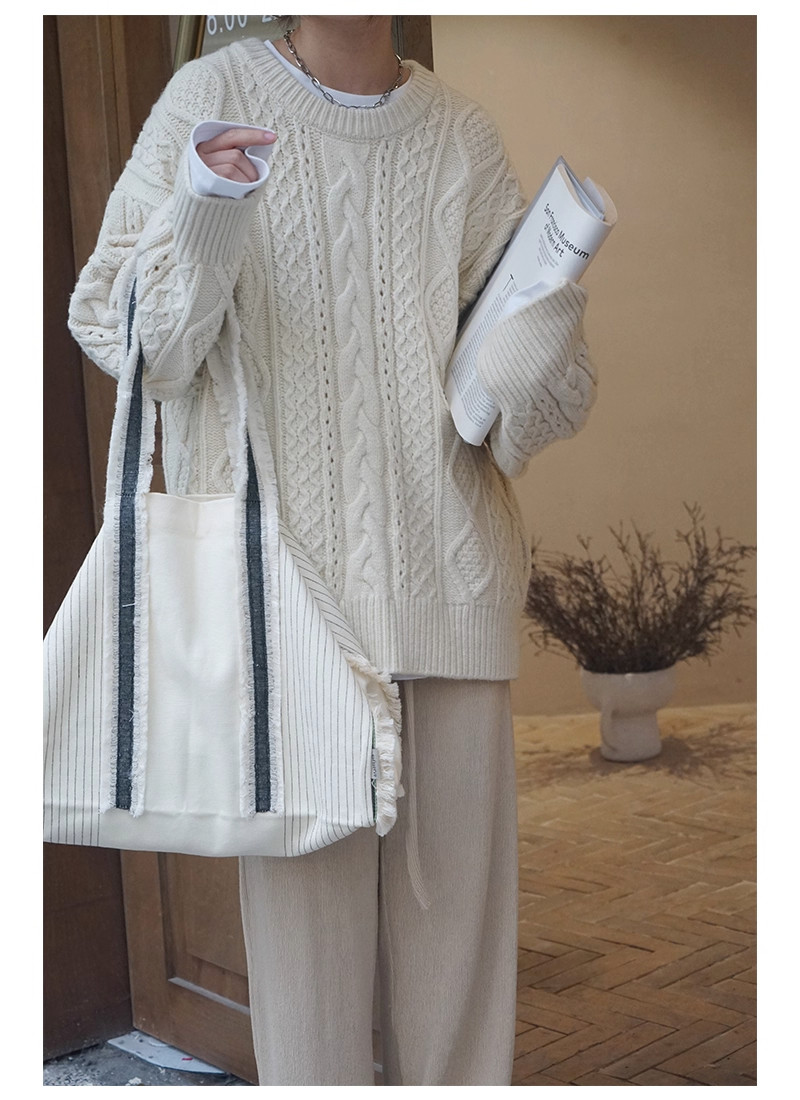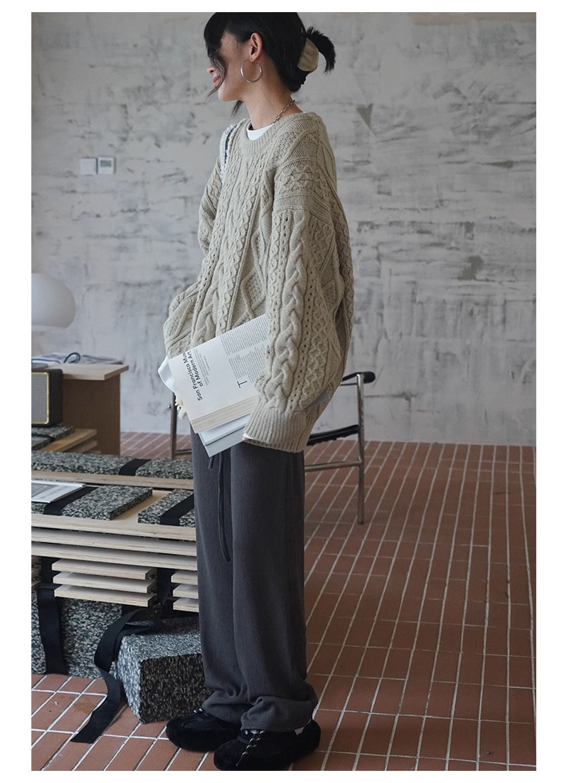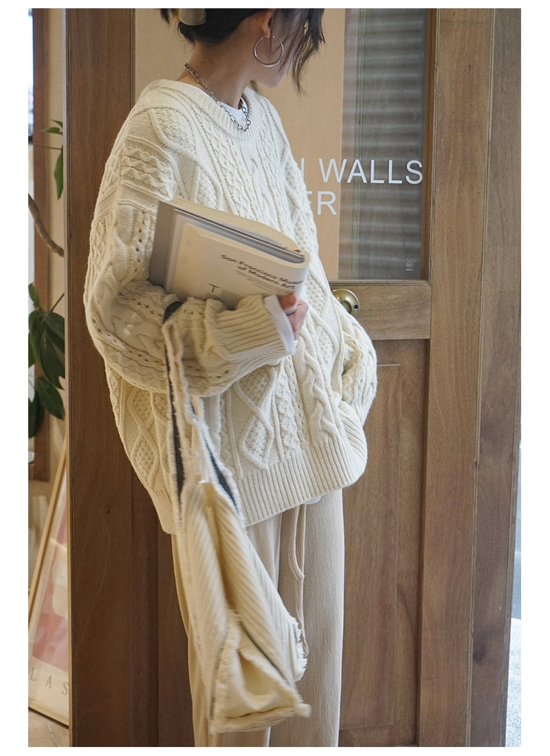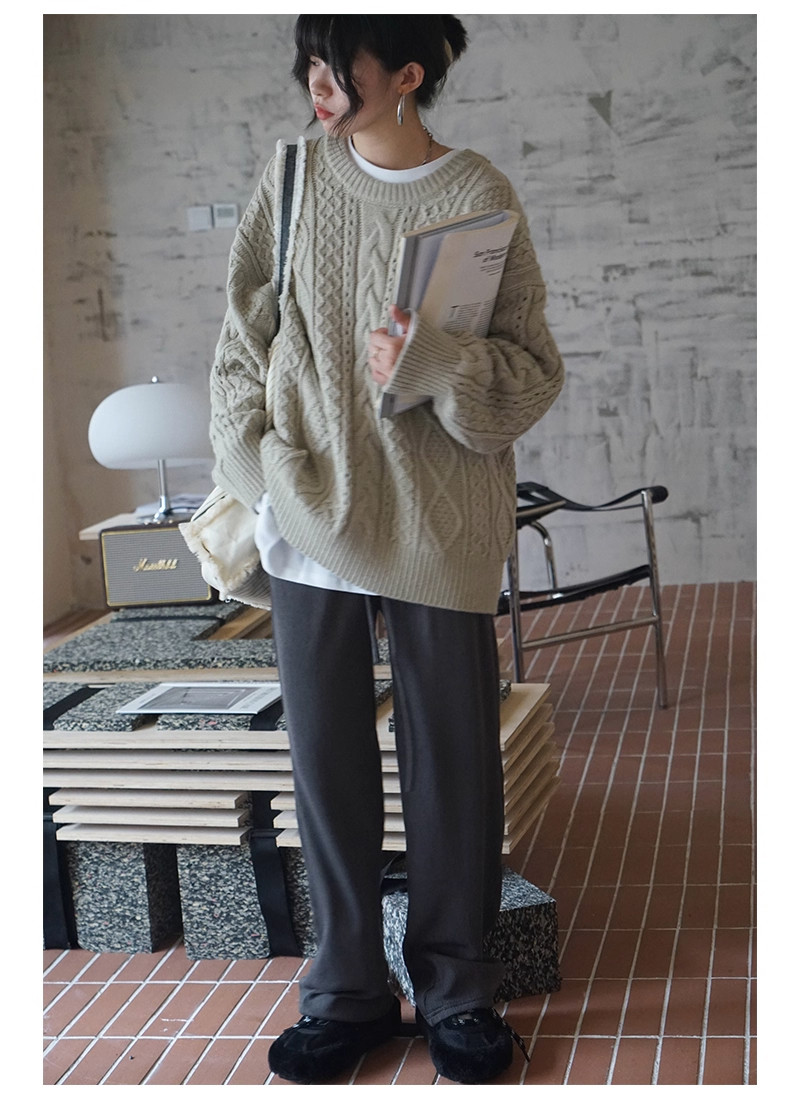 秋冬復古慵懶風寬松套頭絞麻花內搭底外穿白色加厚針織衫毛衣女