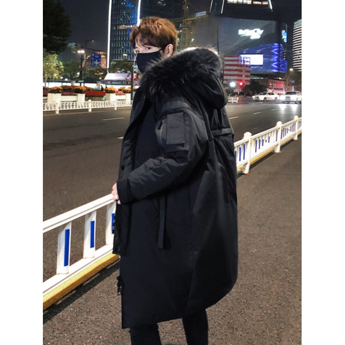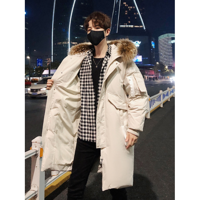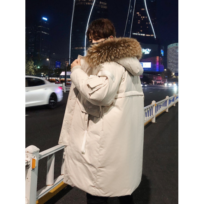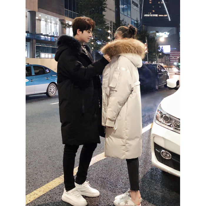中長款情侶羽絨服2025新款連帽毛領時尚寬松男女款保暖加厚外套潮