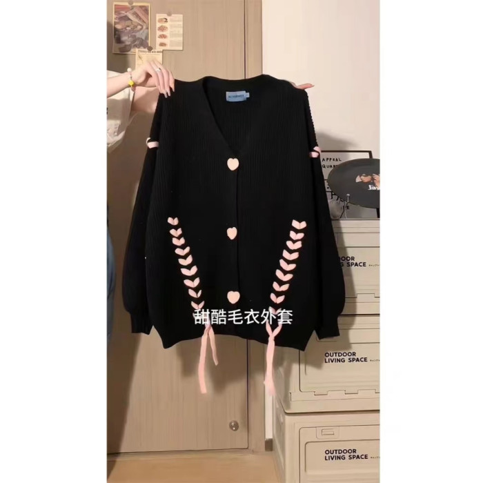 日系慵懶風寬松毛衣開衫女春秋冬新款大碼胖妹妹溫柔軟糯針織外套